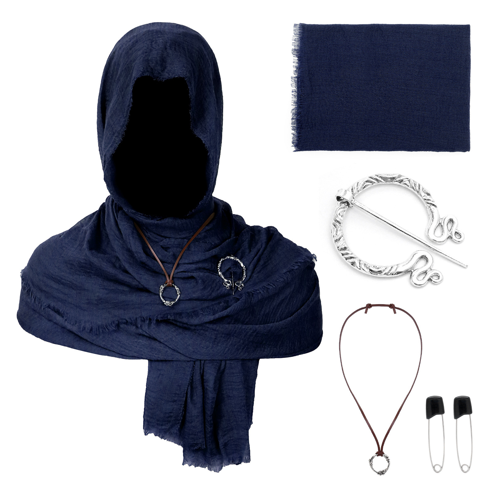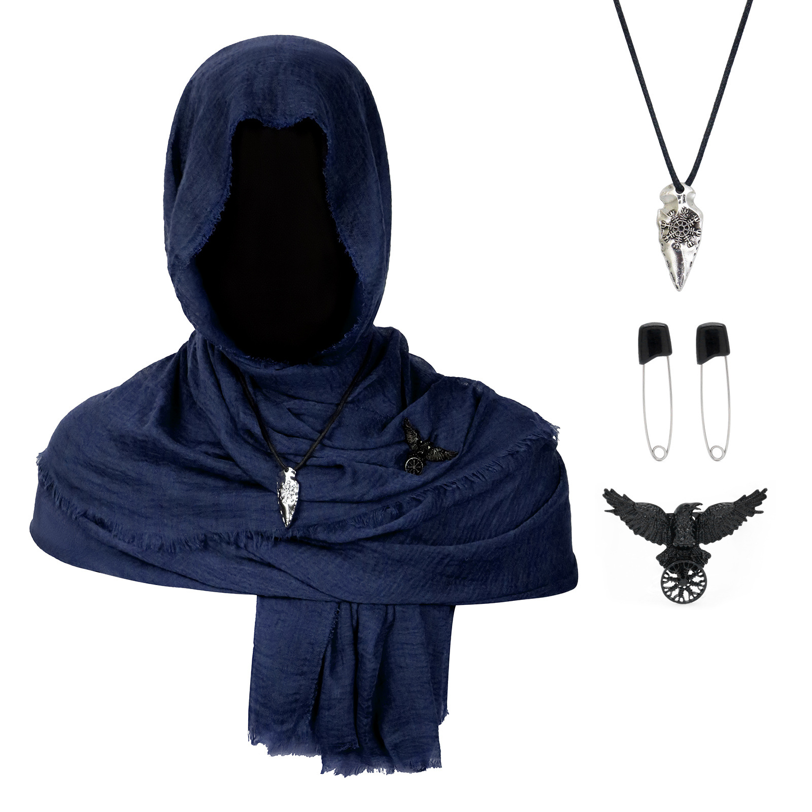 cst154bu (blue scarf 180*90cm + black pin 1 pair + black raven scarf buckle + snowflake pendant)