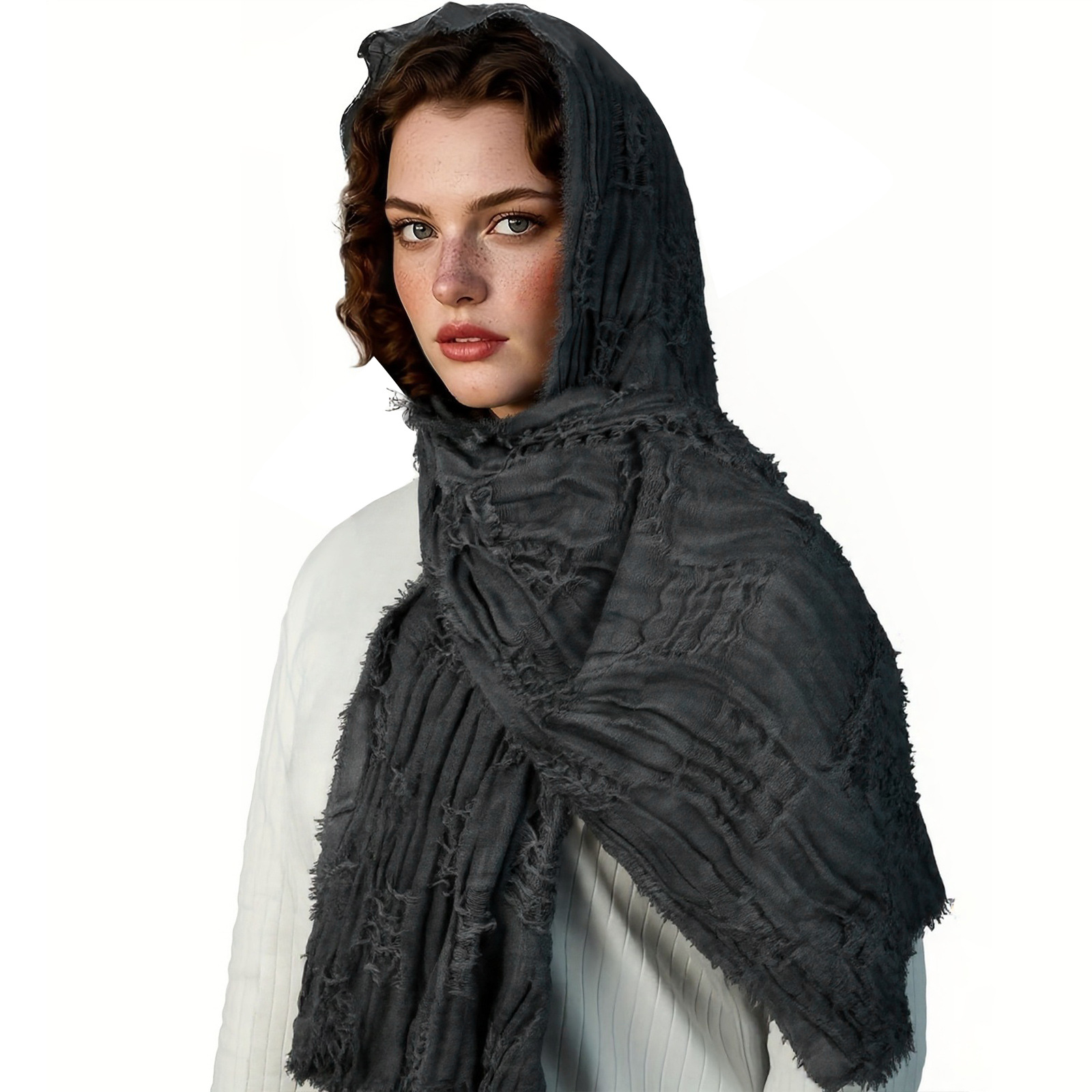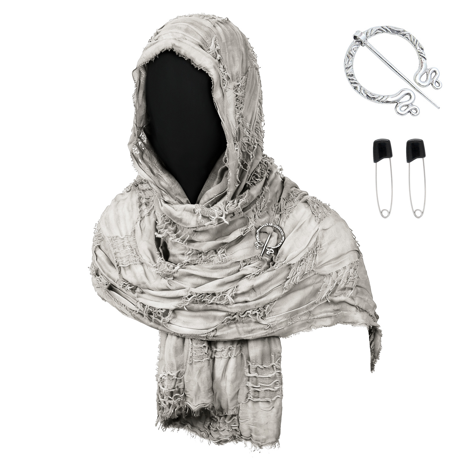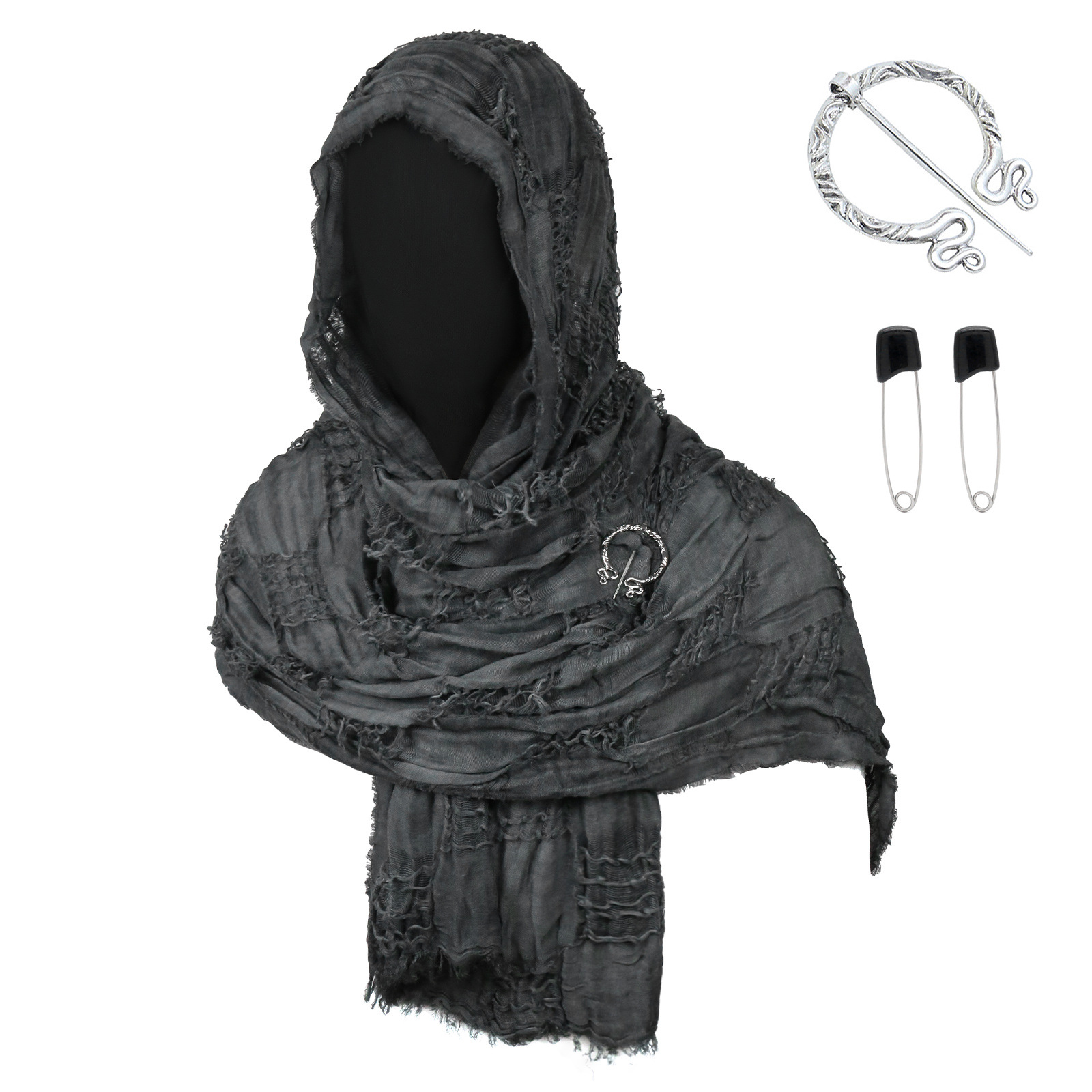cst153gy gray distressed scarf (190cm*70cm) + brooch + pin + pendant
