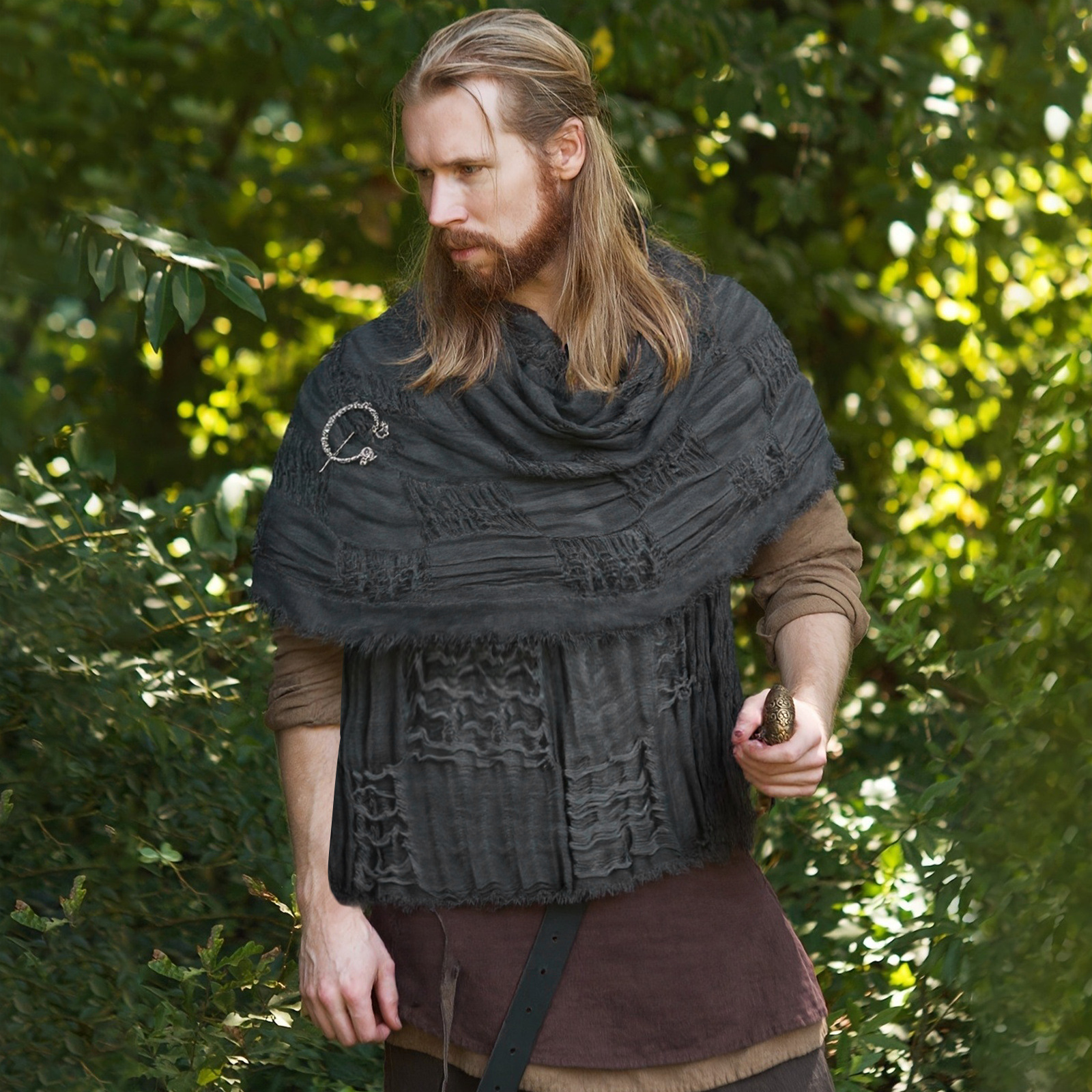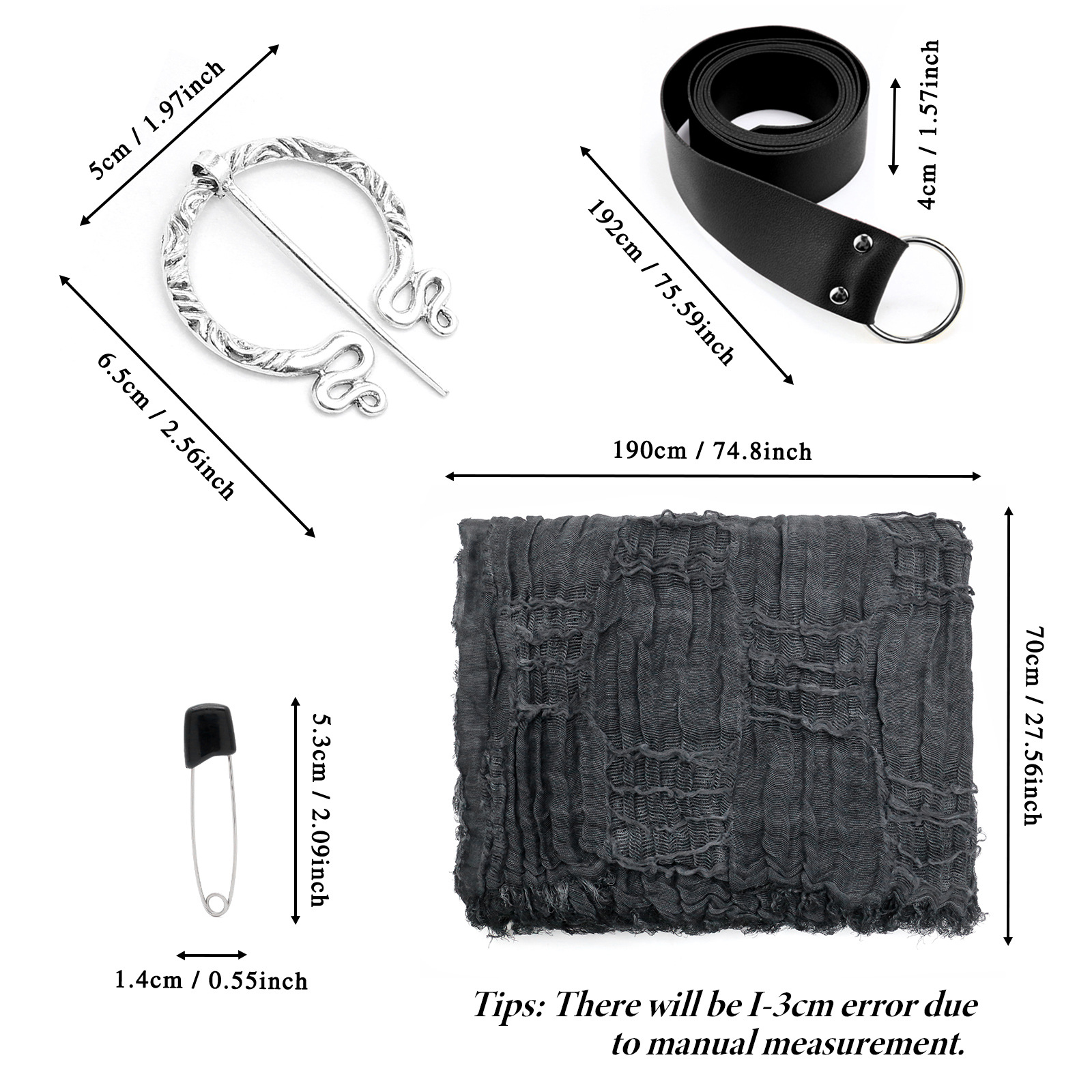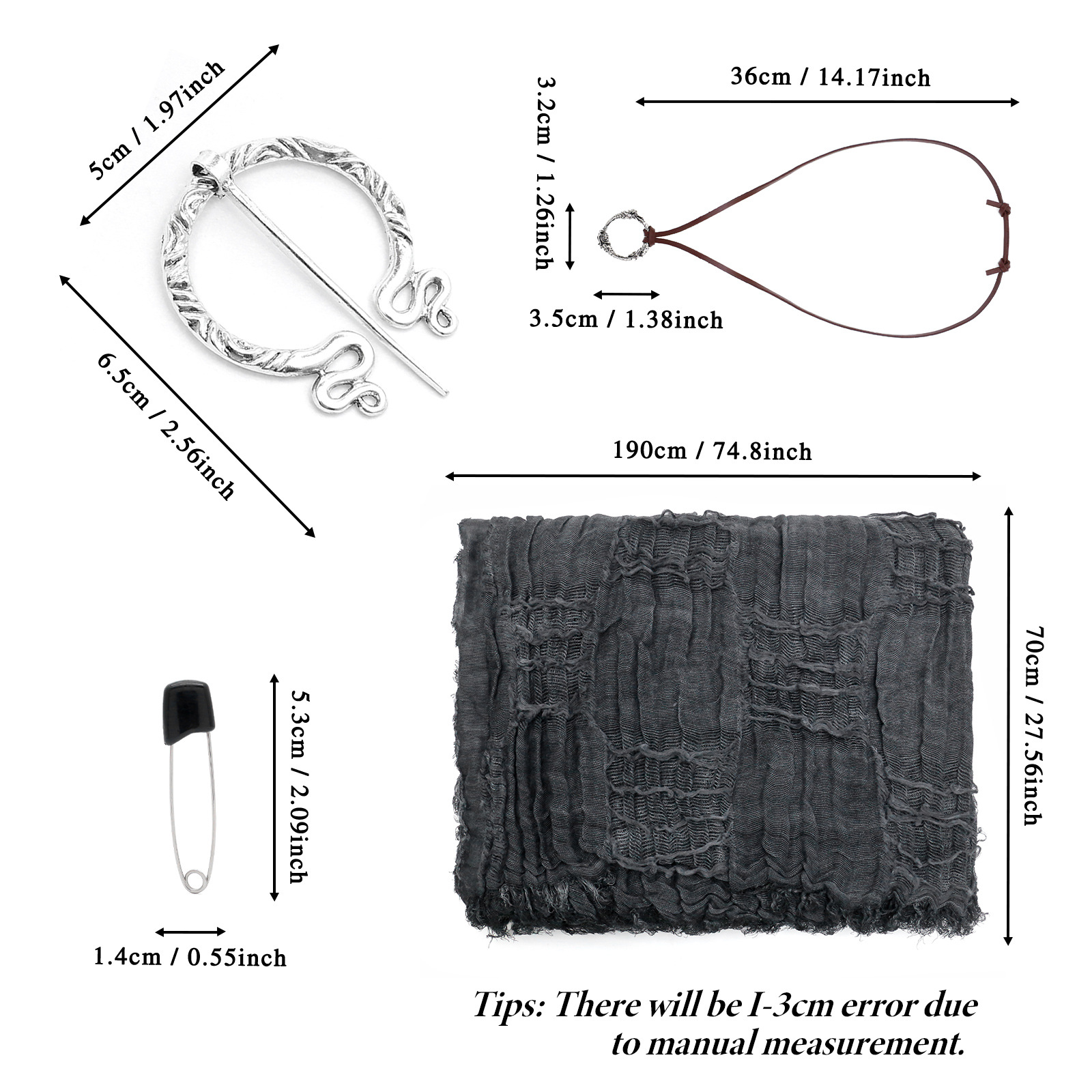 cst152bk black distressed scarf (190cm*70cm) + brooch + pin + belt