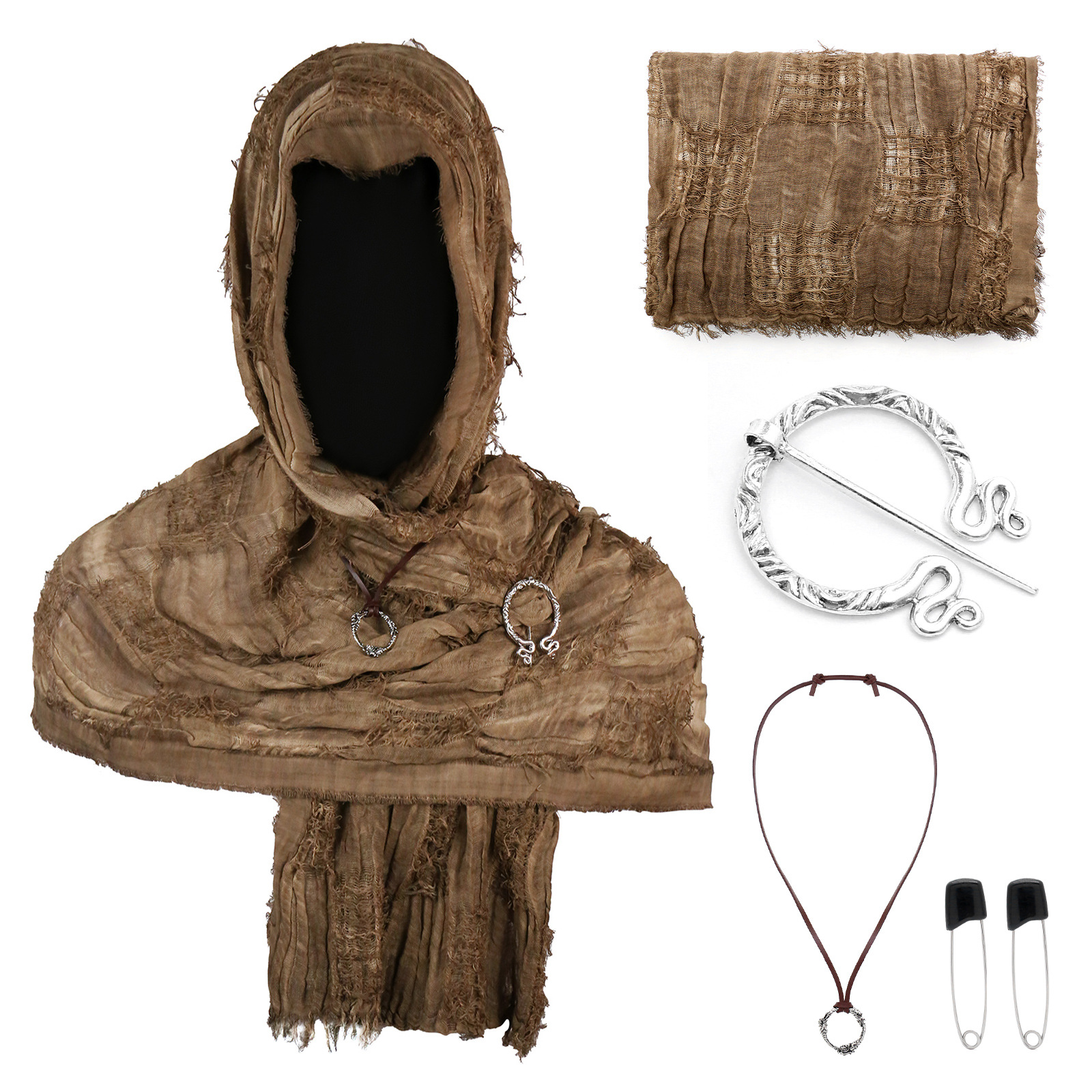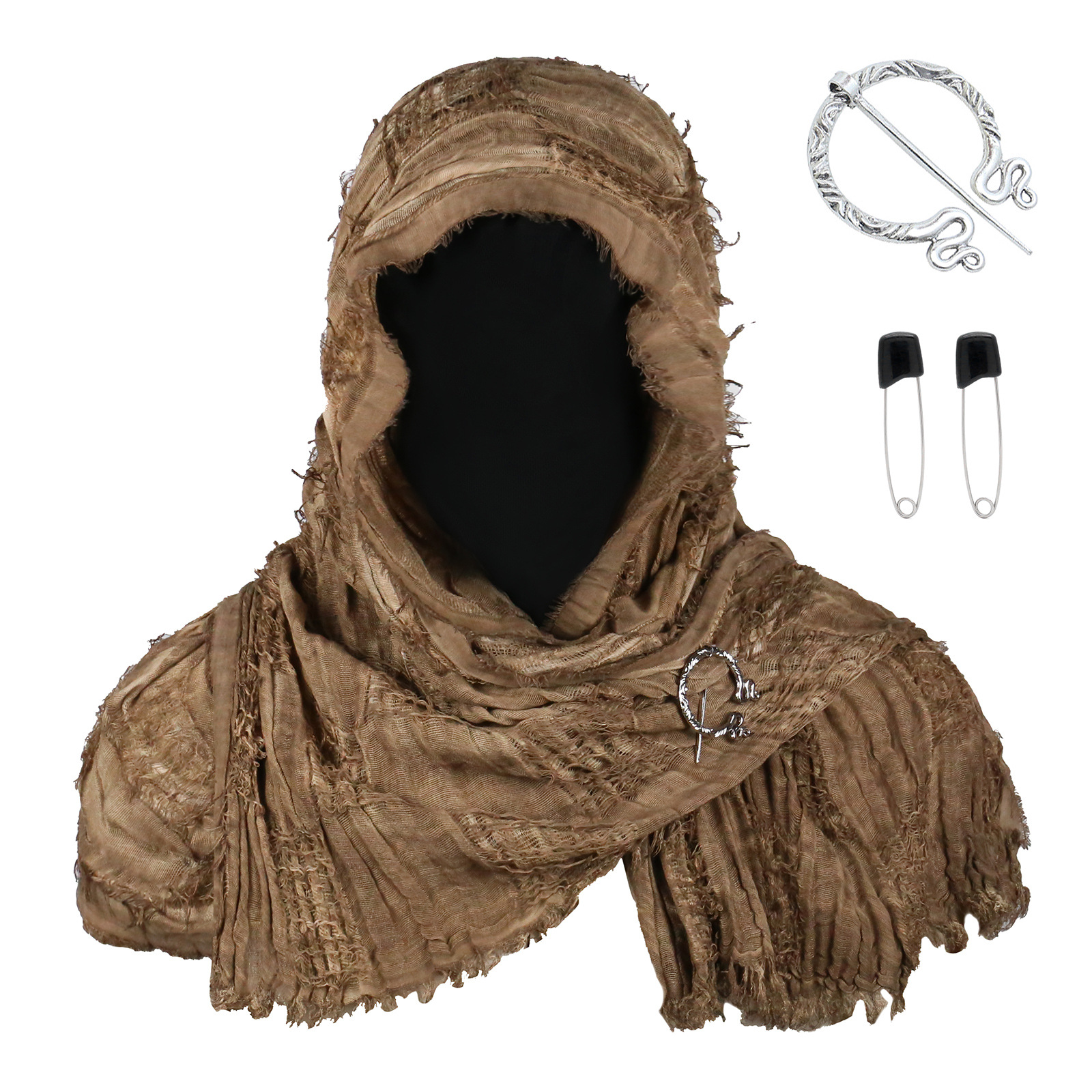 cst153cof coffee-colored distressed scarf (190cm*70cm) + brooch + pin + pendant