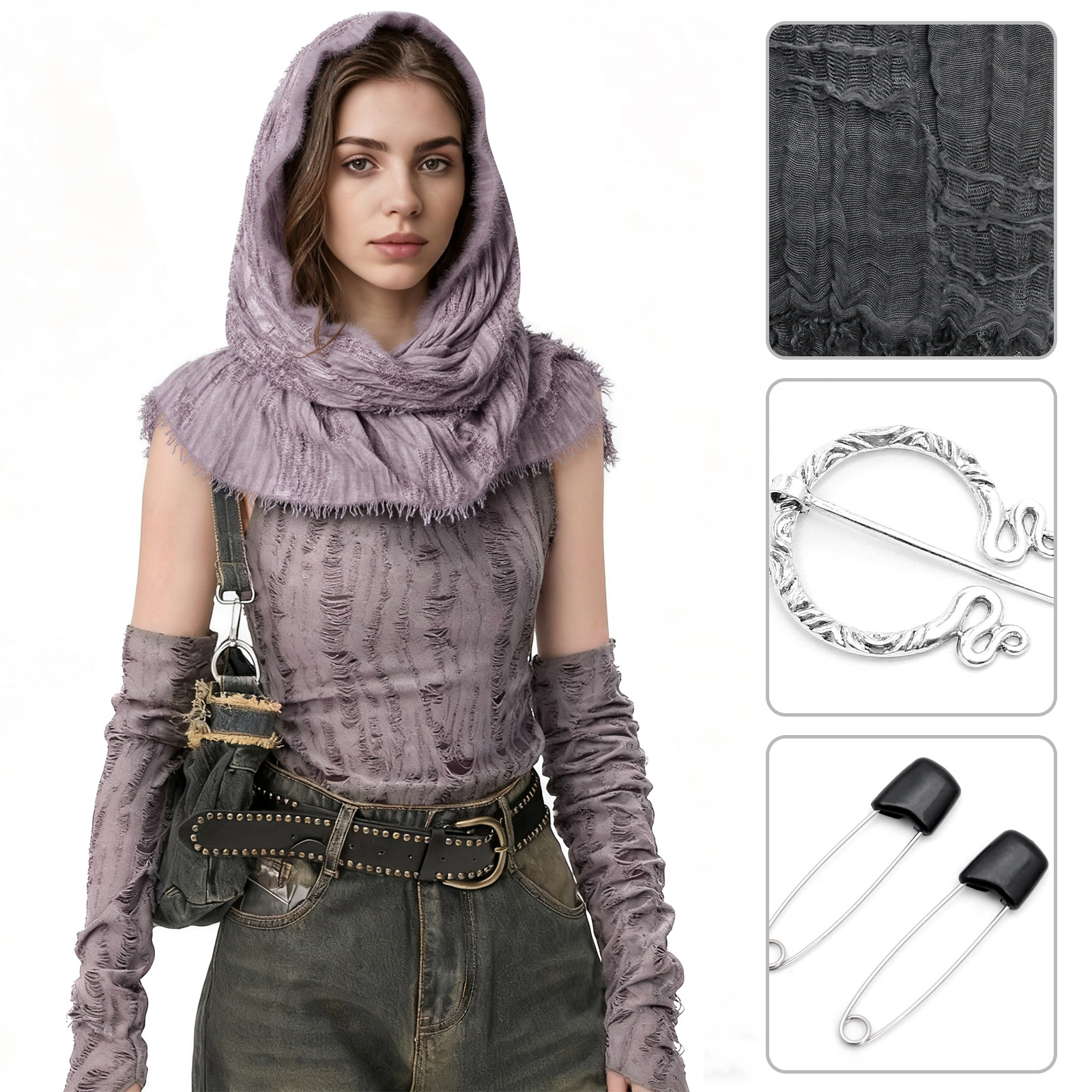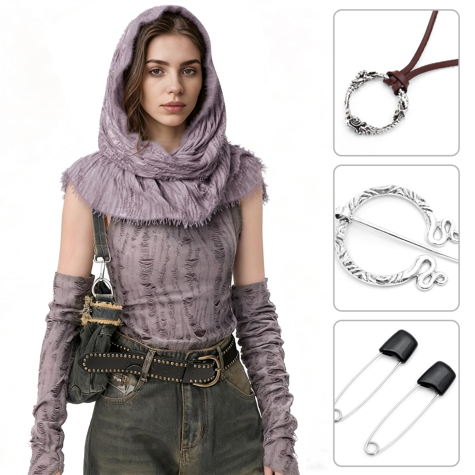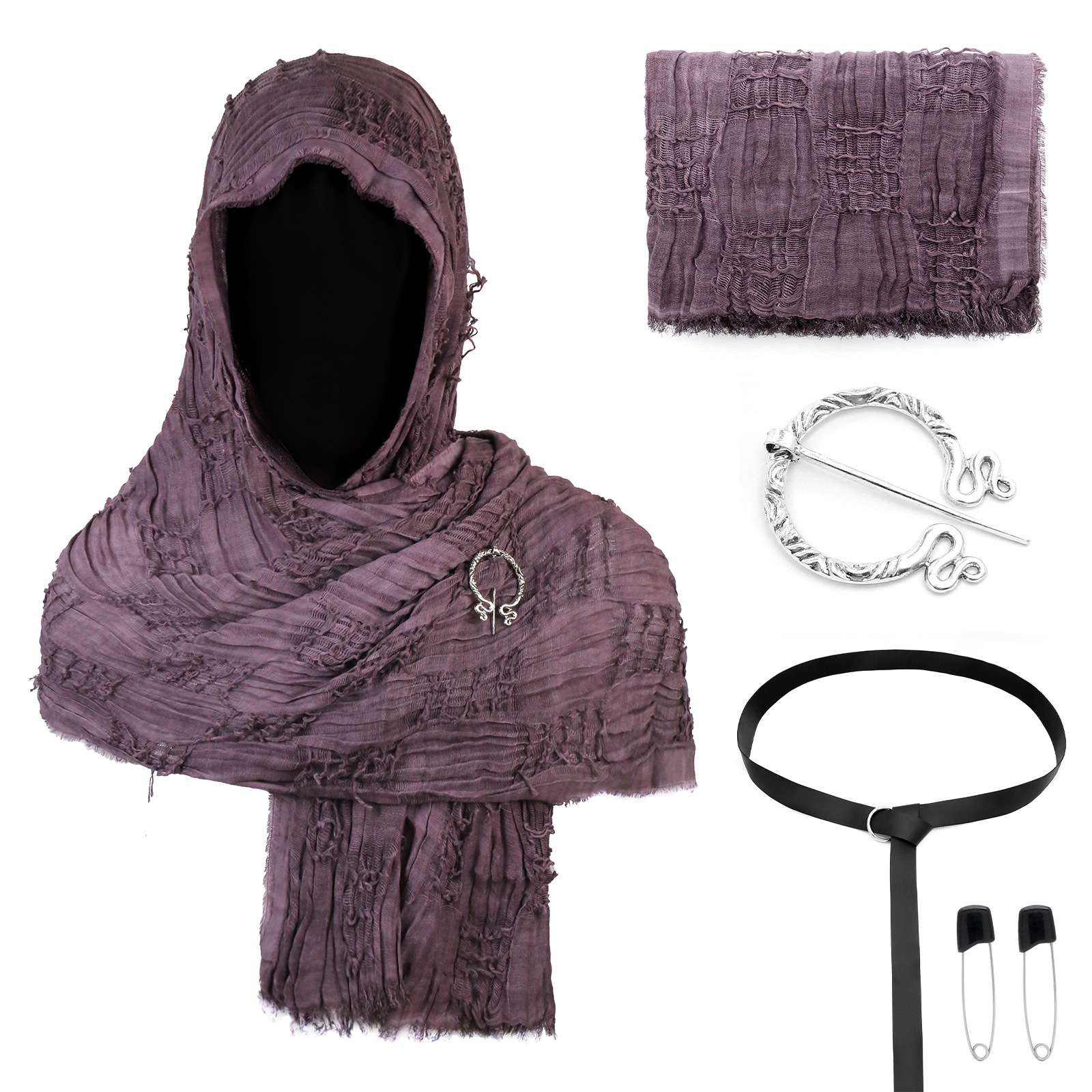cst152tp taro purple battle-damaged scarf (190cm*70cm) + brooch + pin + belt