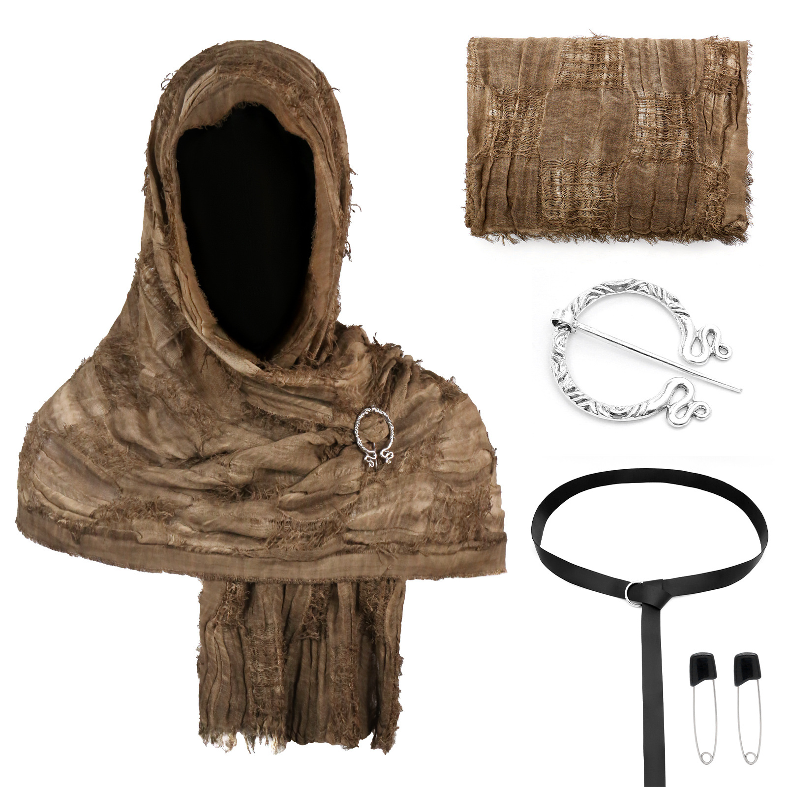 cst152cof coffee-colored distressed scarf (190cm*70cm) + brooch + pin + belt