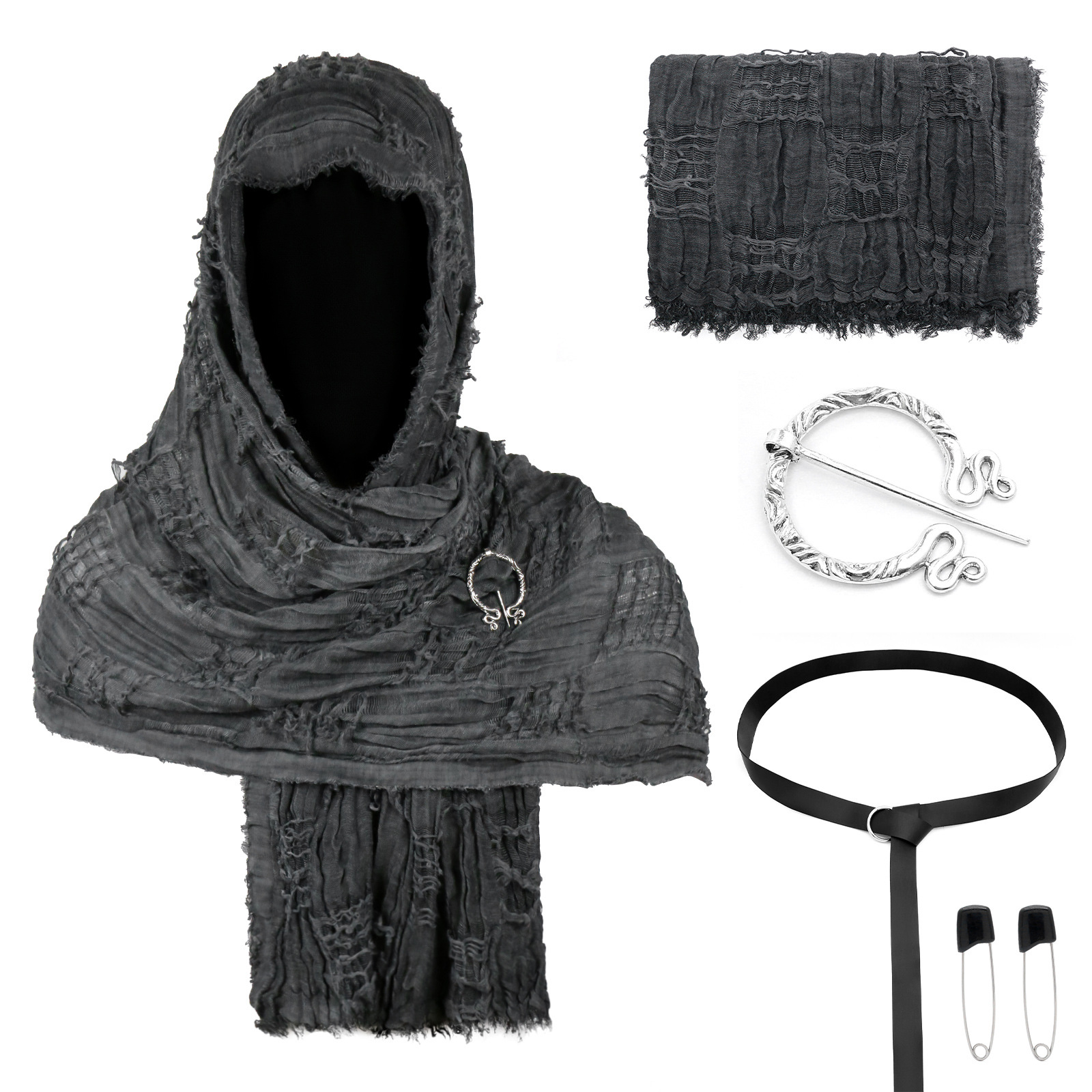 cst152gy gray distressed scarf (190cm*70cm) + brooch + pin + belt