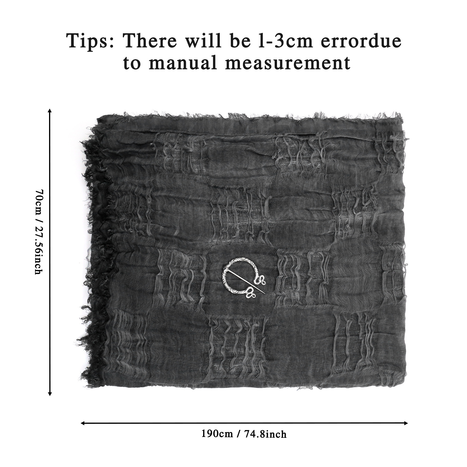 cst094bk black distressed scarf (190cm*70cm) + brooch + pin