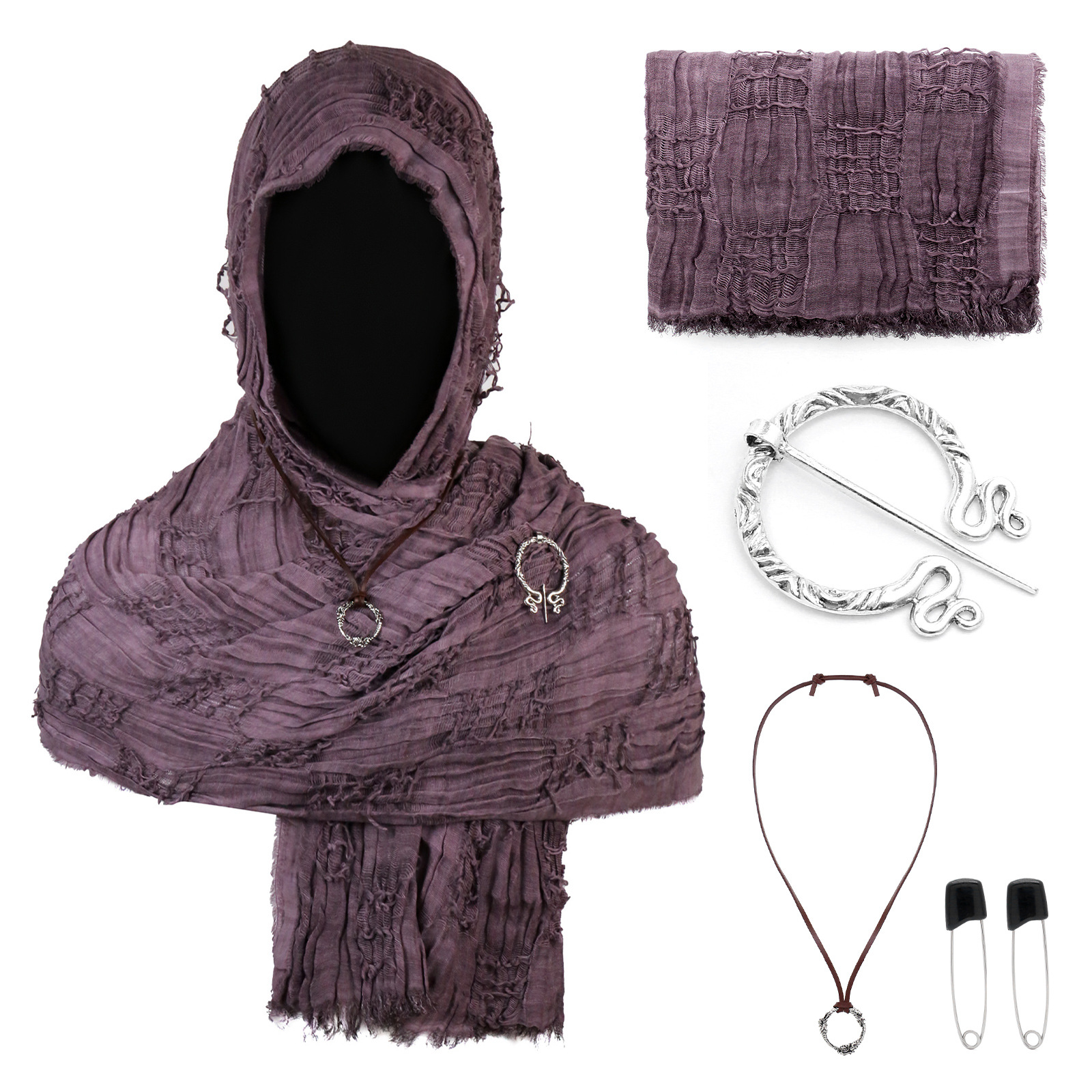 cst153tp taro purple battle-damaged scarf (190cm*70cm) + brooch + pin + pendant