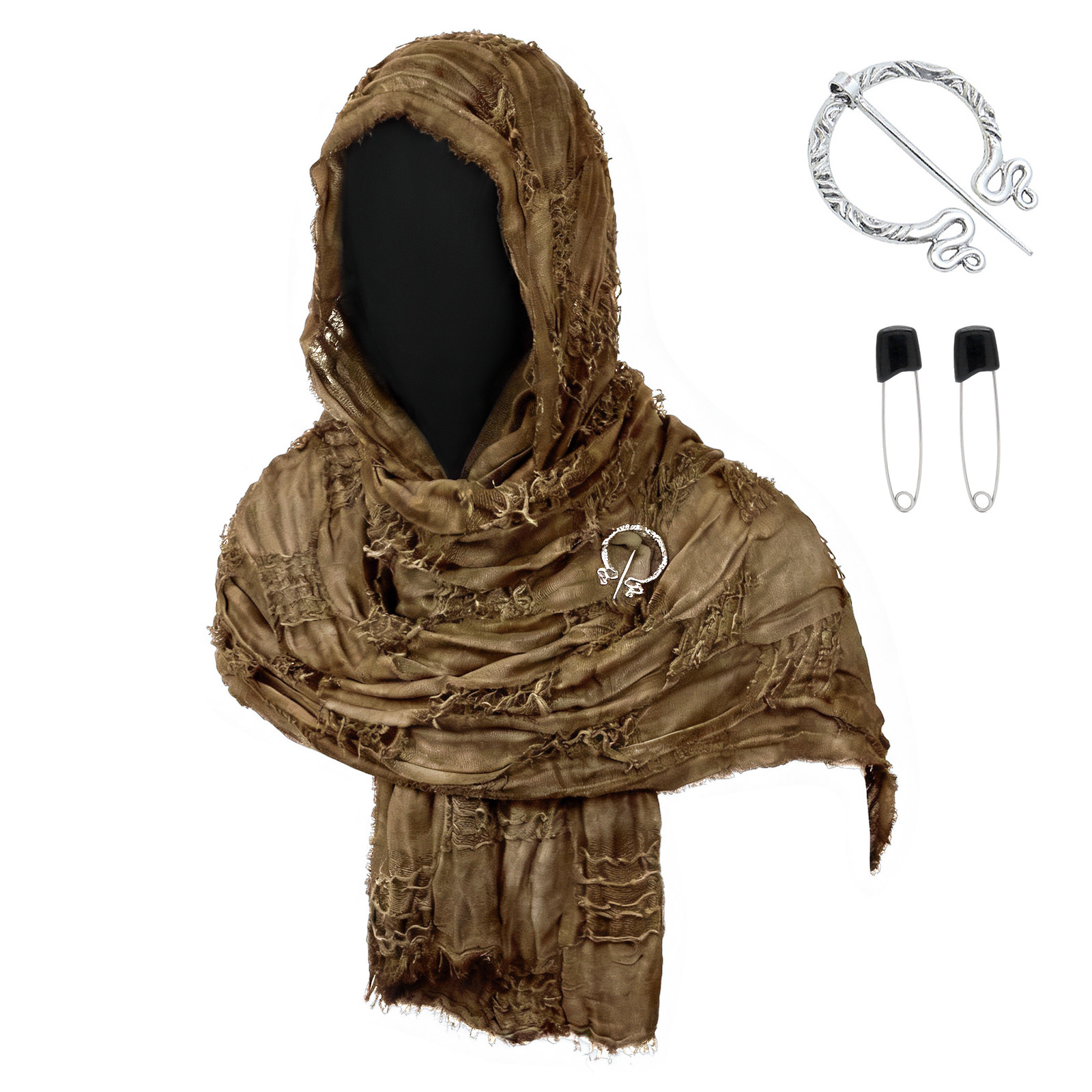 cst153kh khaki distressed scarf (190cm*70cm) + brooch + pin + pendant