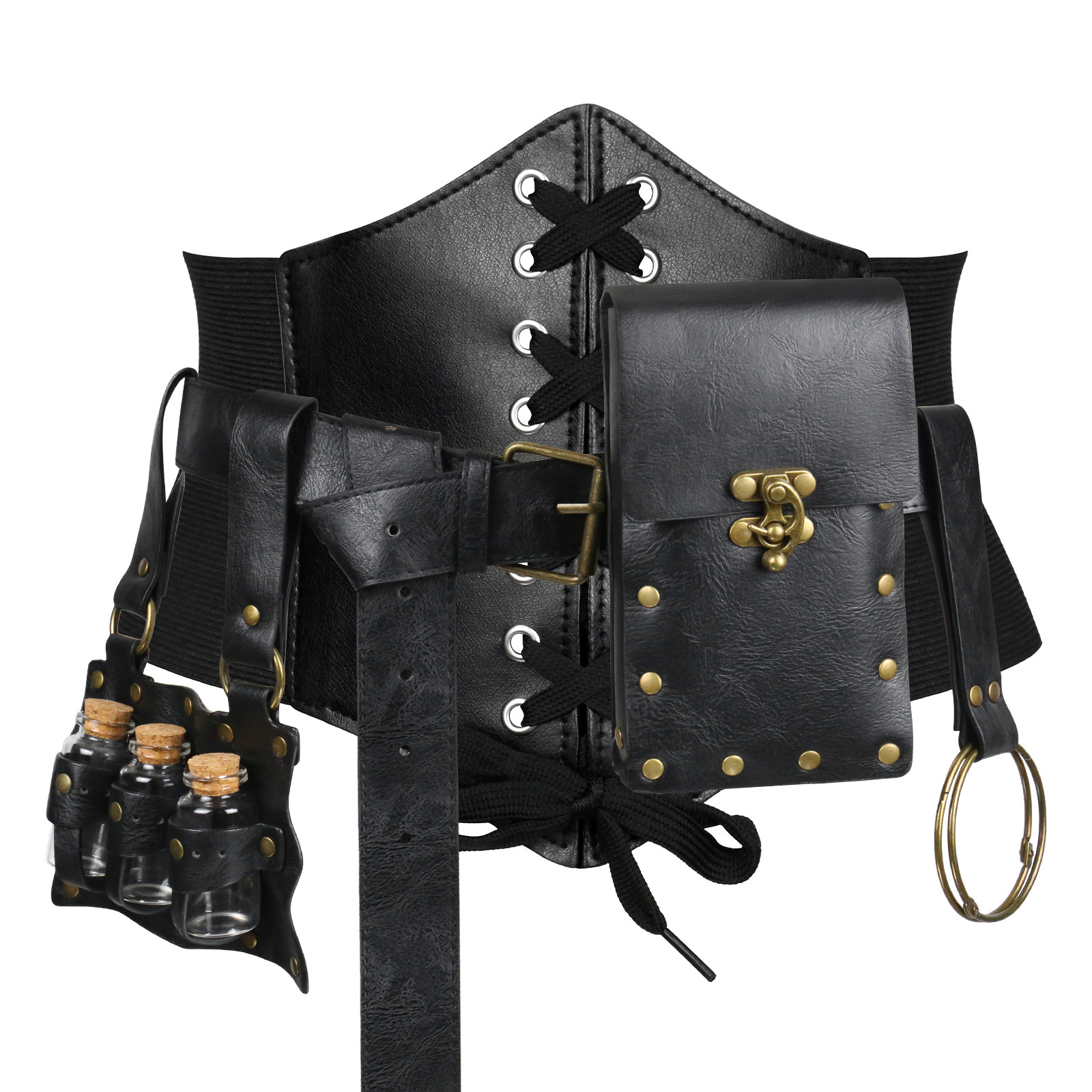 cst087bk black (waist cincher size l 78cm +3 alchemy bottles + belt + big belt bag + keychain)