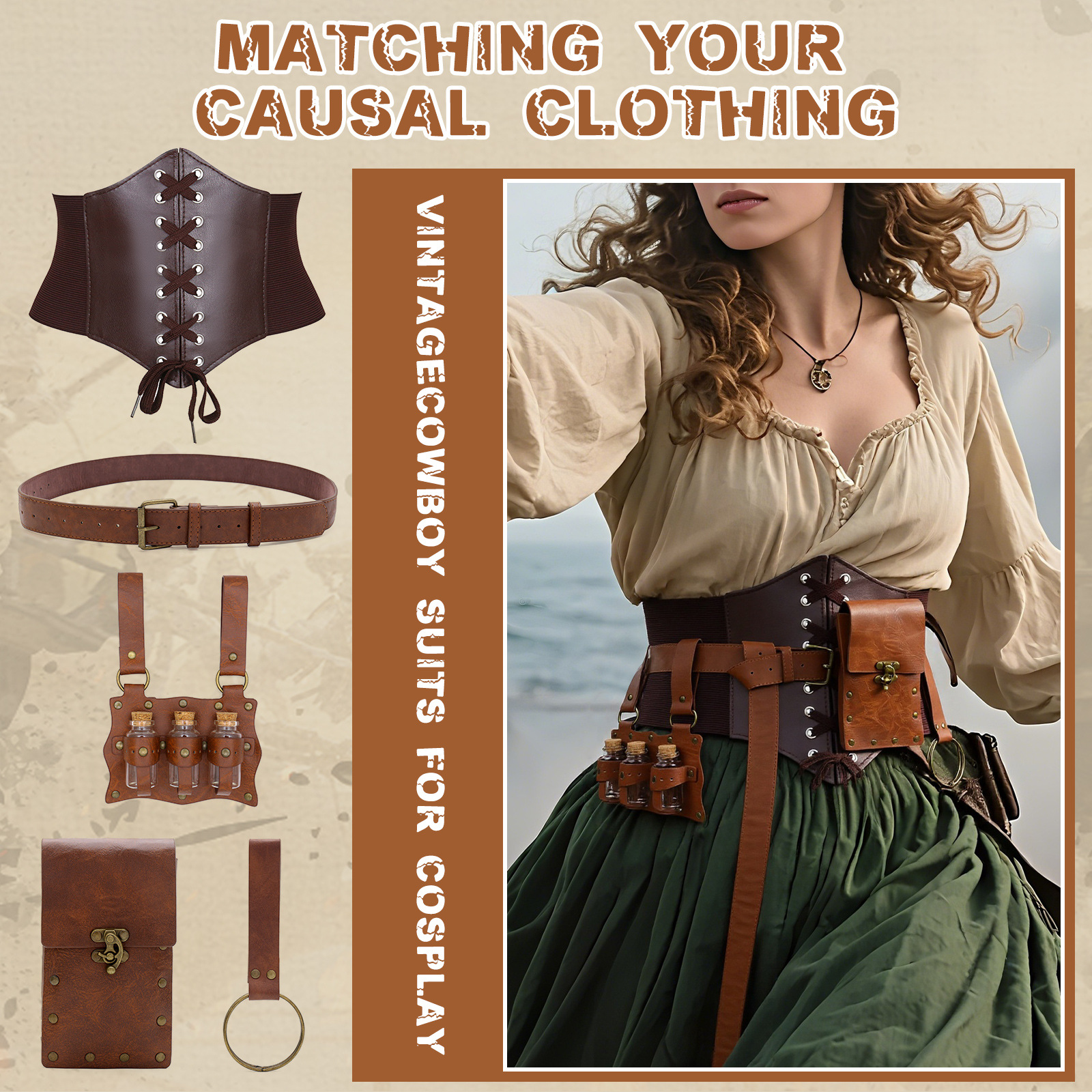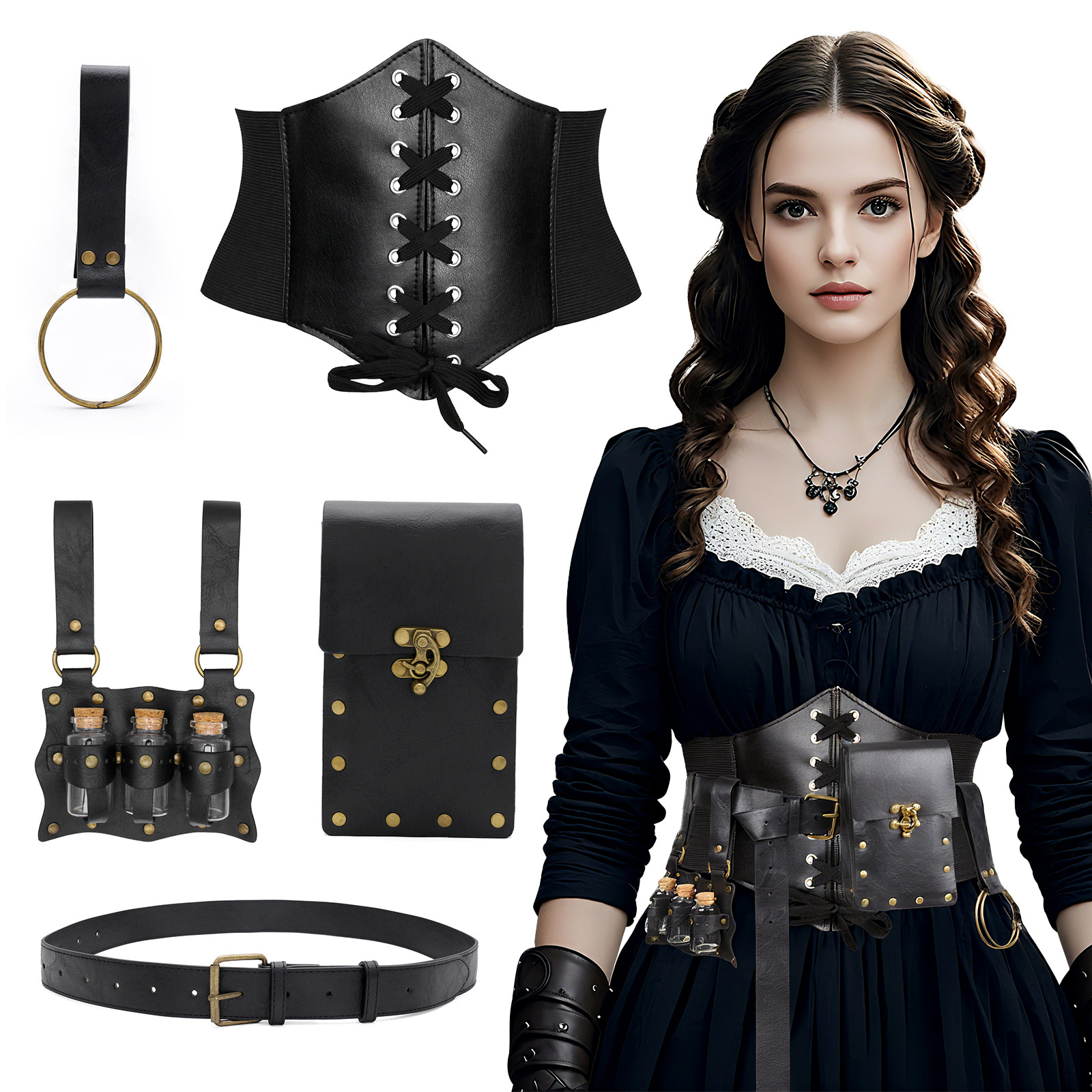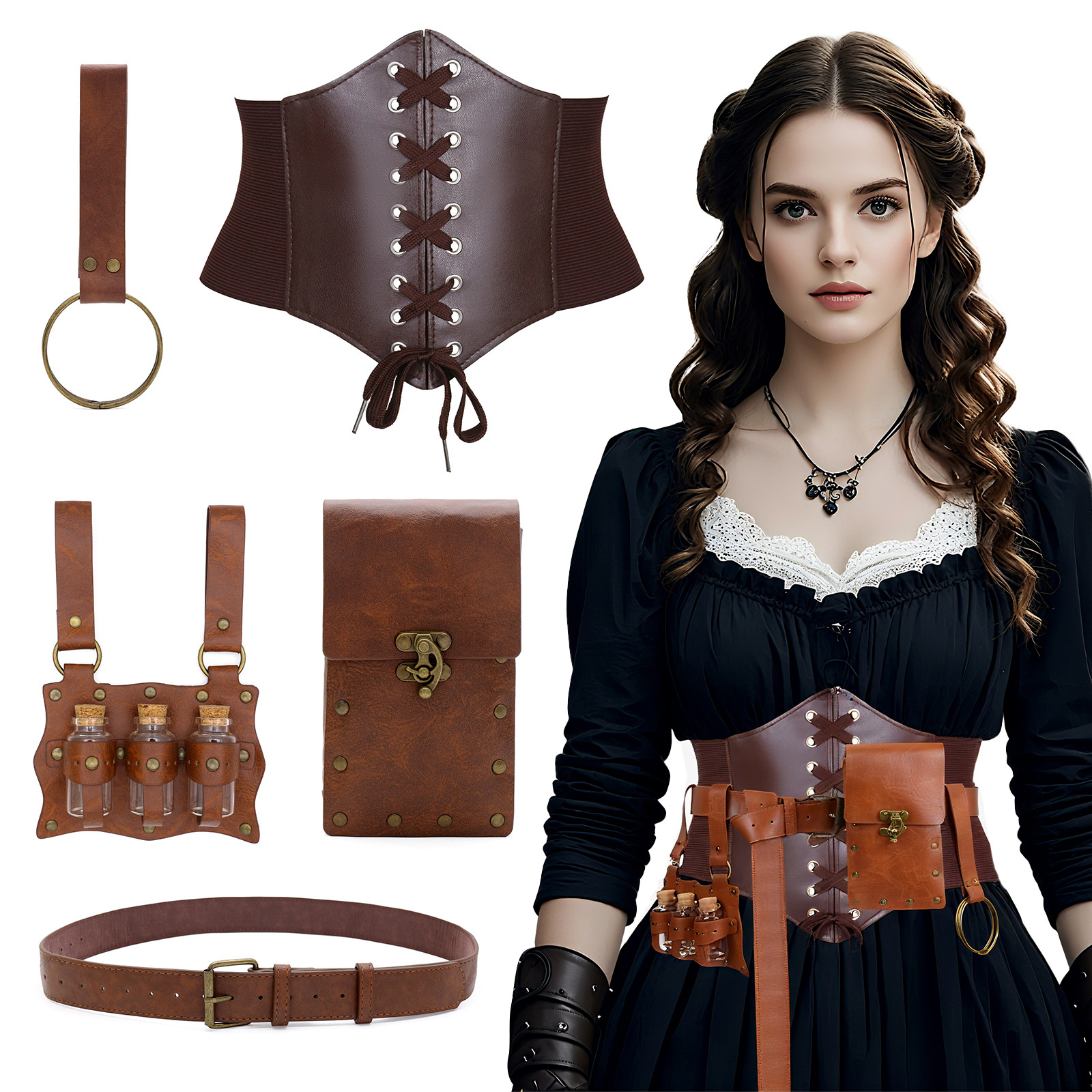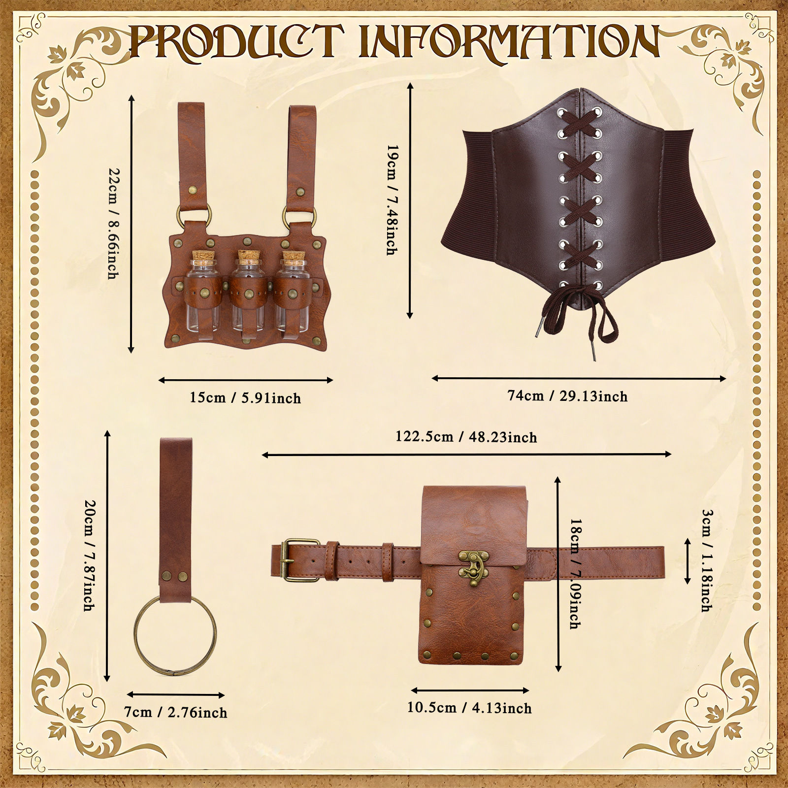 cst087br brown (waist cincher size m 73cm +3 bottles of alchemy potion + belt + big belt bag + keychain)