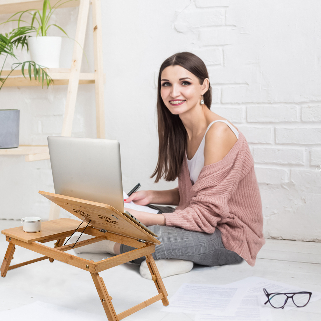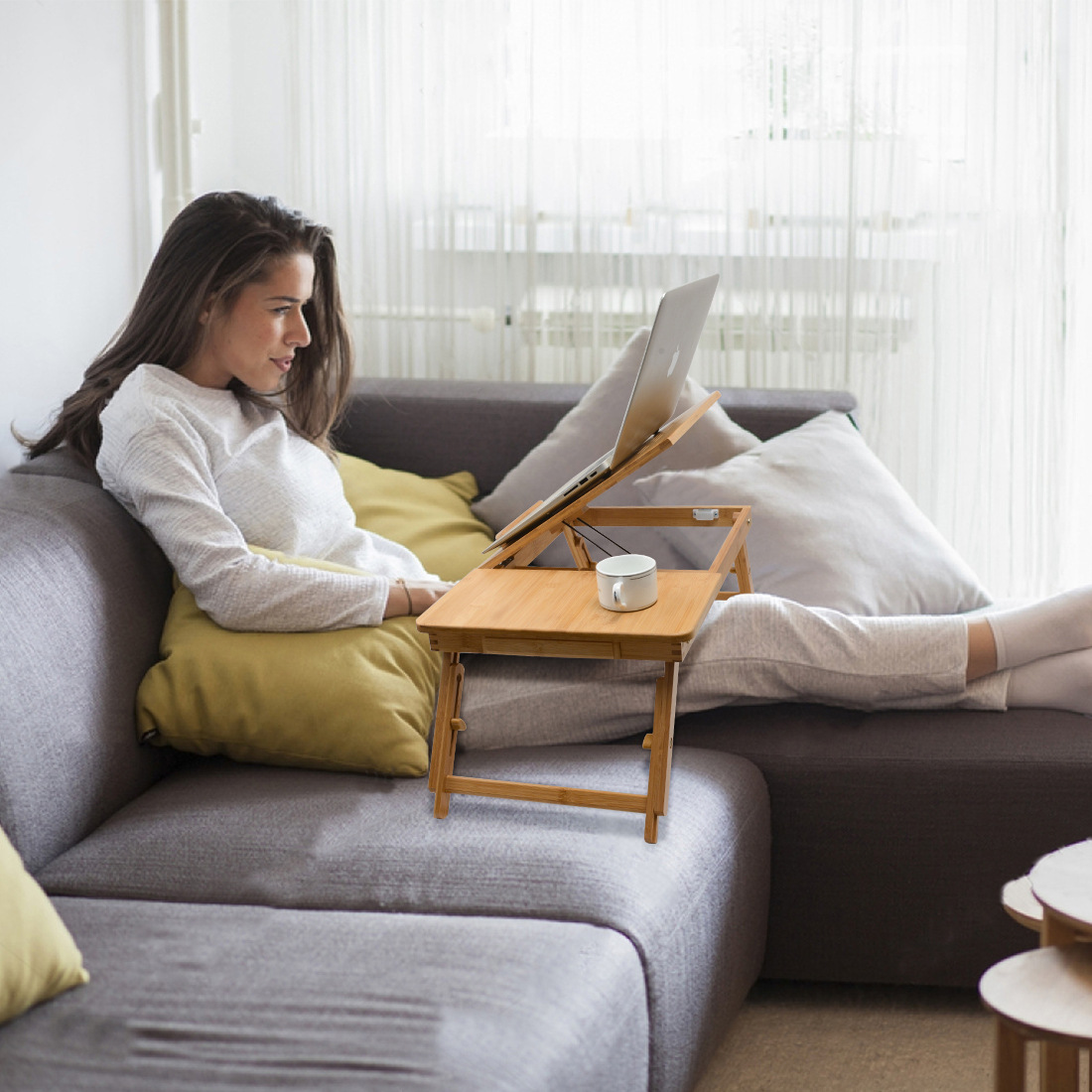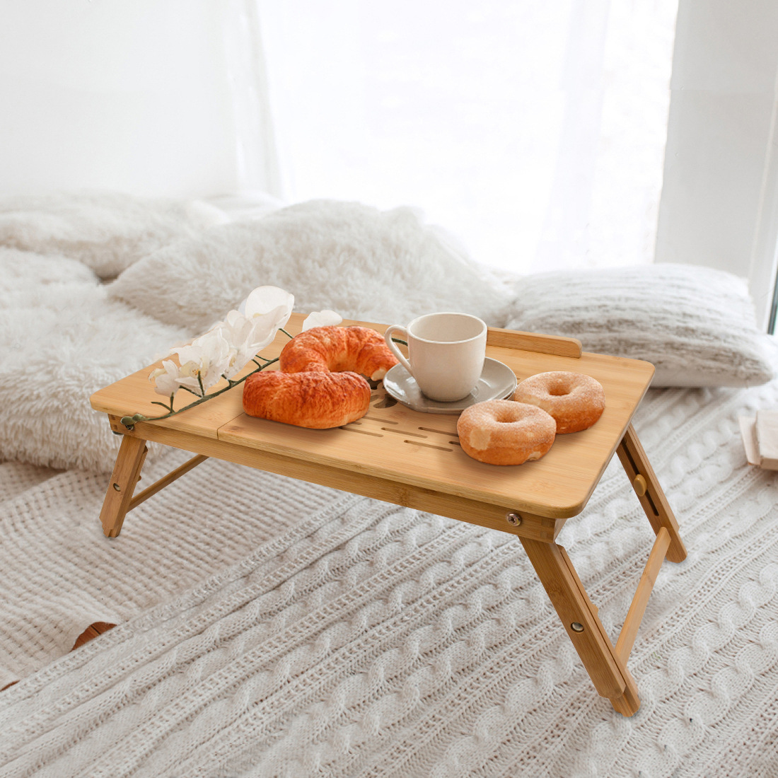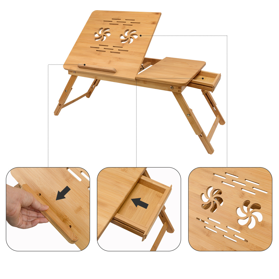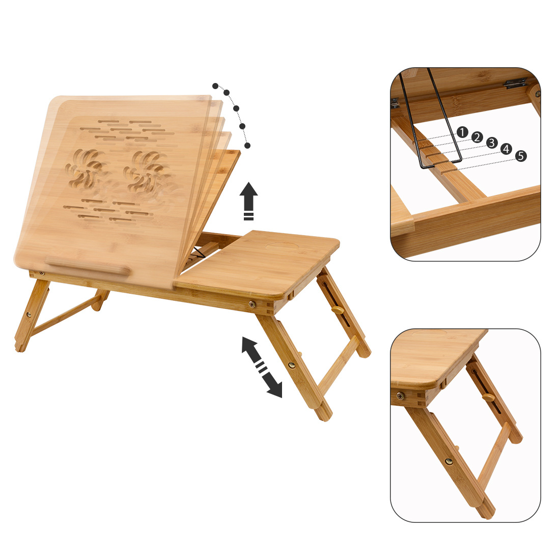 foldable height-adjustable bamboo wooden home study desk for bed simple bedroom all-in-one bay window table for student dormitories