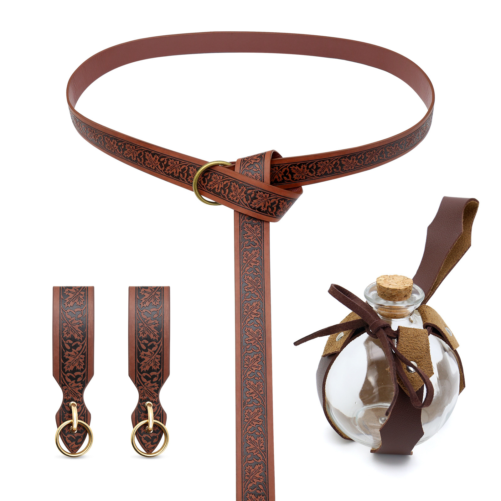 vkst289br (1 maple leaf embossed belt +1 maple leaf medicine bottle +2 maple leaf keychains +1 rivet belt