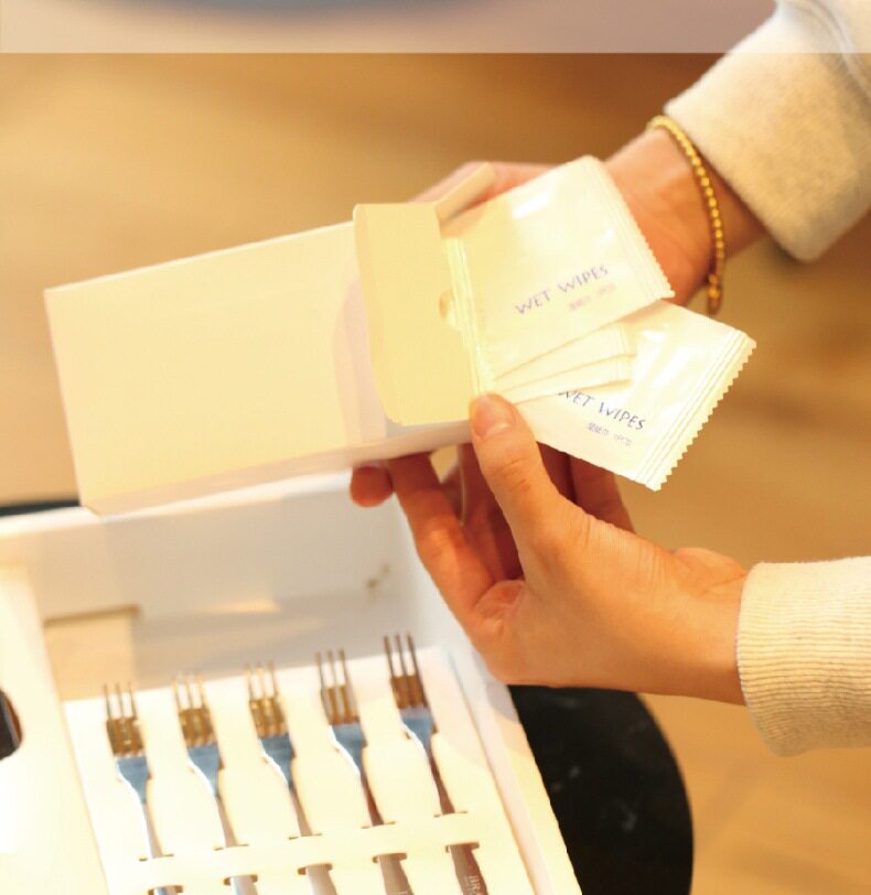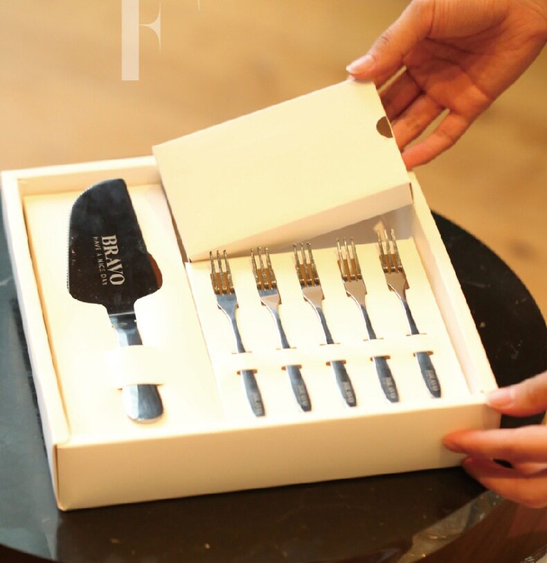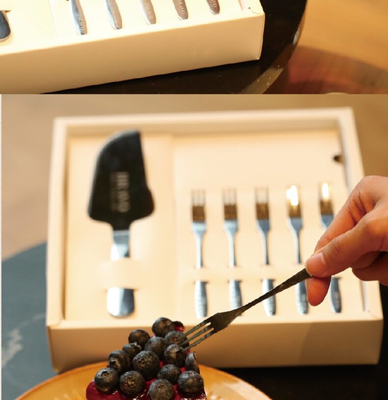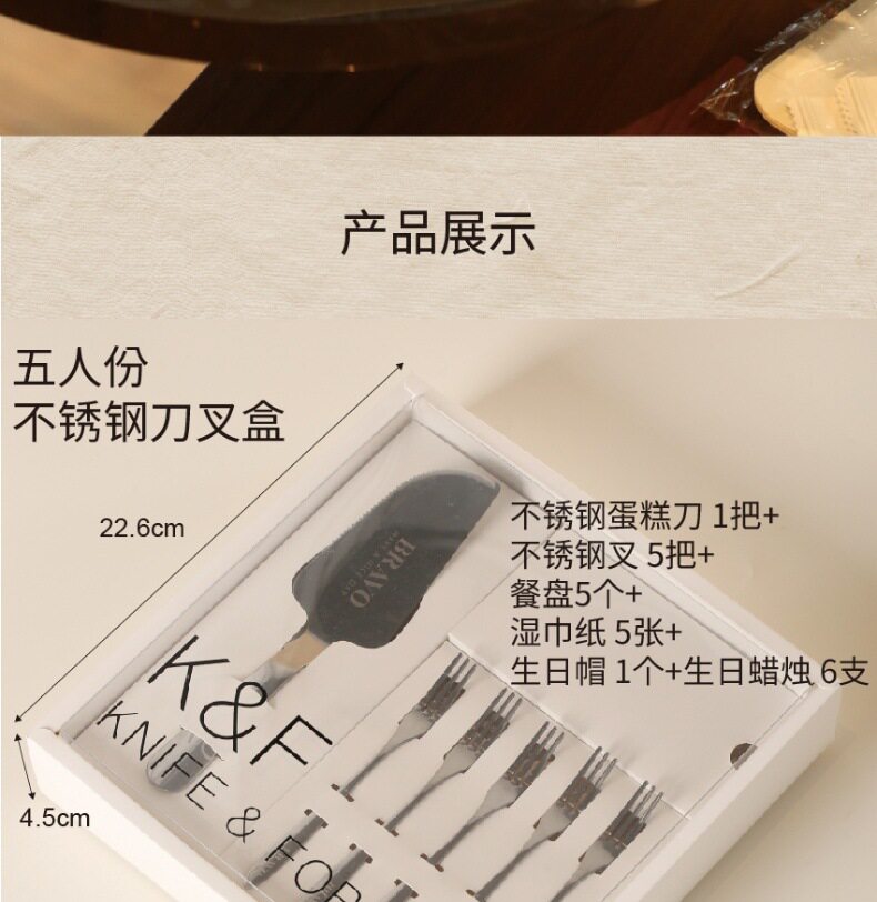 one set of 8-inch laser-silver knife and fork set for five people.