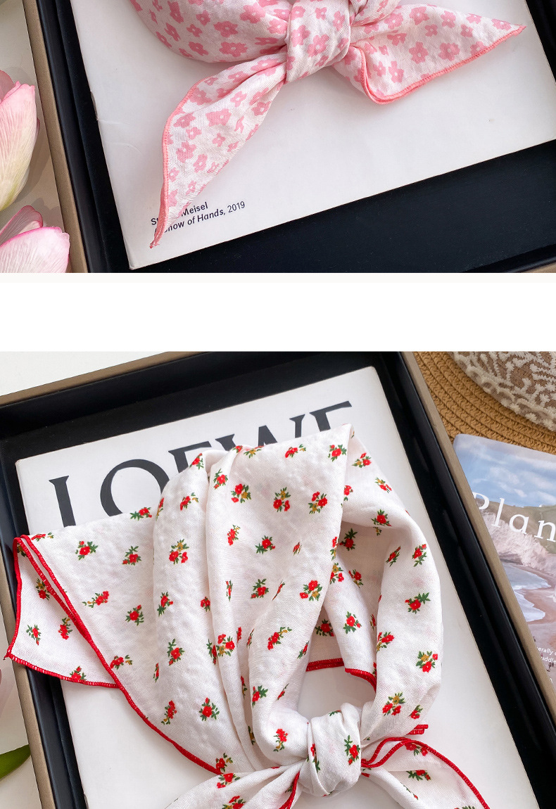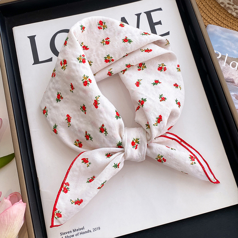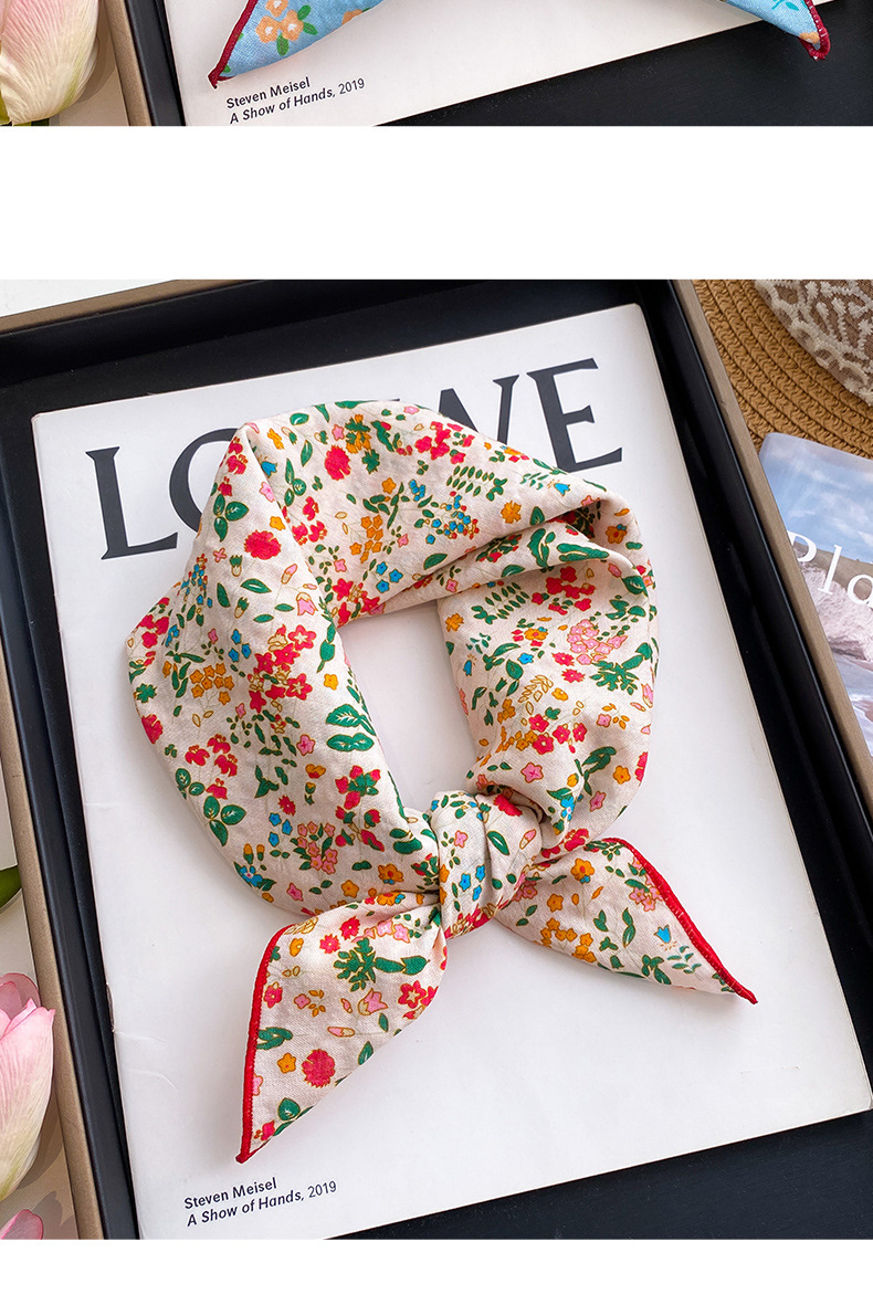 small floral print-beige base with red trim