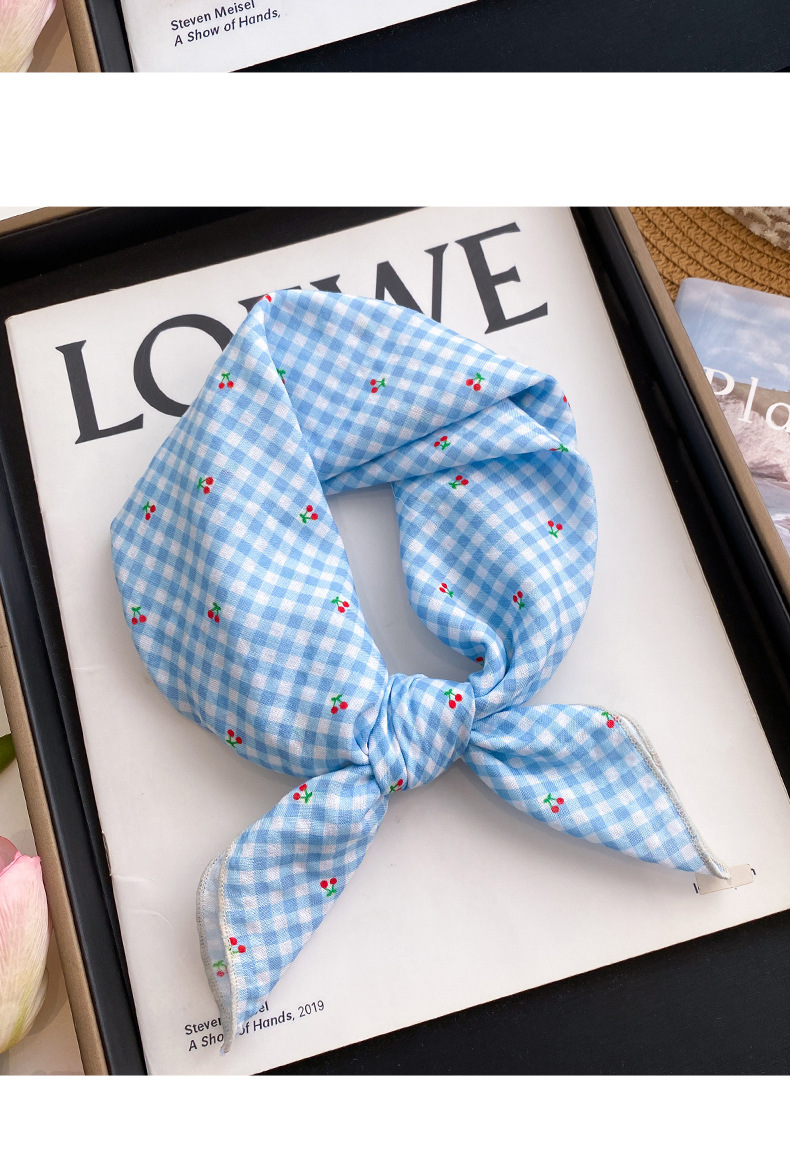 small plaid cherry-blue and white