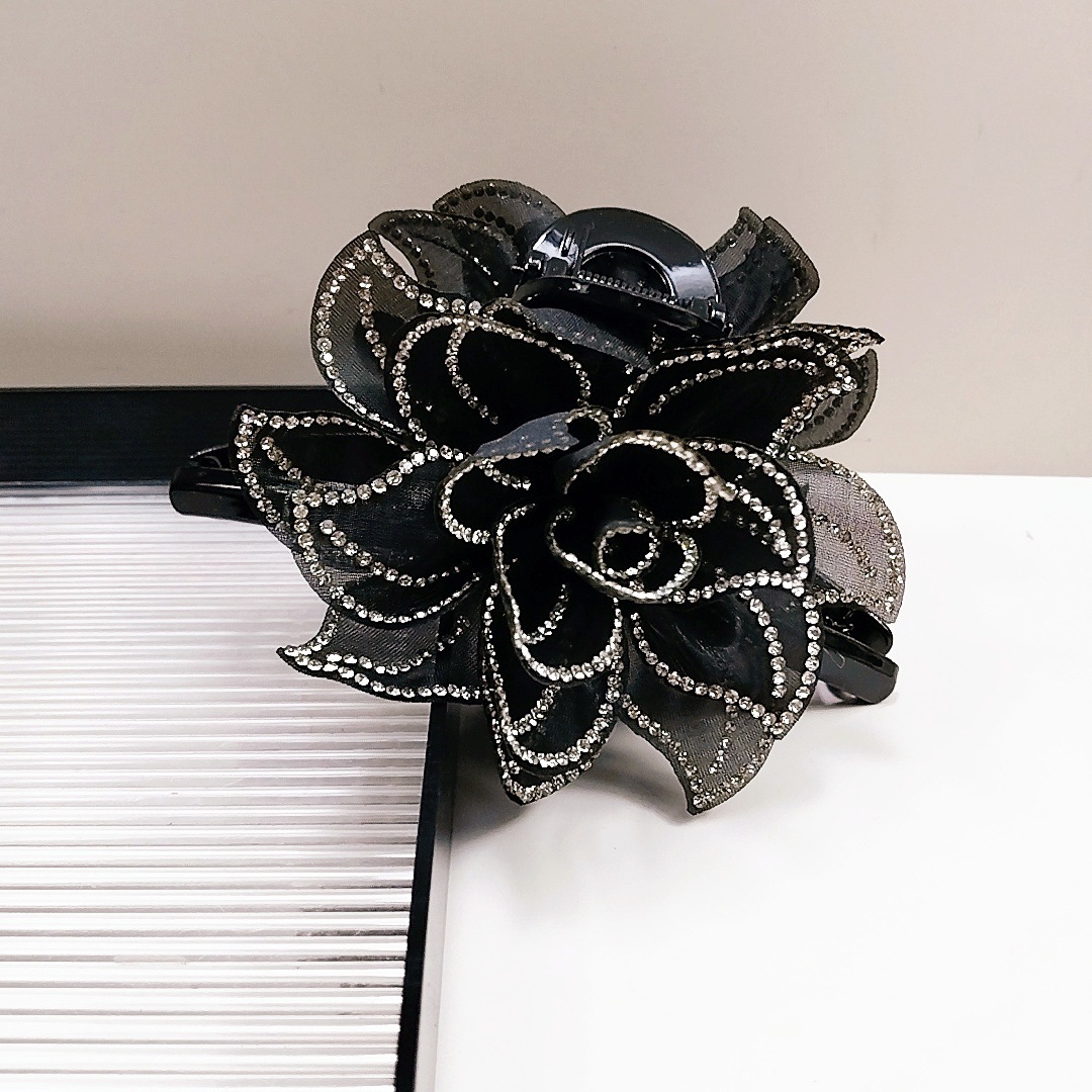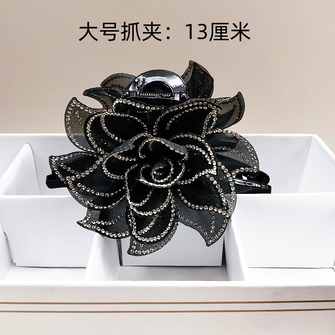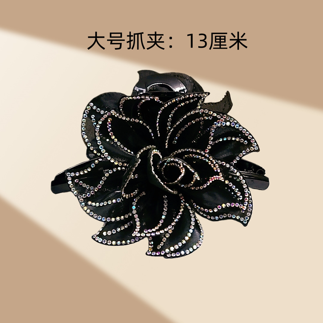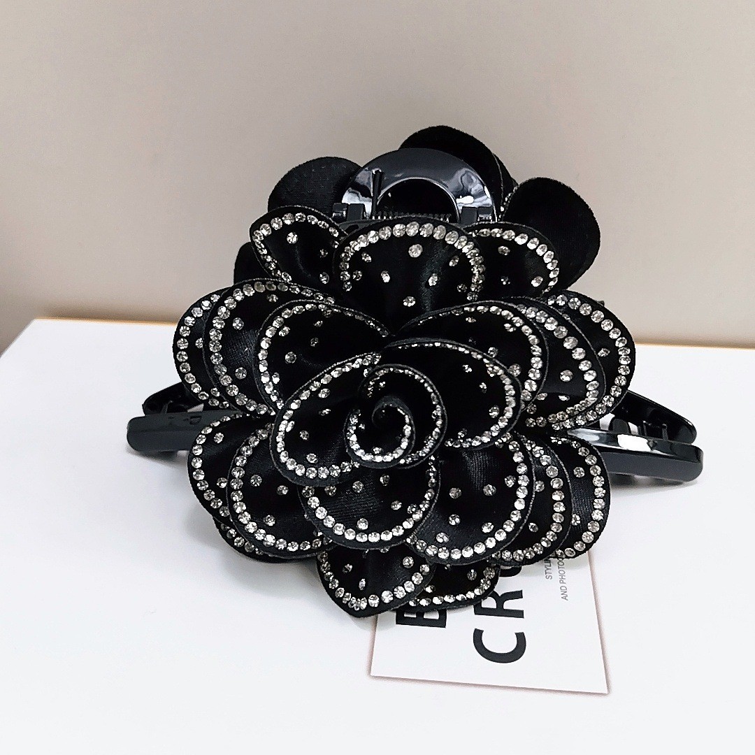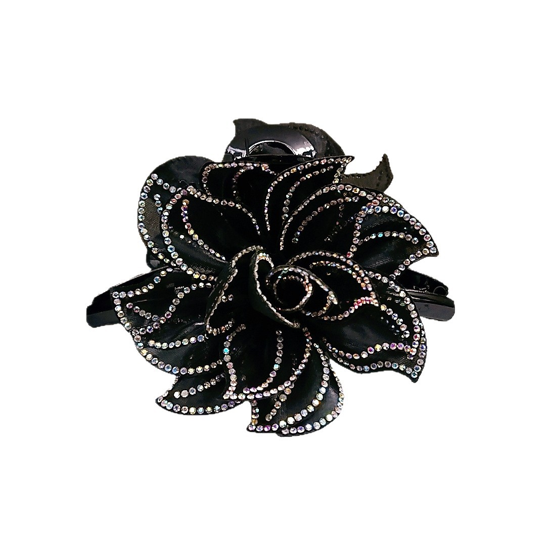 camellia fully diamond-encrusted flower big claw [black diamonds]