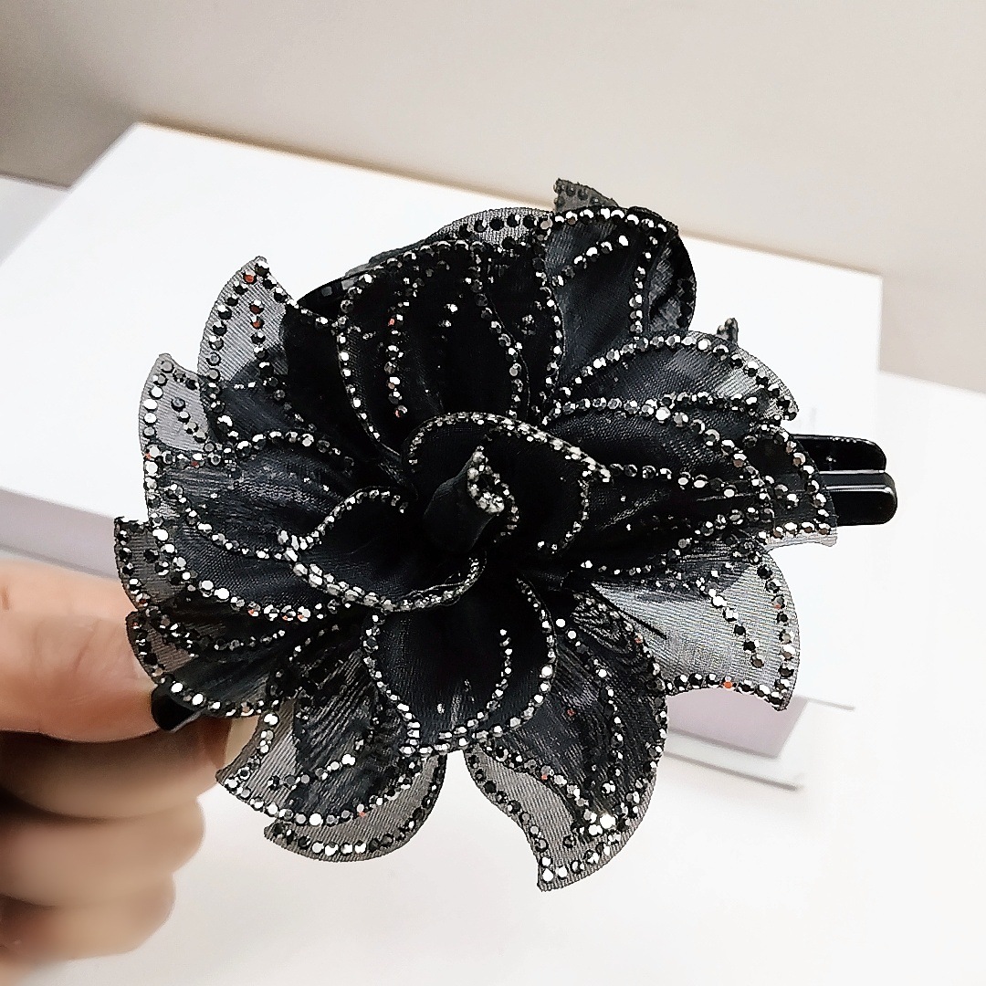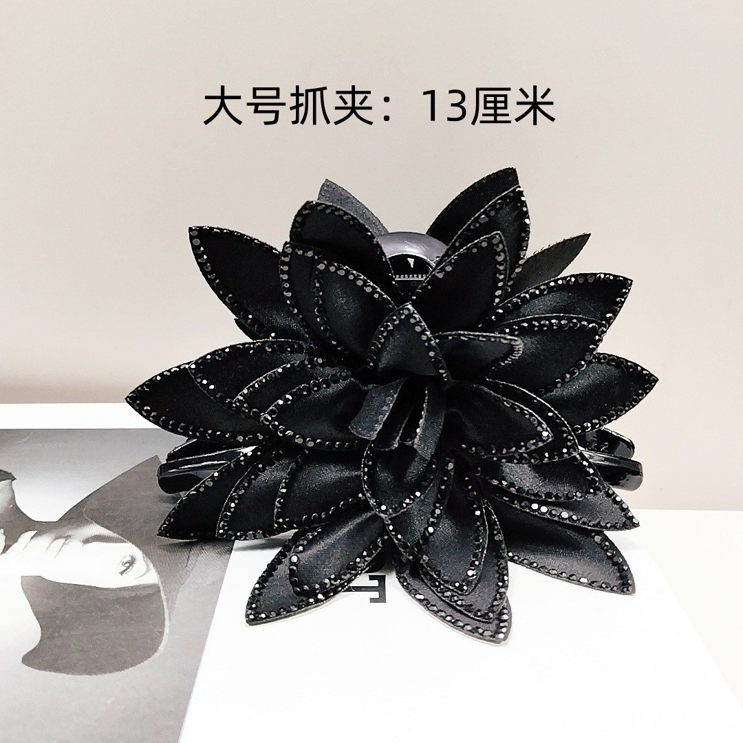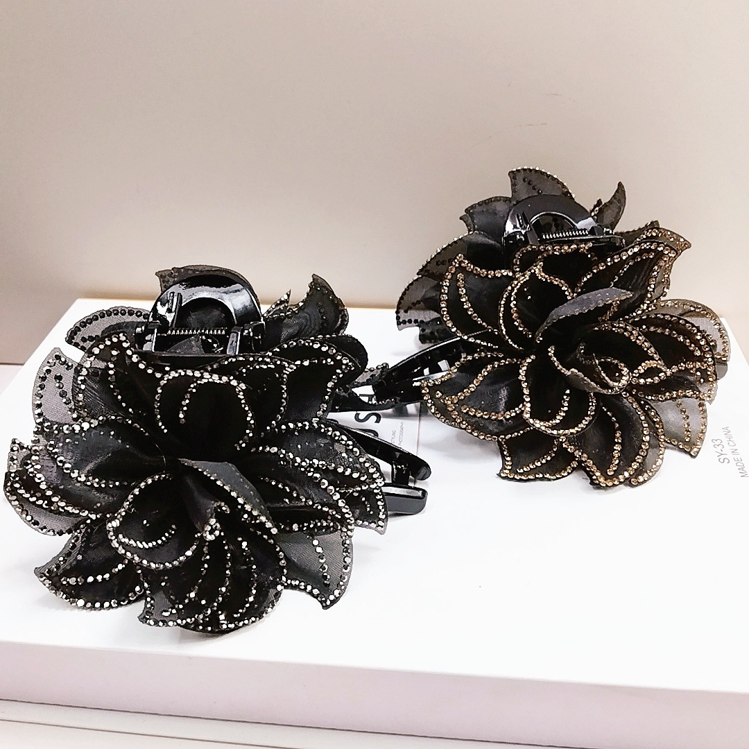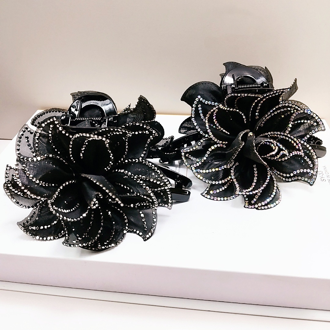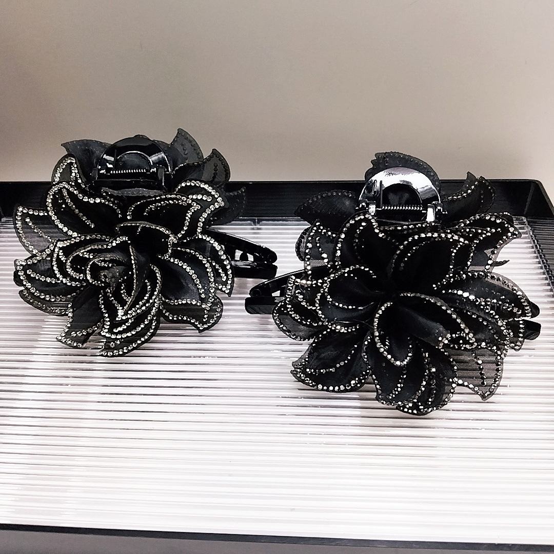 camellia fully diamond-encrusted flower big claw [black diamonds]