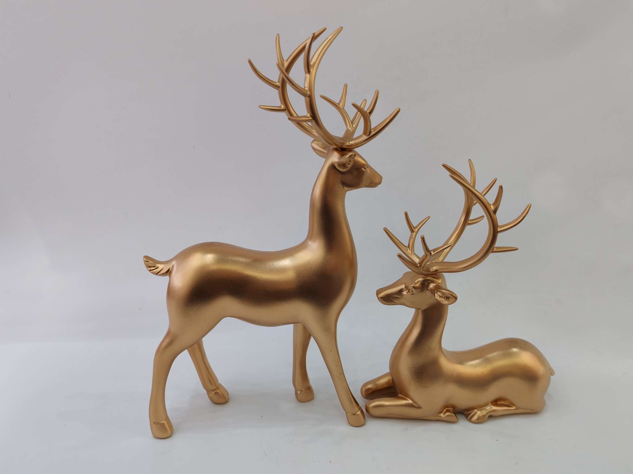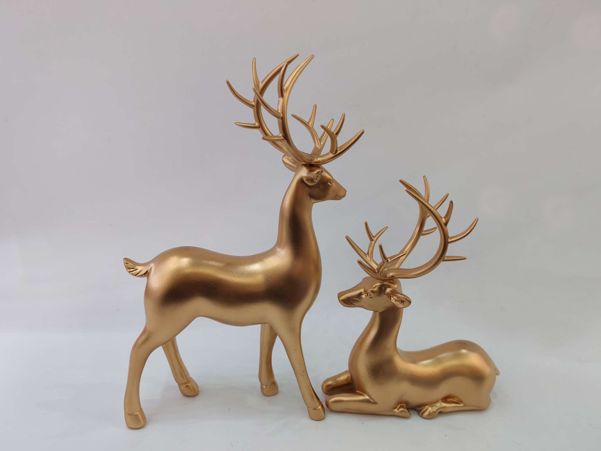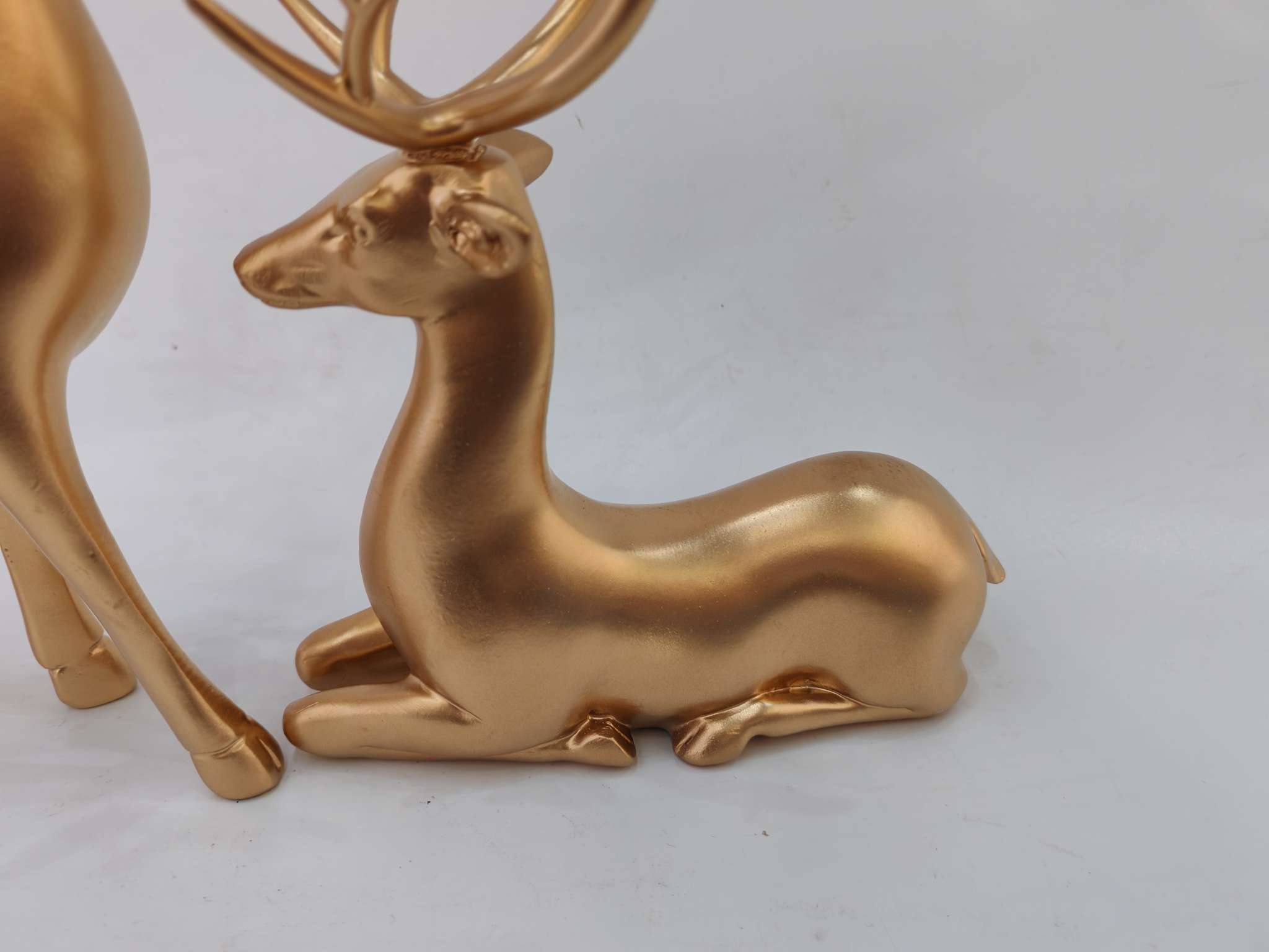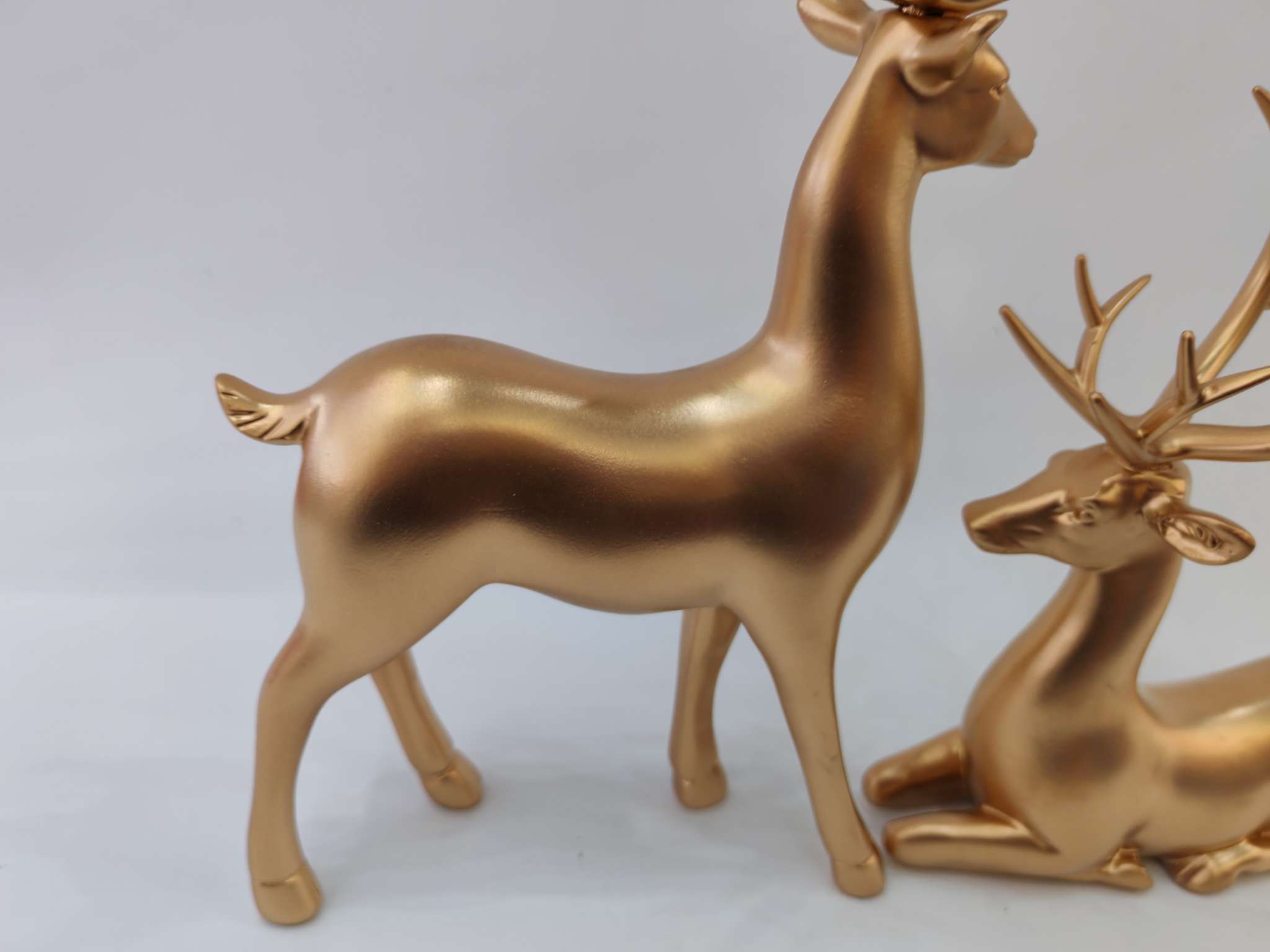 Golden Deer Resin Ornament, made of eco-friendly resin material, hand-plated gold process, with lasting luster that does not fade. The design symbolizes good luck and happiness, suitable for home decor or as a gift, solving the pain point of monotonous space. It is the perfect choice for your home aesthetics. For more information, please contact 13957912609.