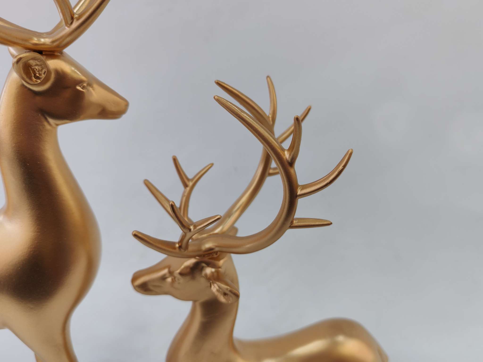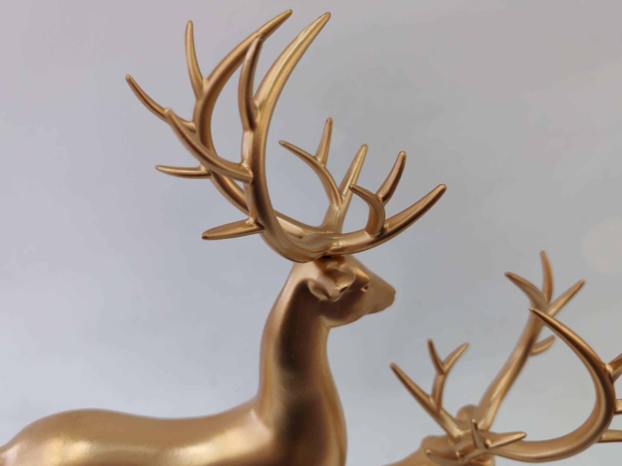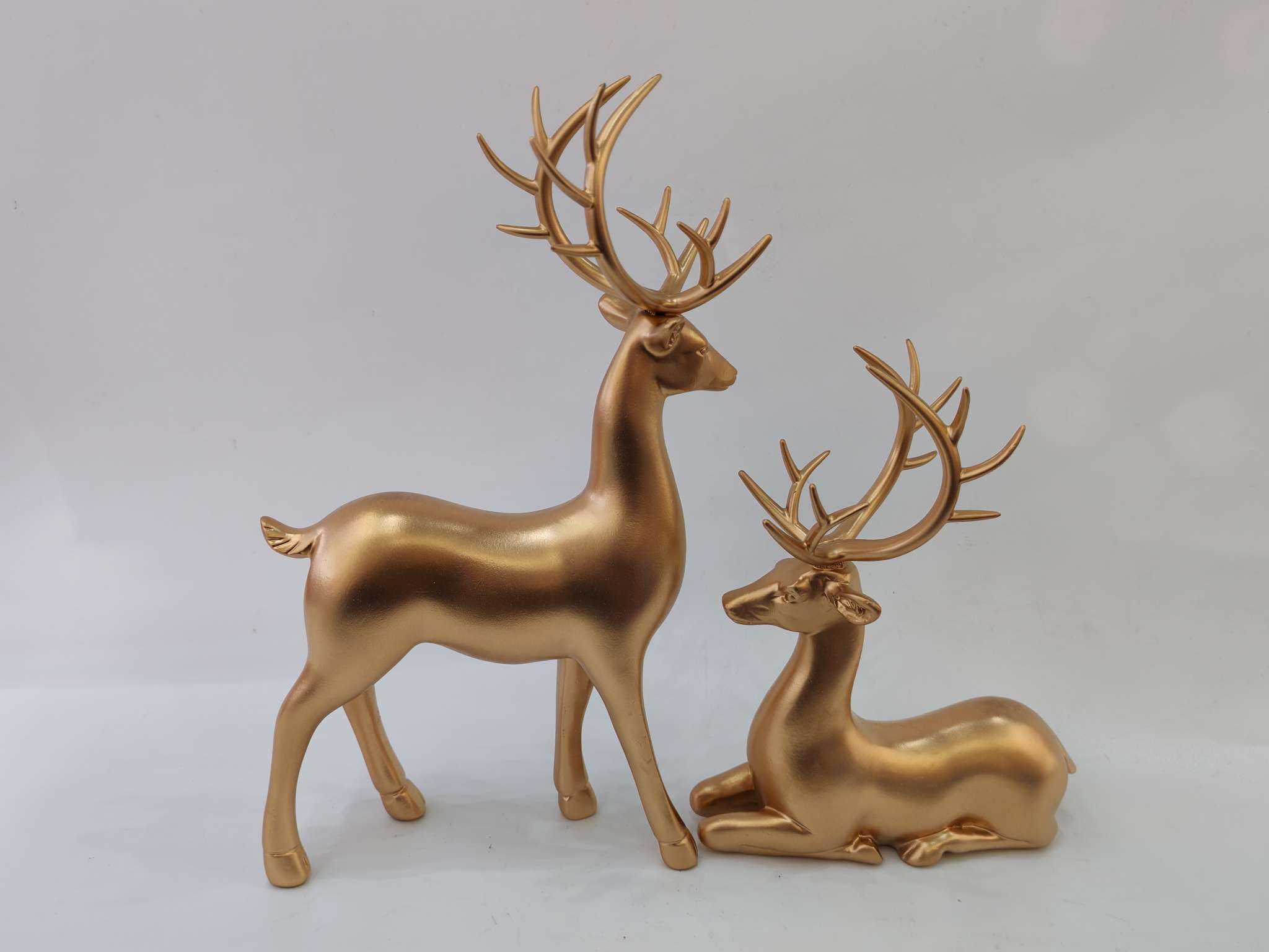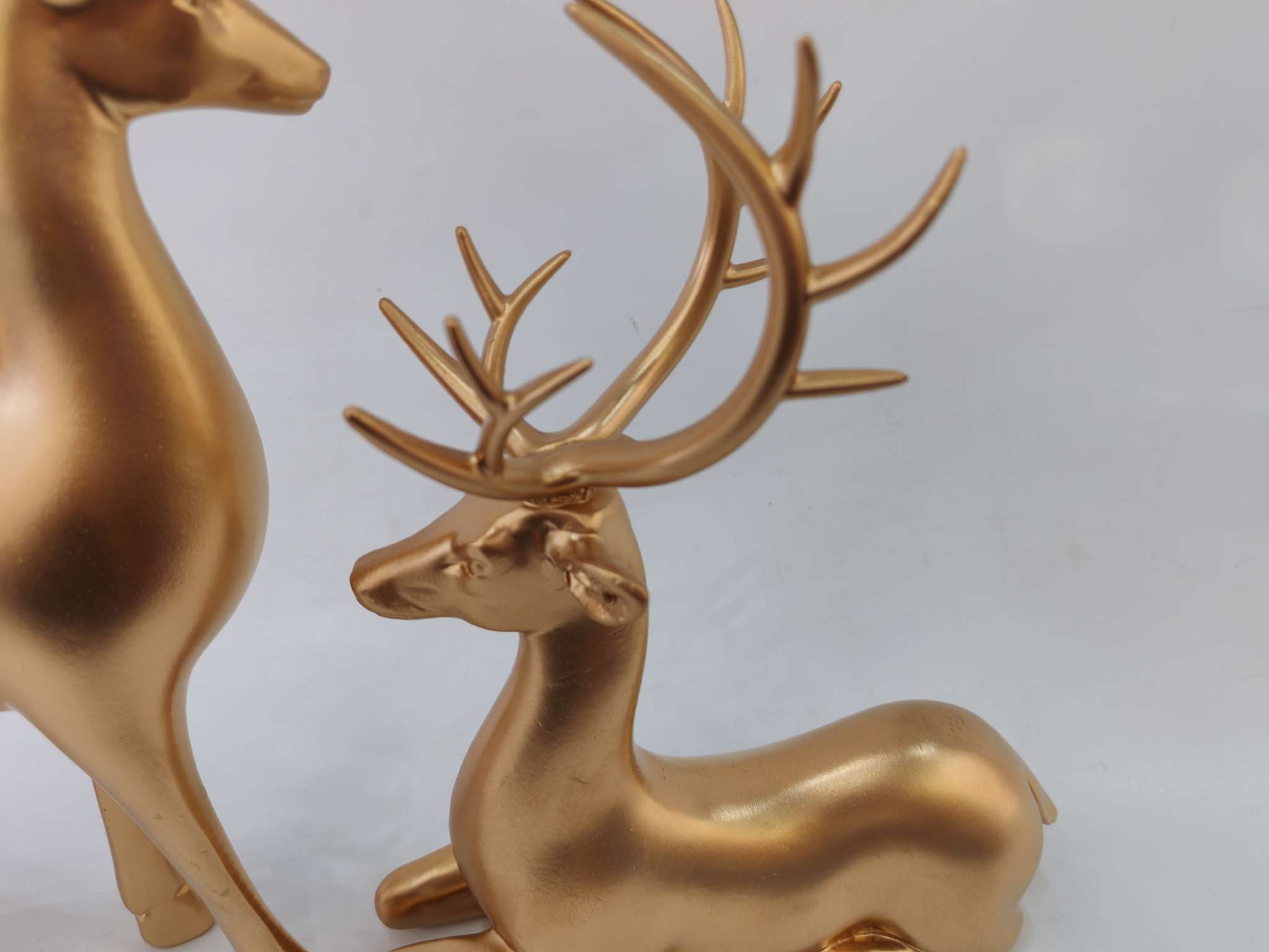 Golden Deer Resin Ornament, made of eco-friendly resin material, hand-plated gold process, with lasting luster that does not fade. The design symbolizes good luck and happiness, suitable for home decor or as a gift, solving the pain point of monotonous space. It is the perfect choice for your home aesthetics. For more information, please contact 13957912609.