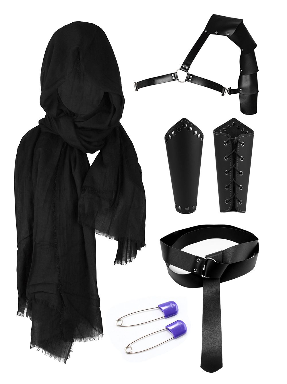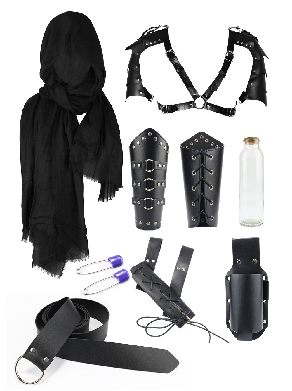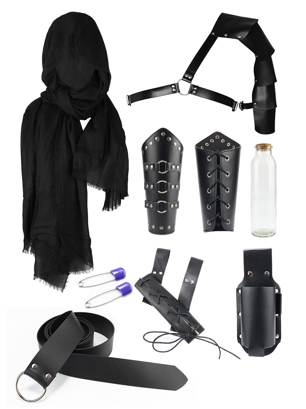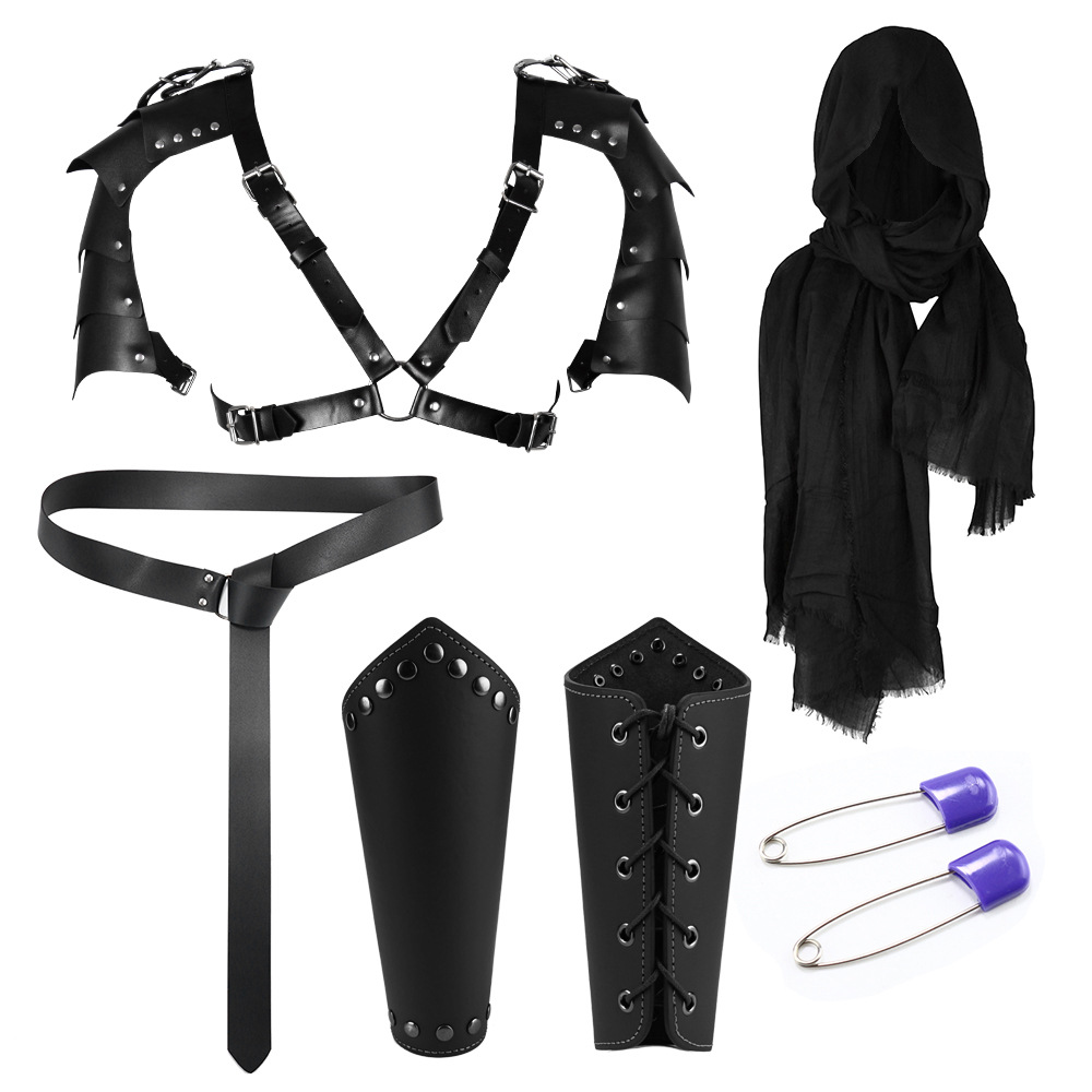 ct015bk eight-piece set (scarf +1 pair of wristlets + shoulder straps + belt + sword scabbard + bottle bag + long bottle +2 pins)
