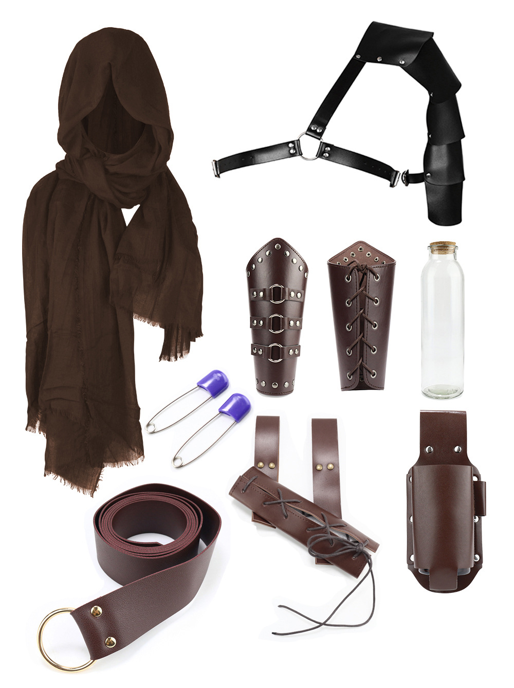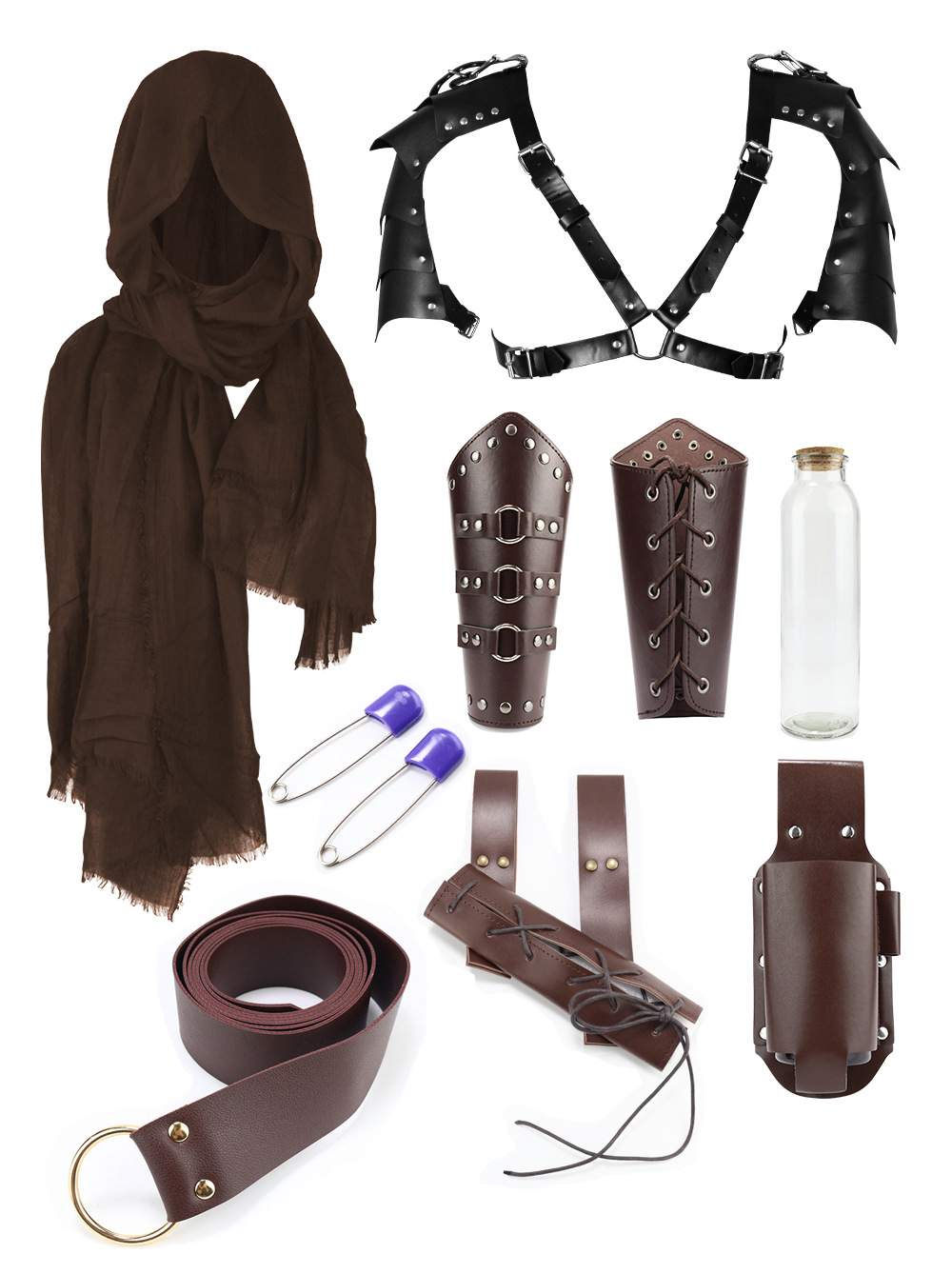 ct014br eight-piece set (scarf +1 pair of wristlets + single shoulder bag + belt + sword scabbard + bottle bag + long bottle holder +2 pins)