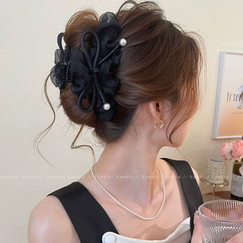 47# [black] mesh pearl 3d bow, approx. 13cm