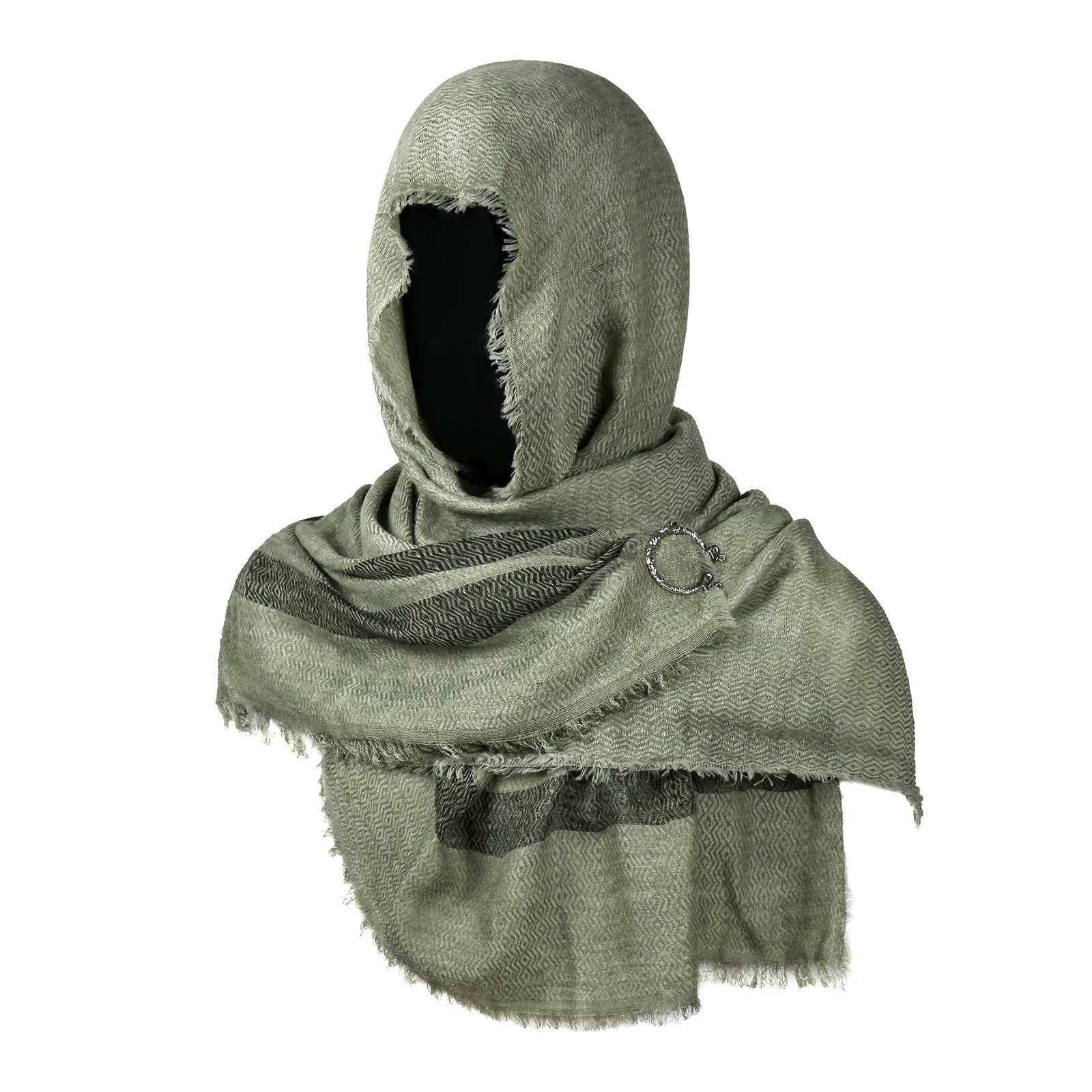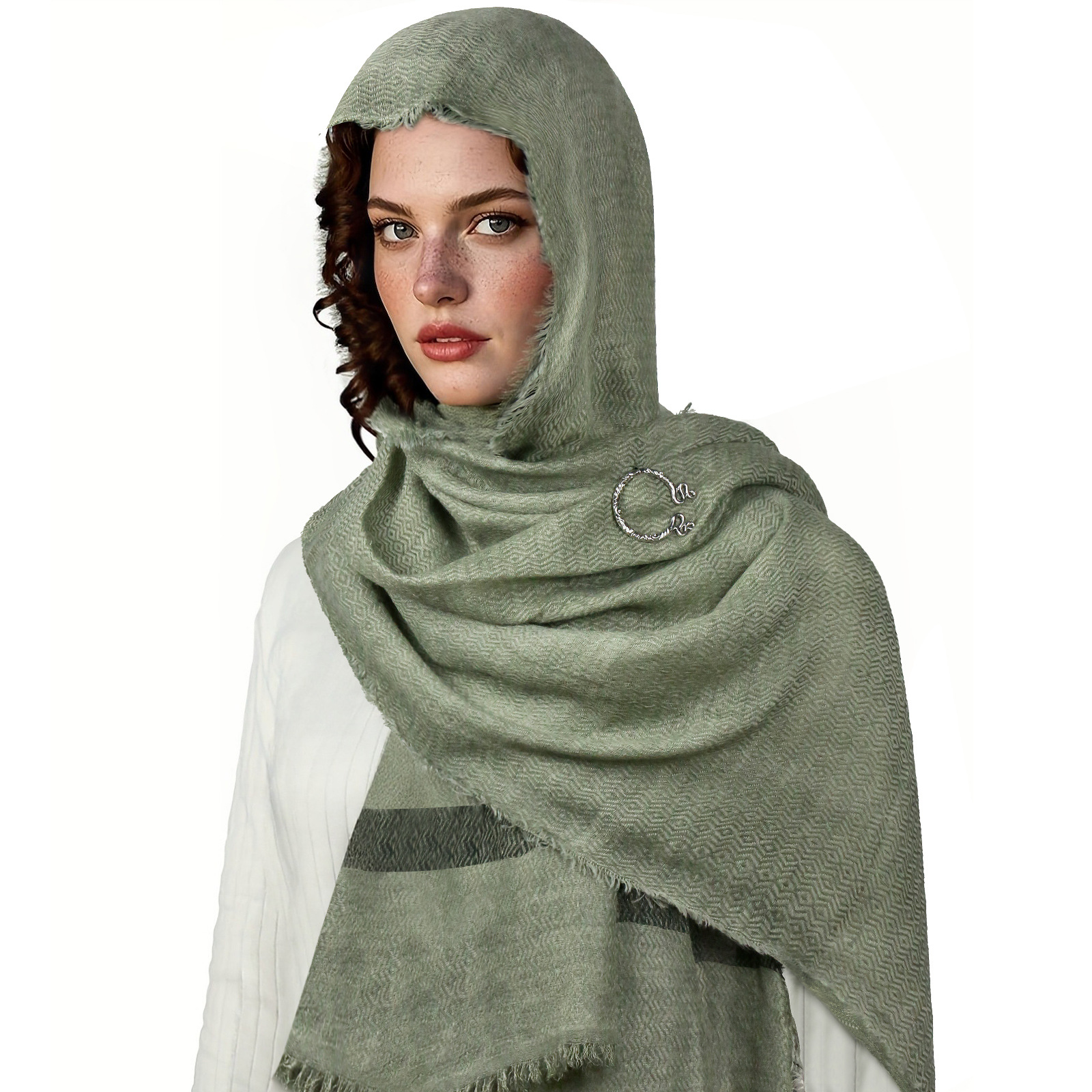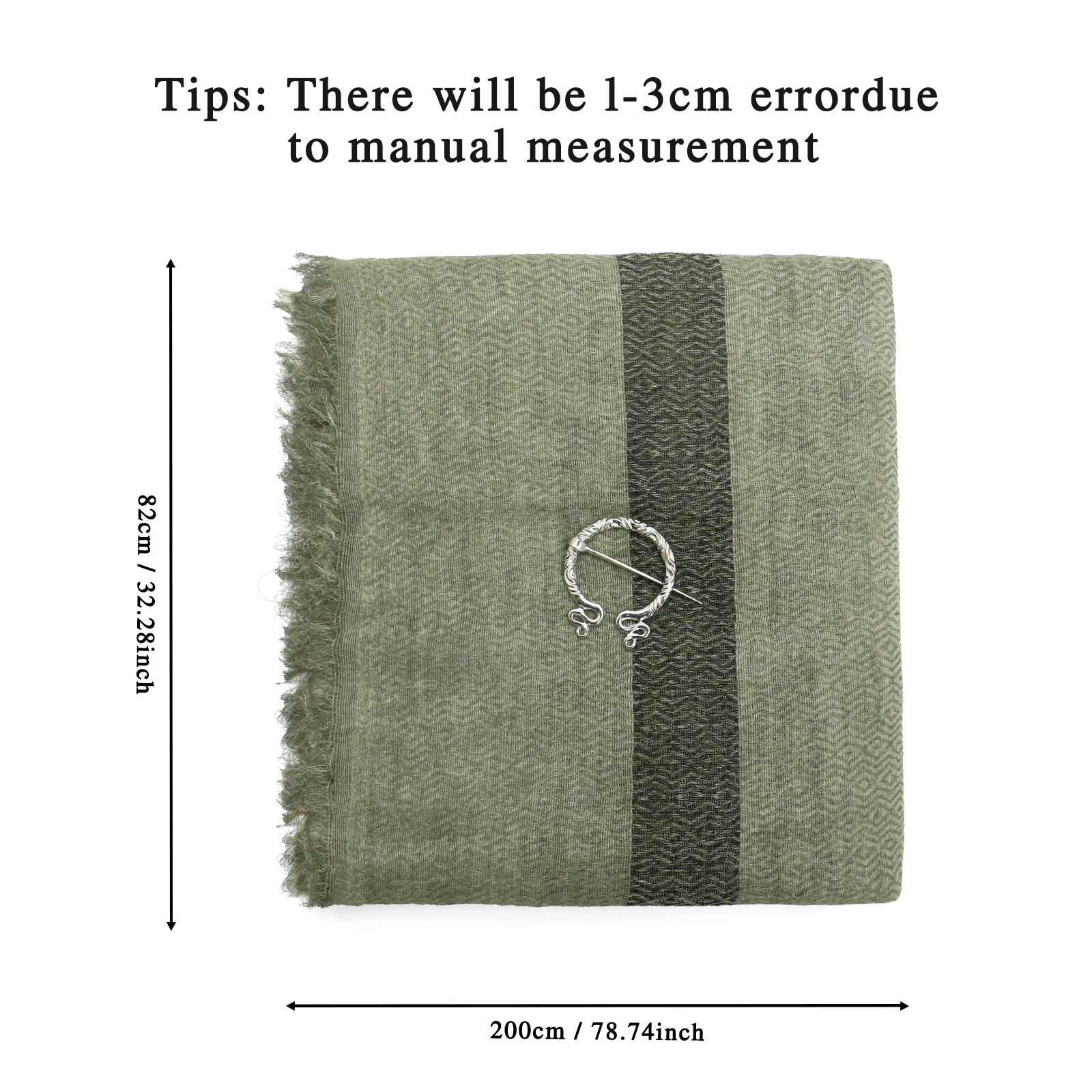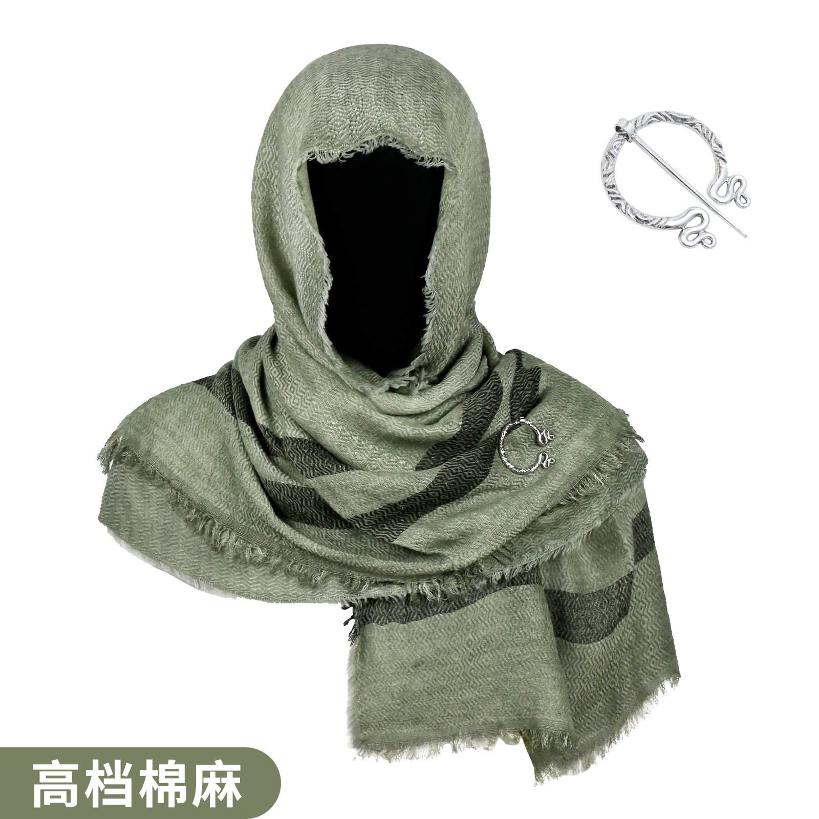 cst115gn green cotton and linen scarf (200cm*80cm) + brooch +2 pins