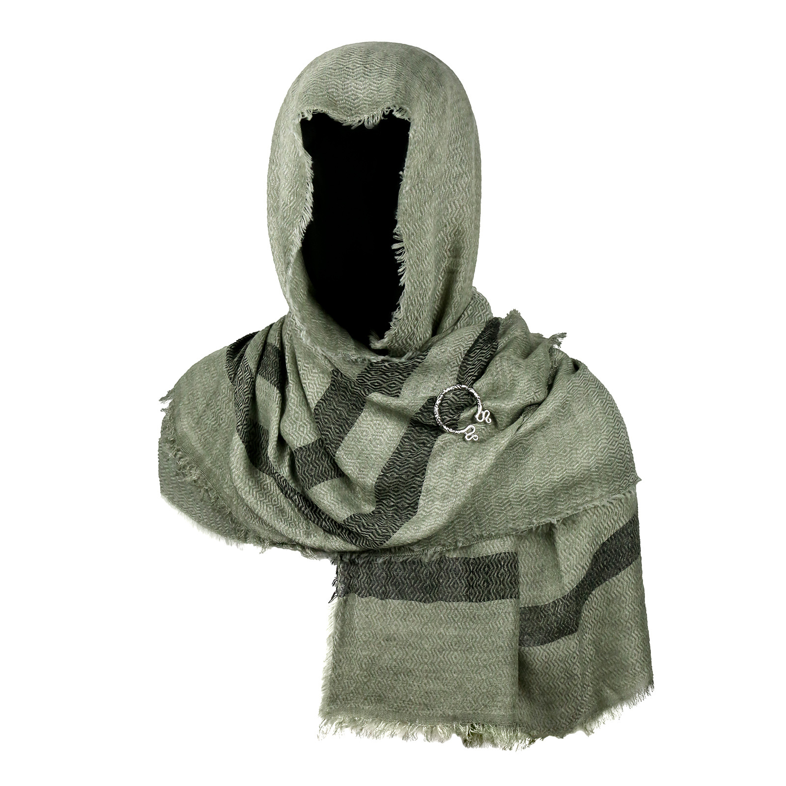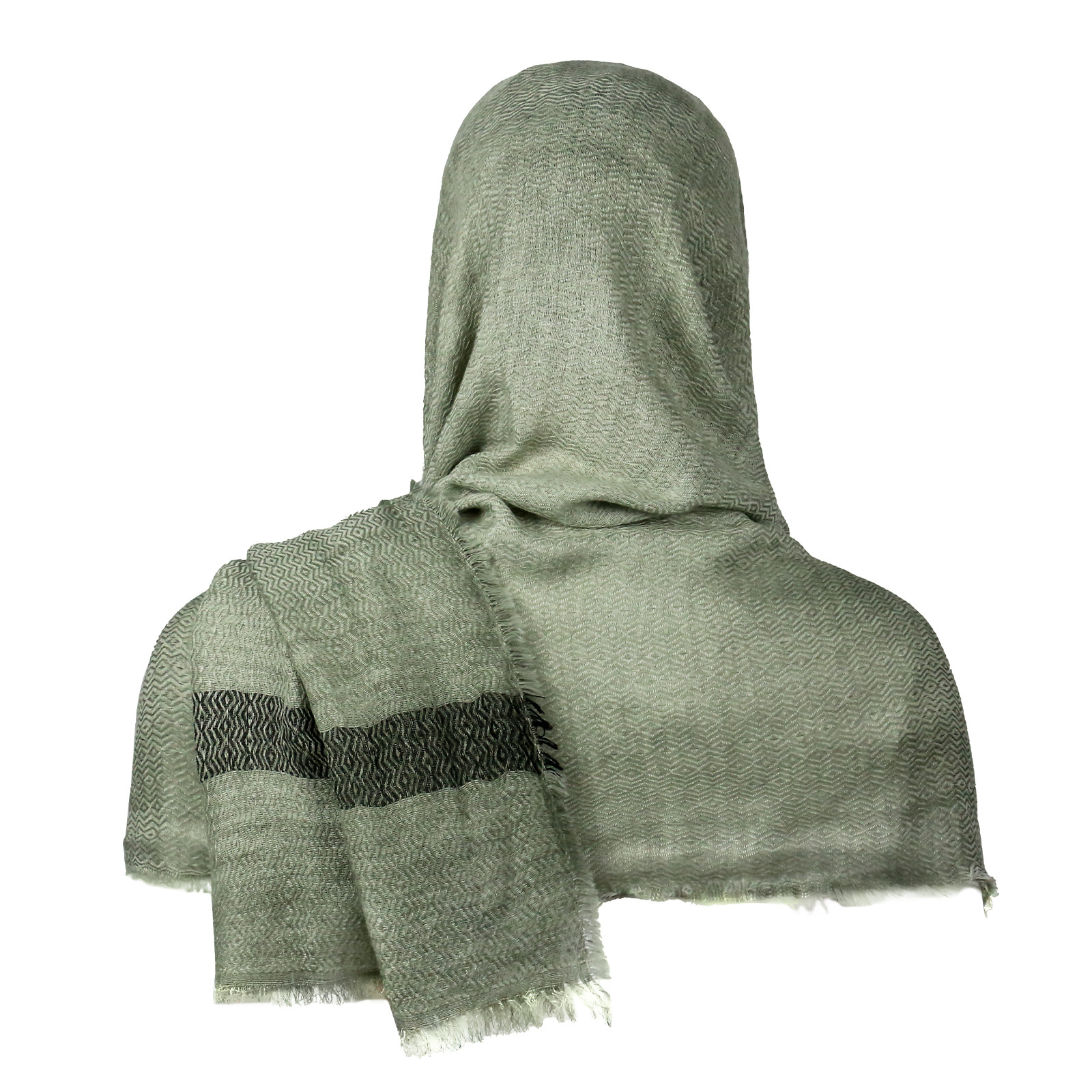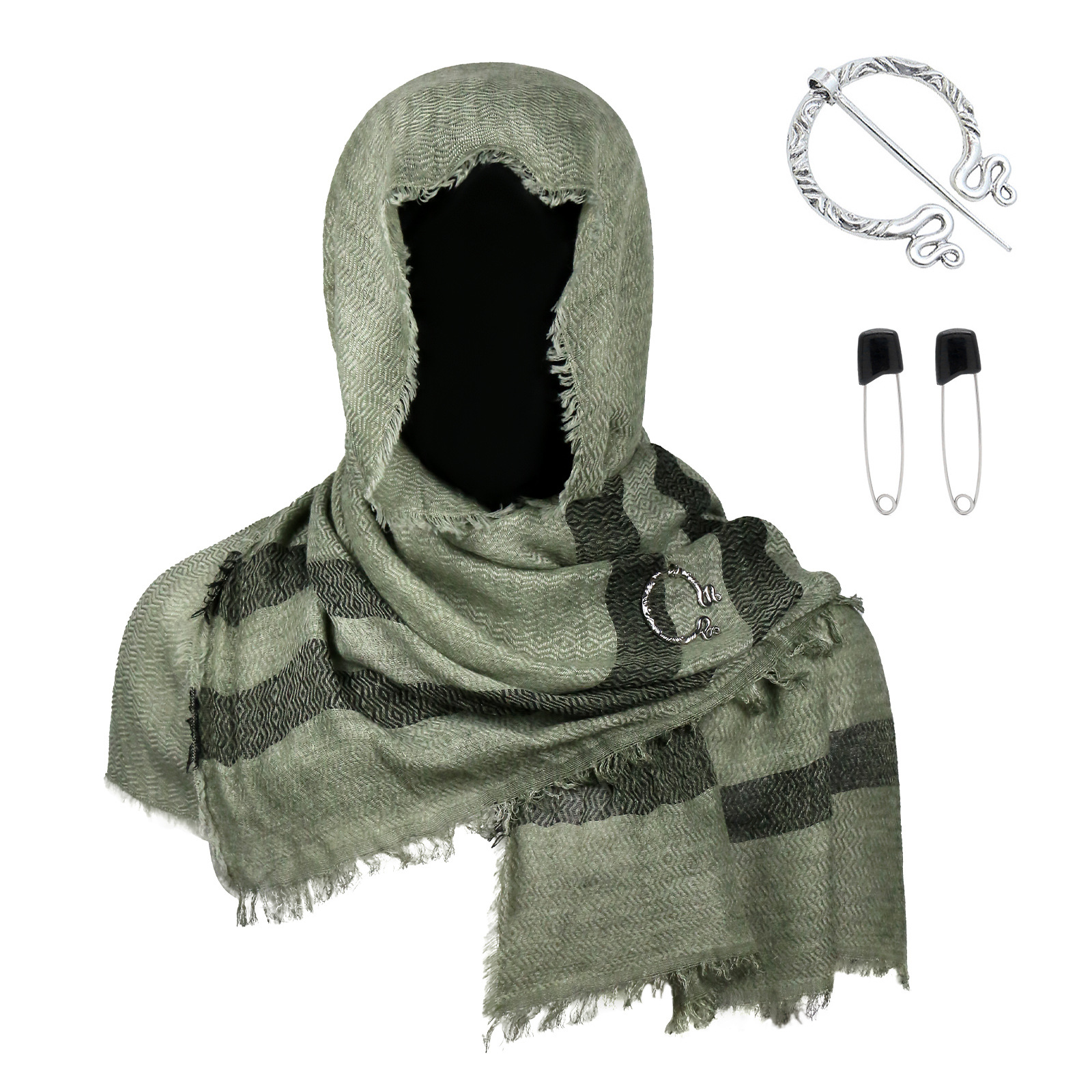 cst115gn green cotton and linen scarf (200cm*80cm) + brooch +2 pins
