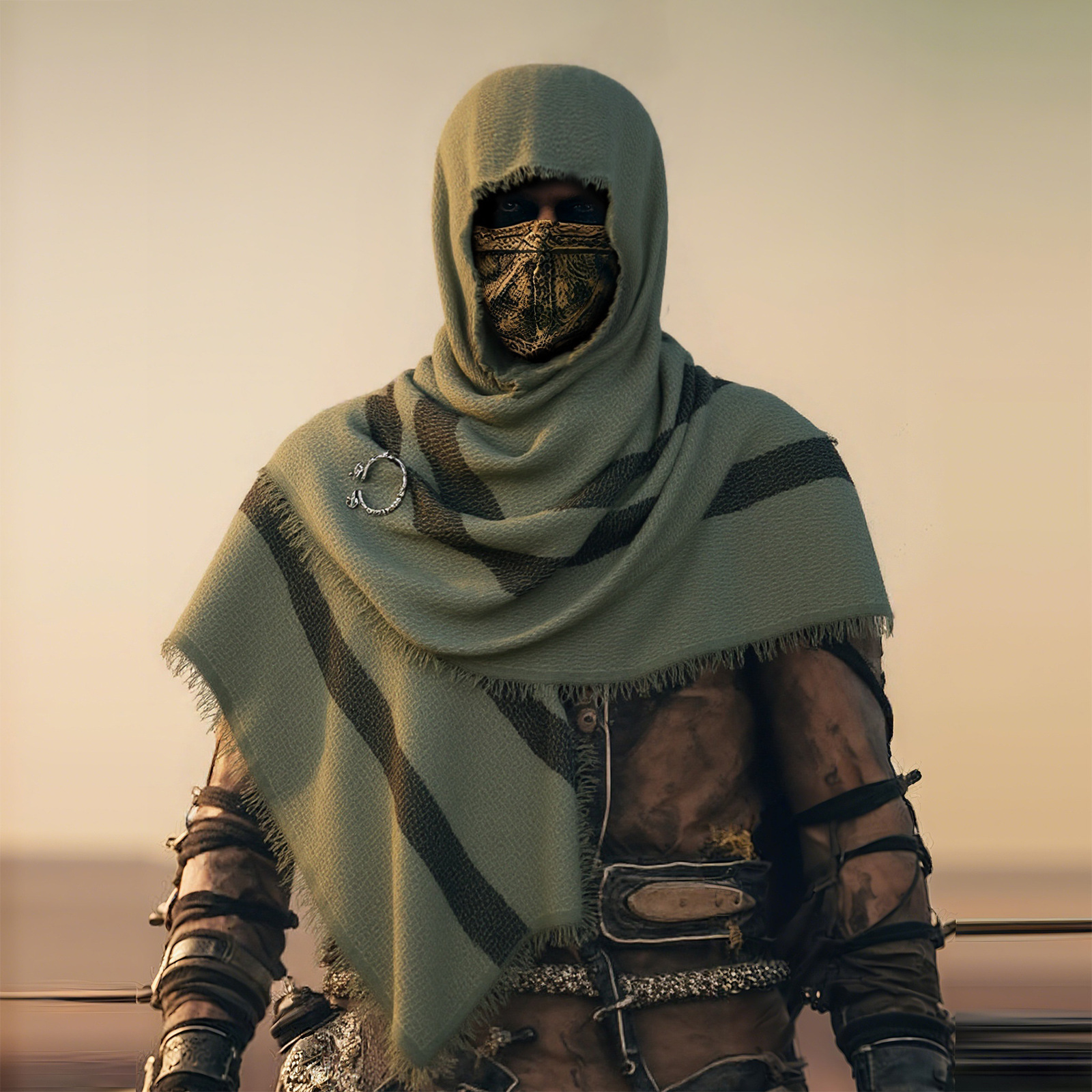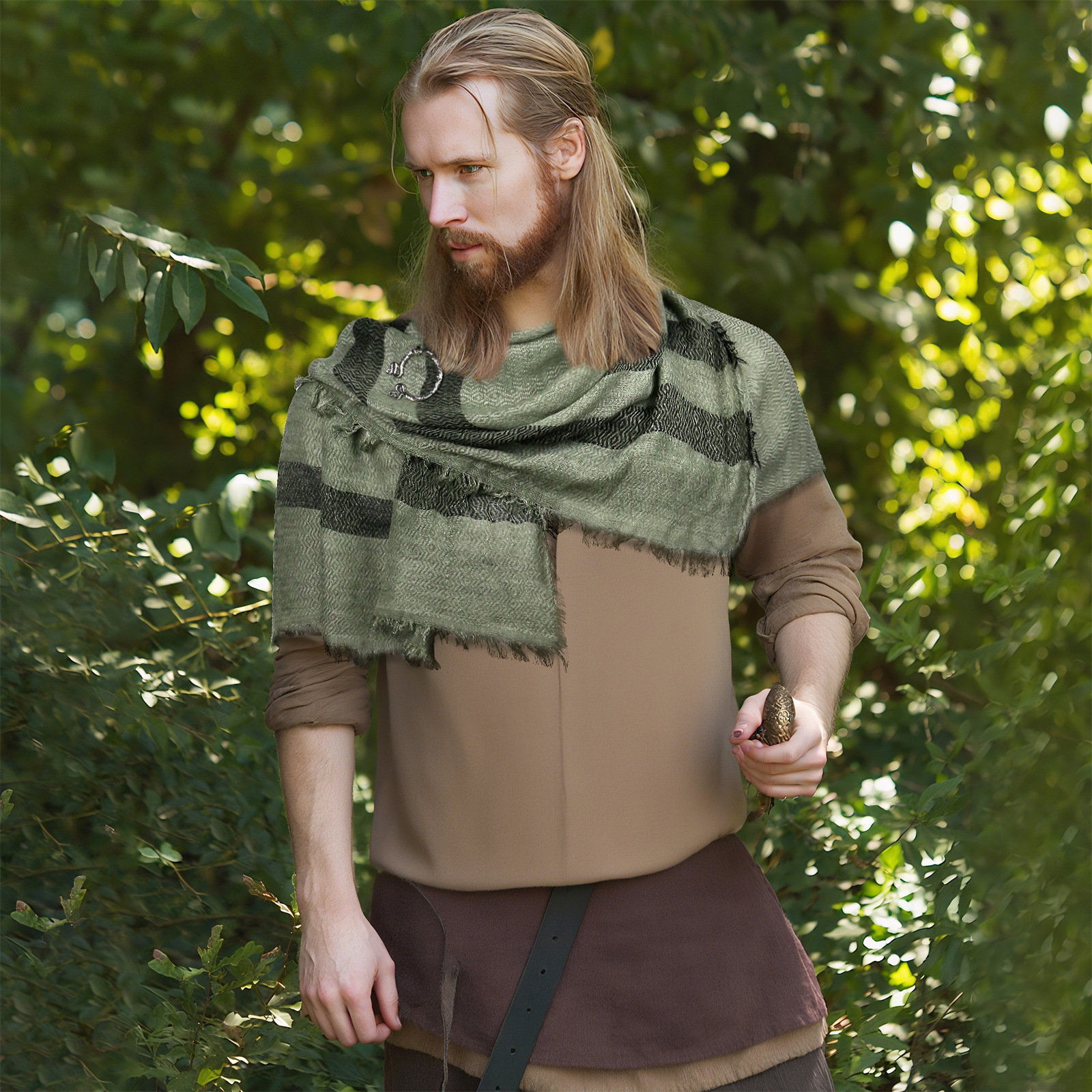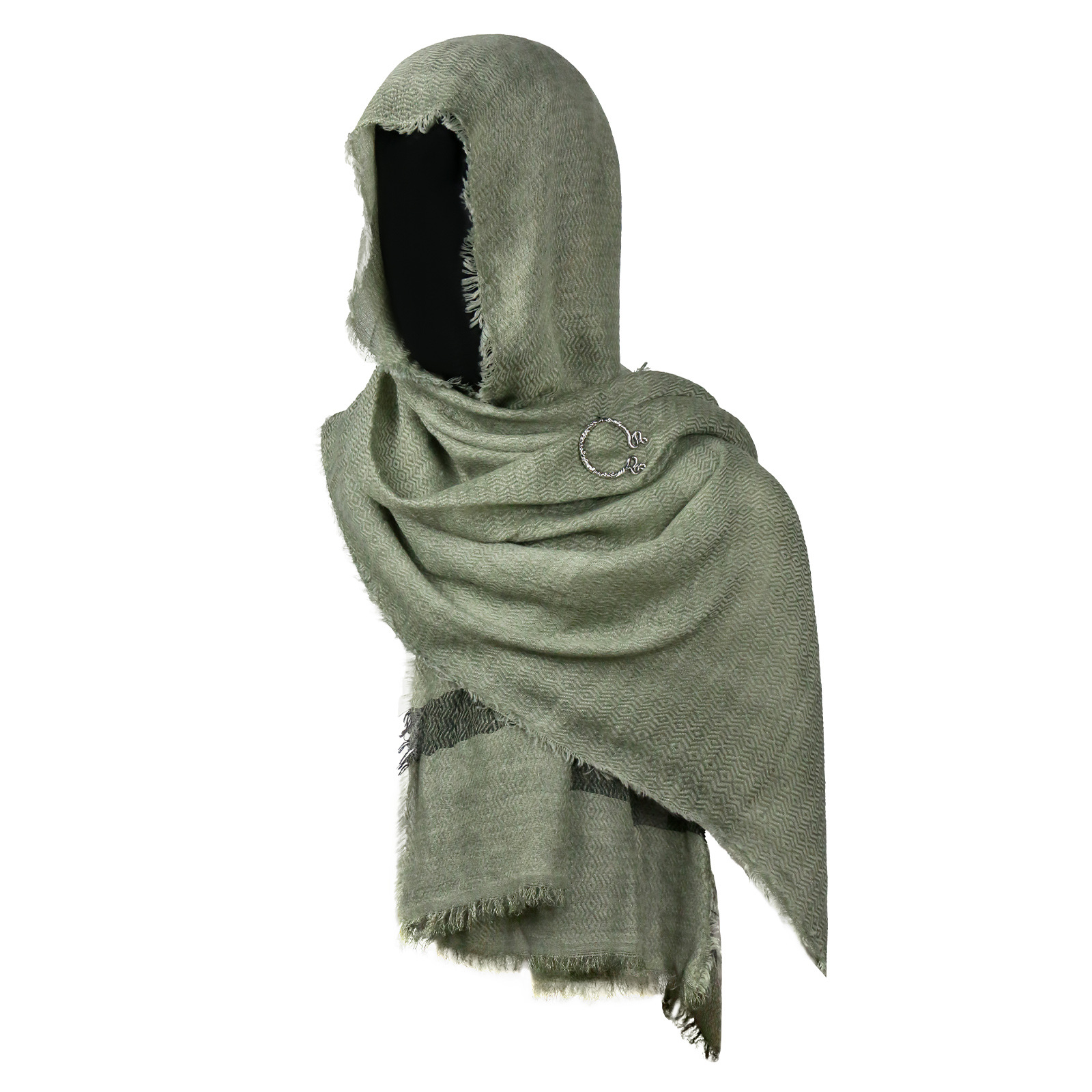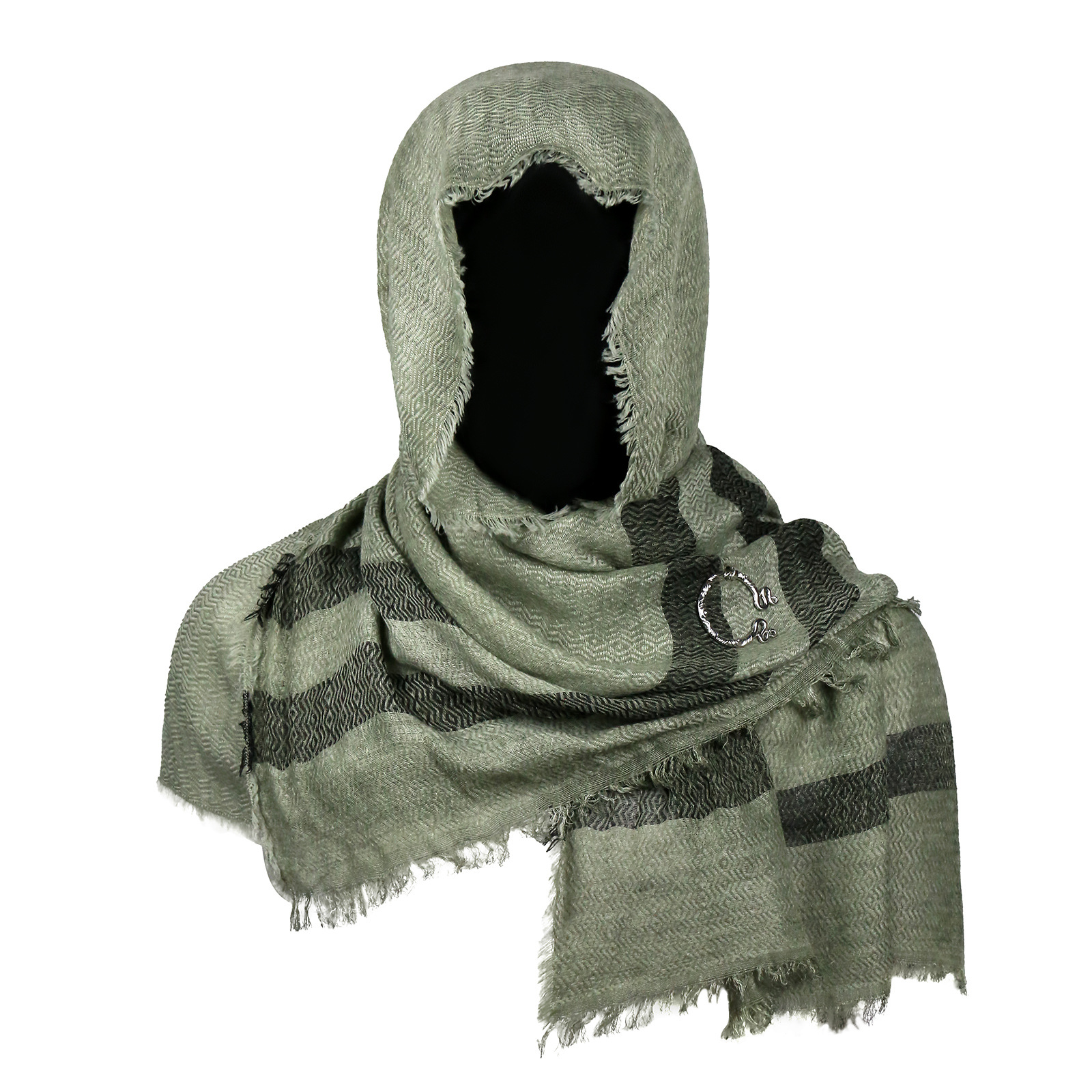 cst115gn green cotton and linen scarf (200cm*80cm) + brooch +2 pins