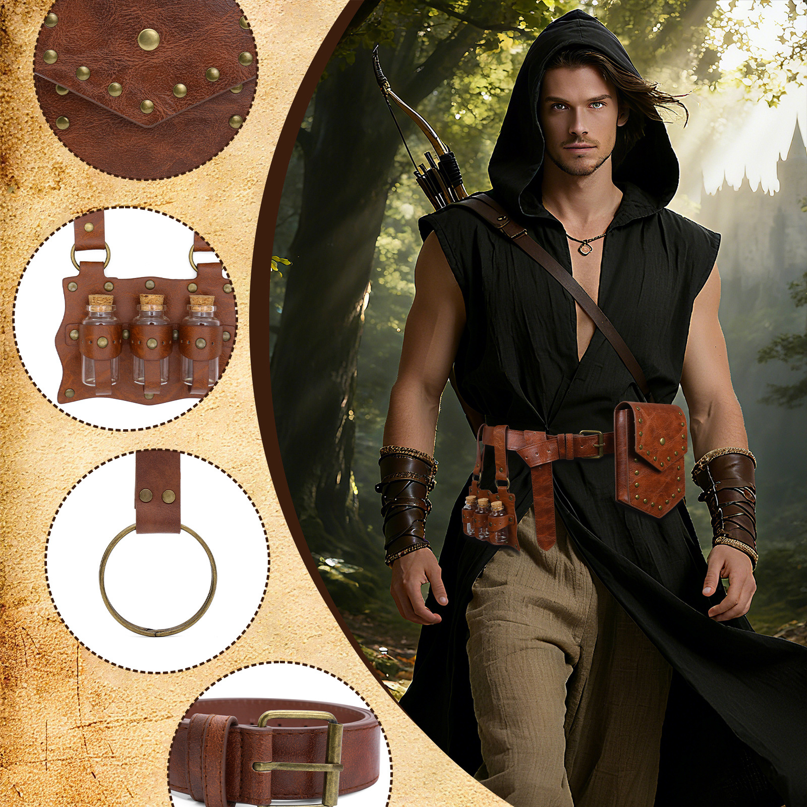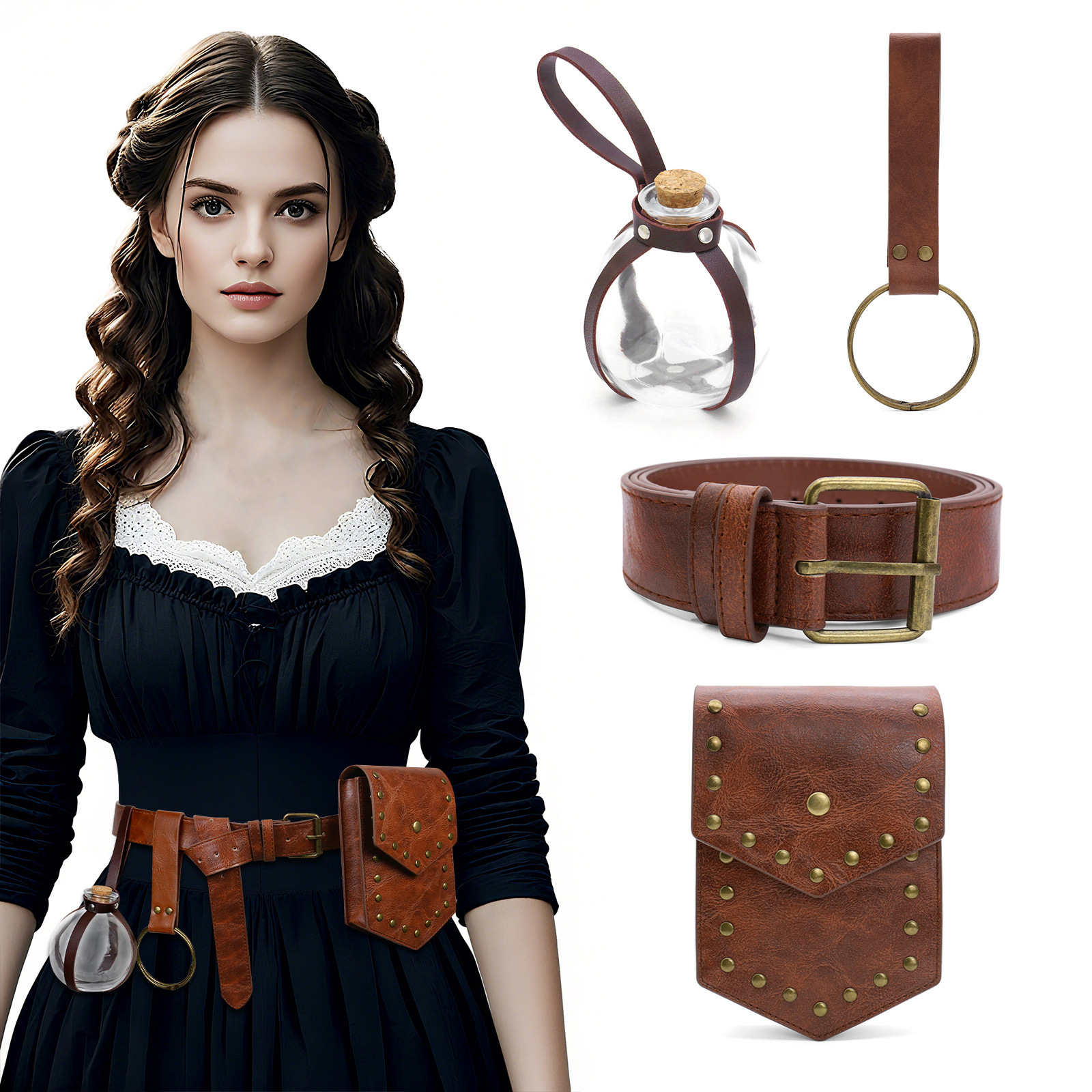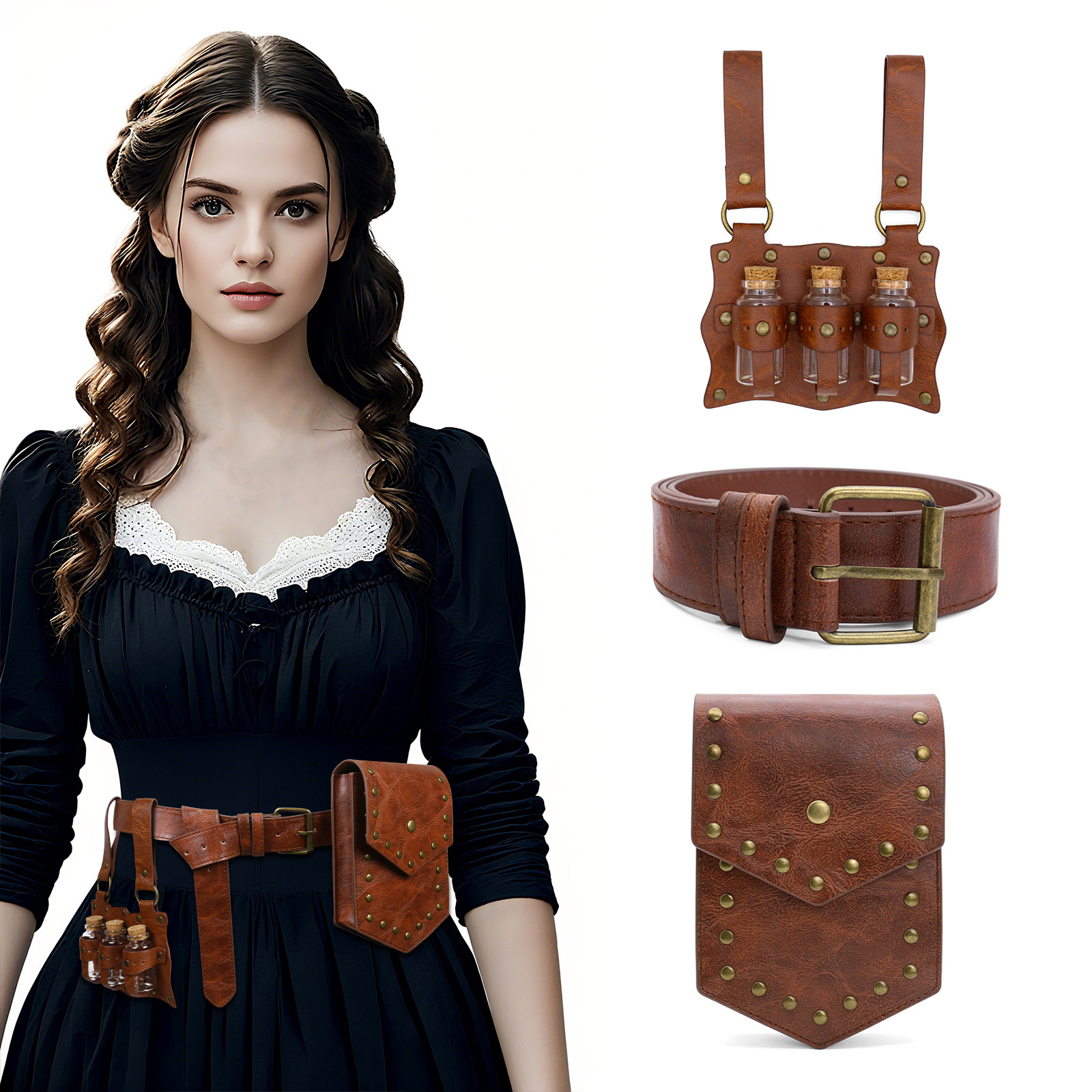 cst142 (brown belt + waist bag + three magic bottles)