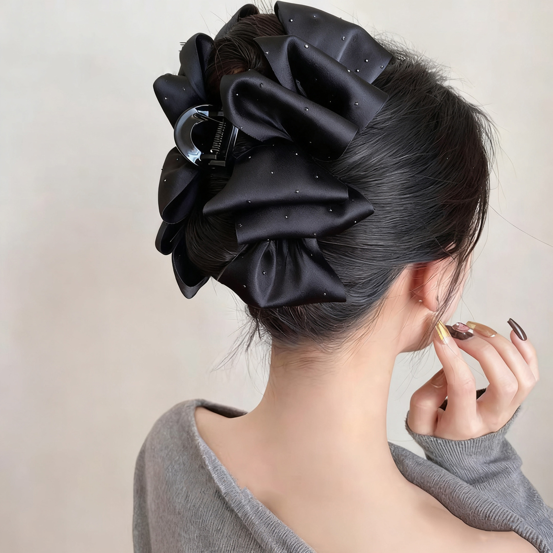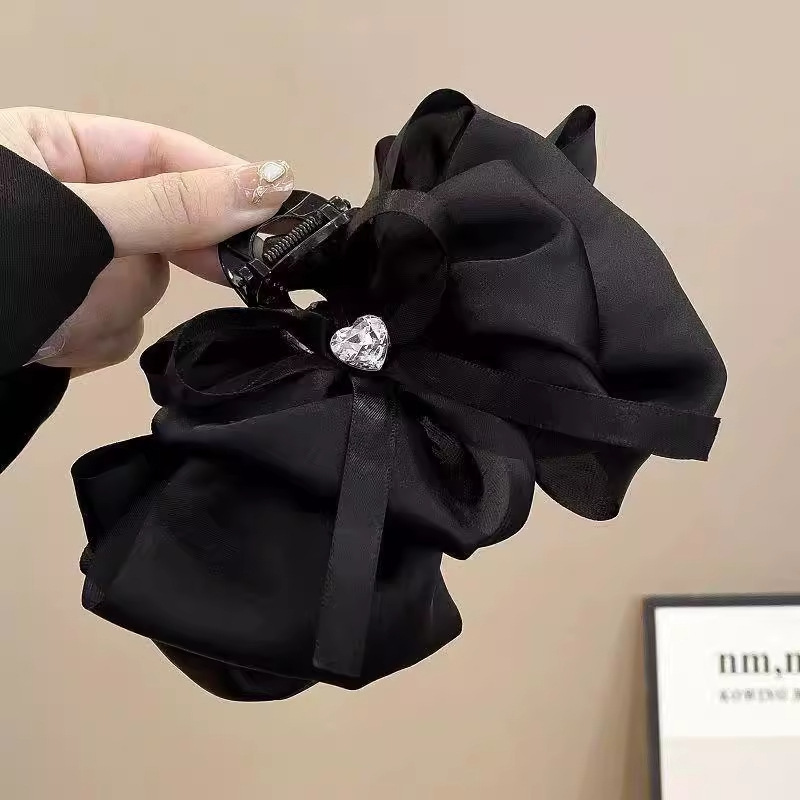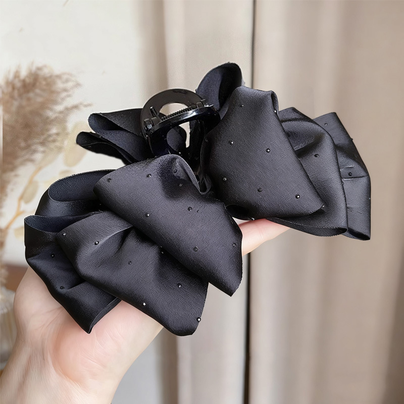 rhinestone-edged bow claw clip-black