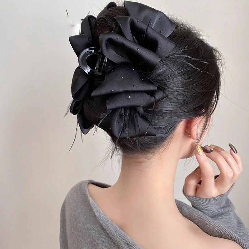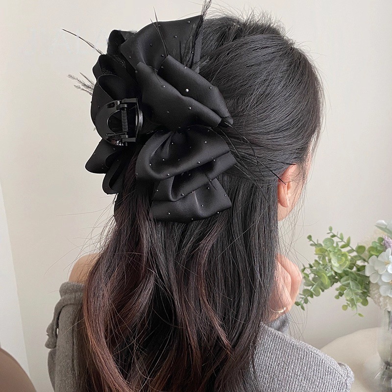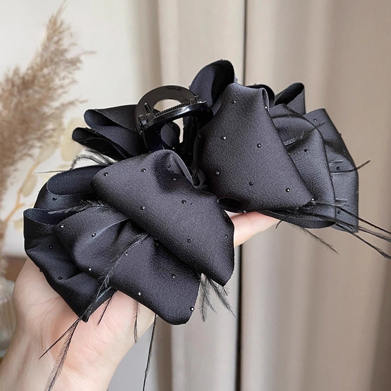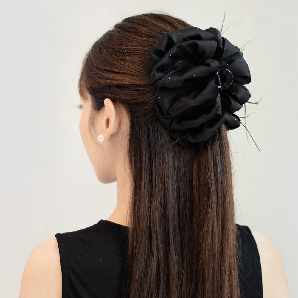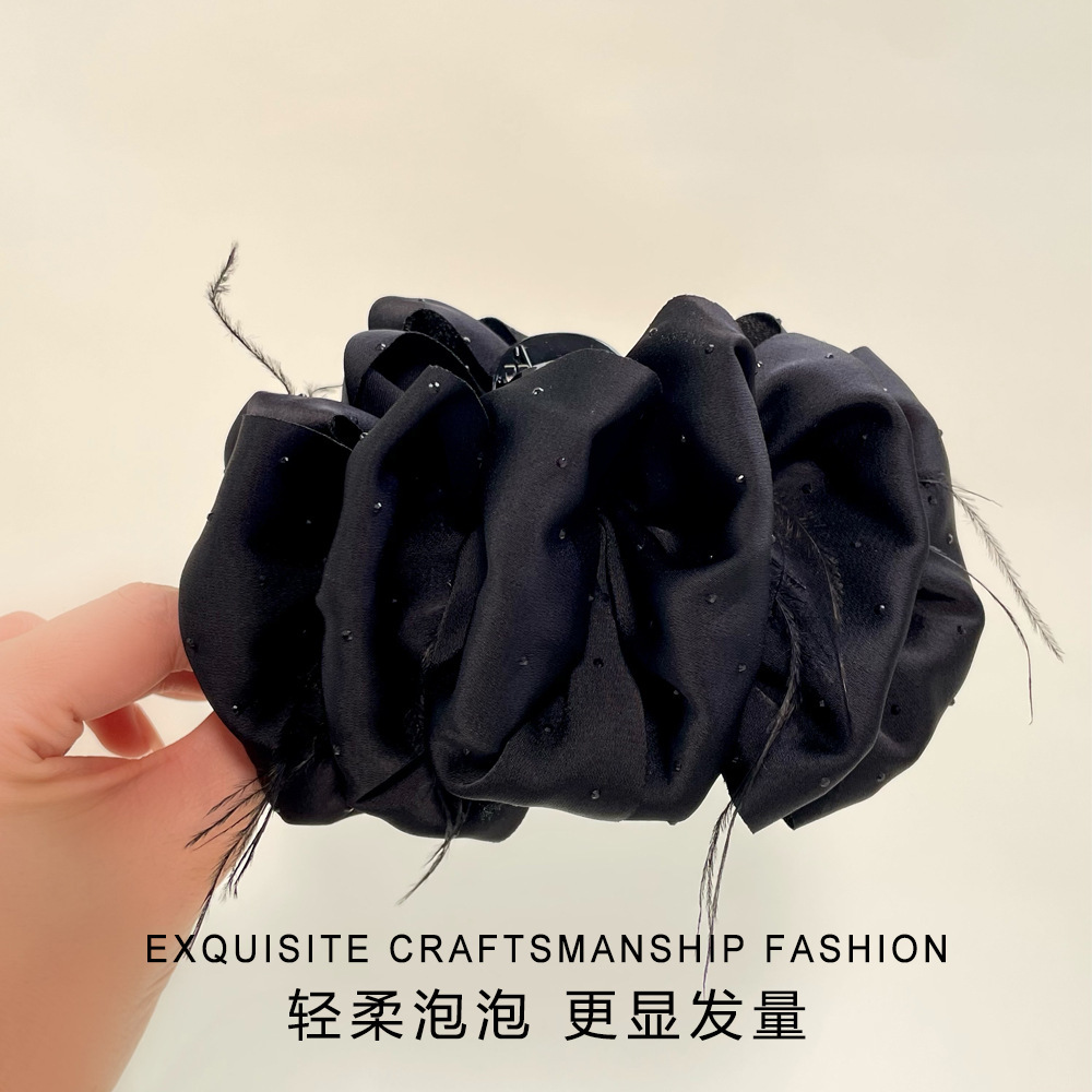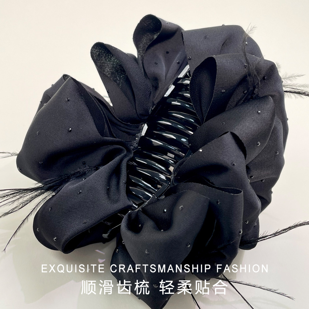 counter same style-original version 12cm fabric width ~ black diamond satin feather bubble grip hair clip 13cm bottom clip