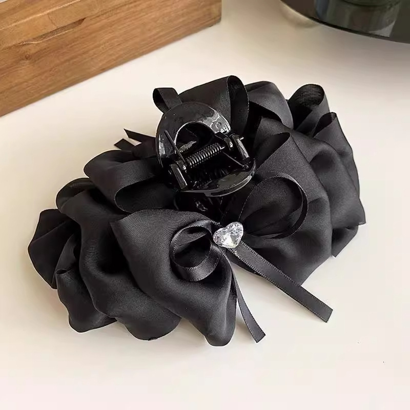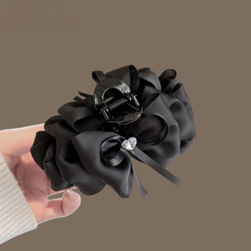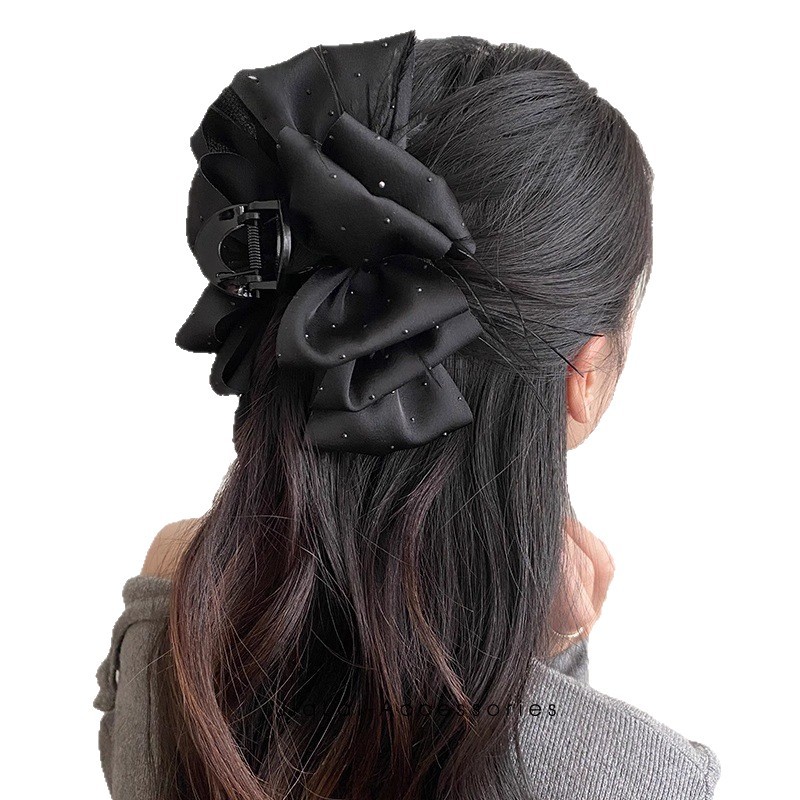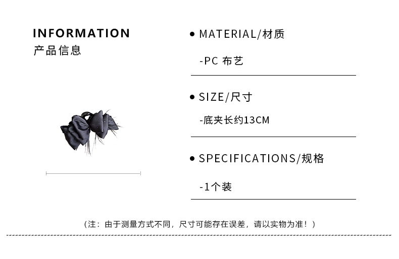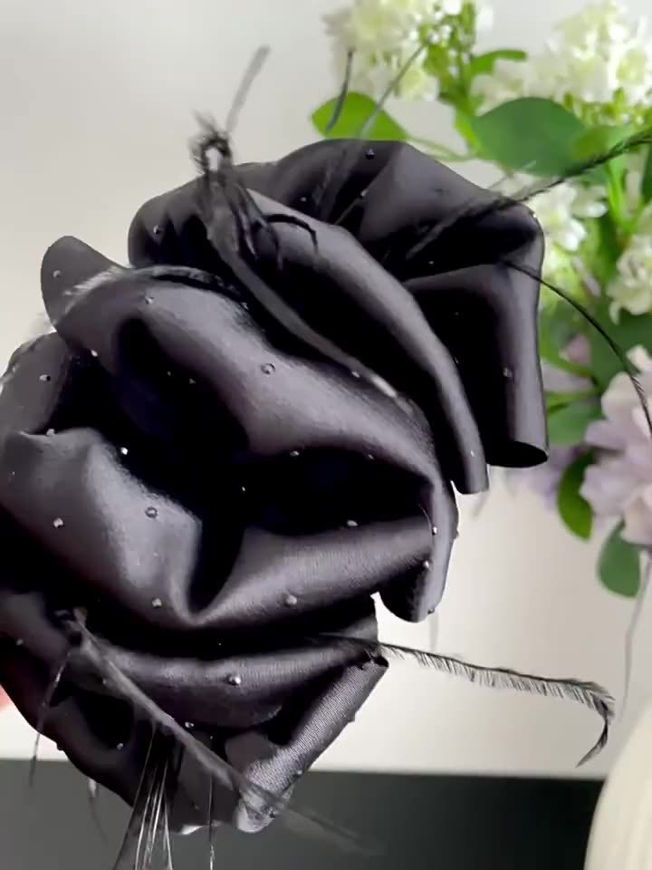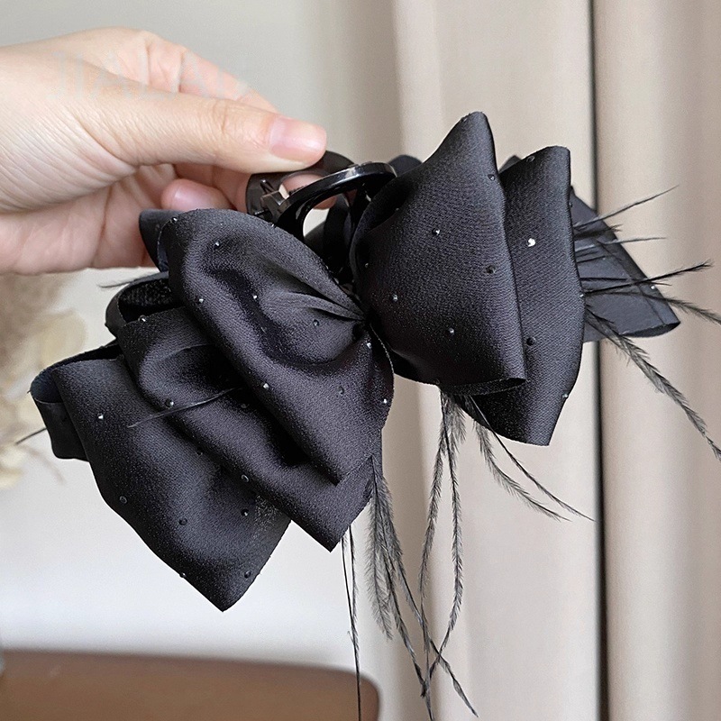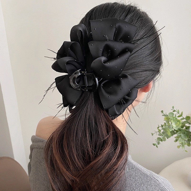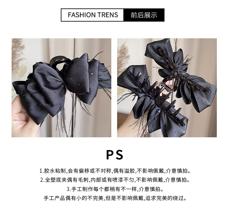 counter same style-original version 12cm fabric width ~ black diamond satin feather bubble grip hair clip 13cm bottom clip