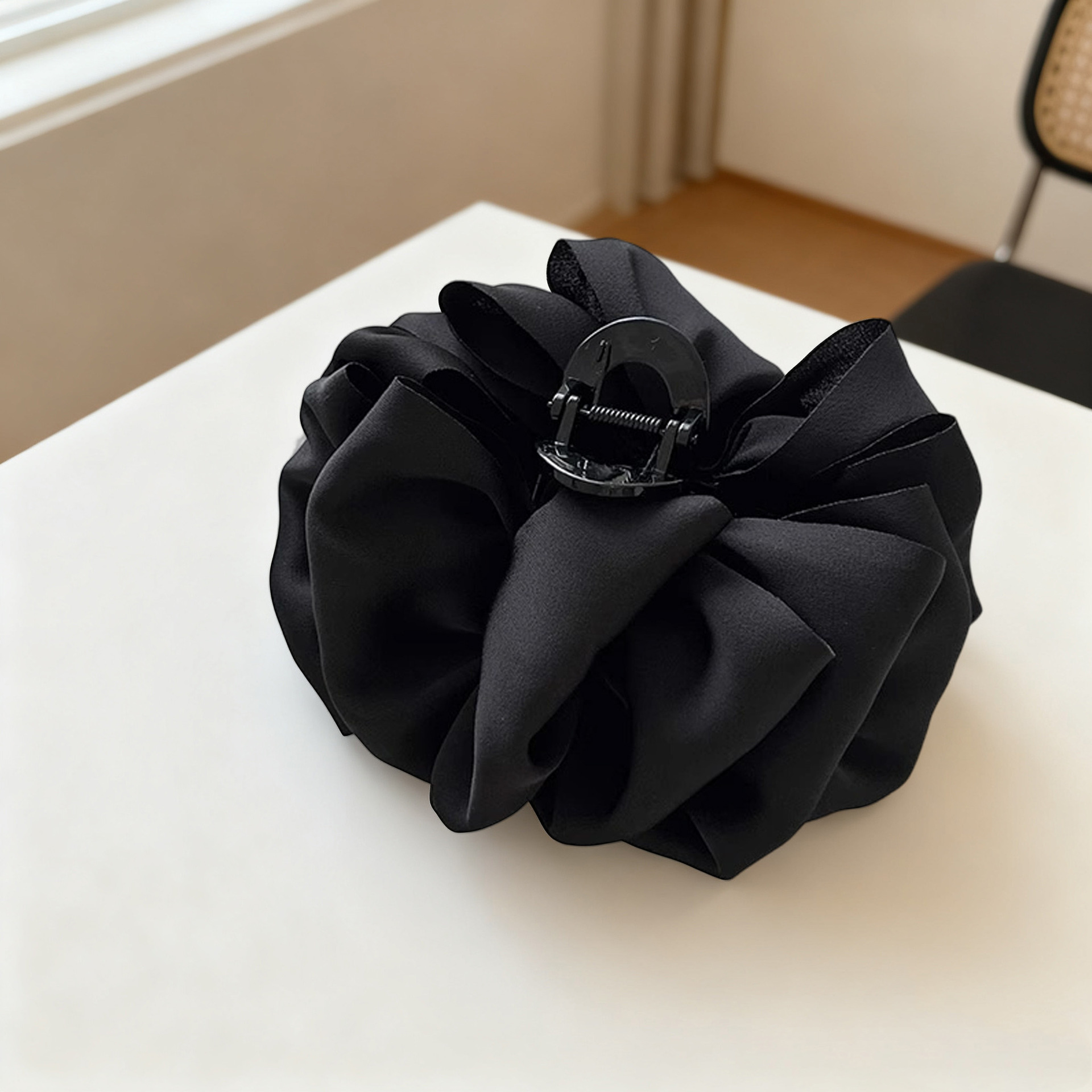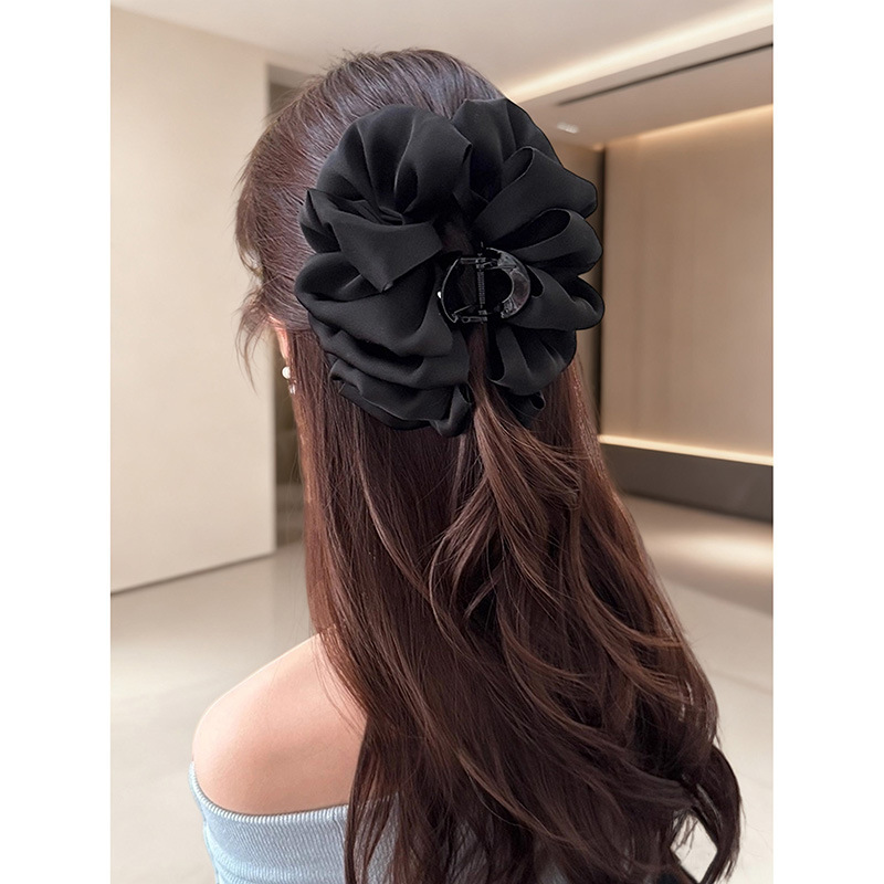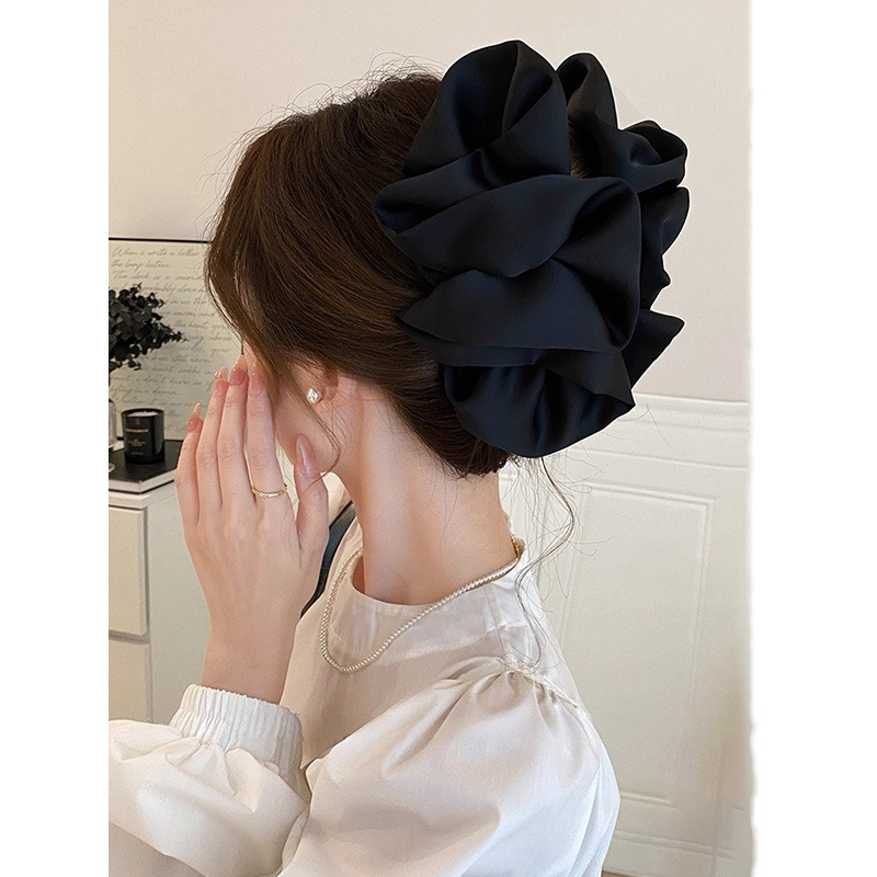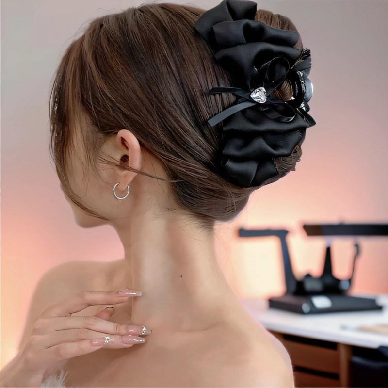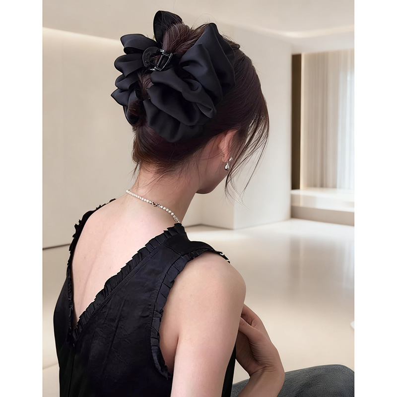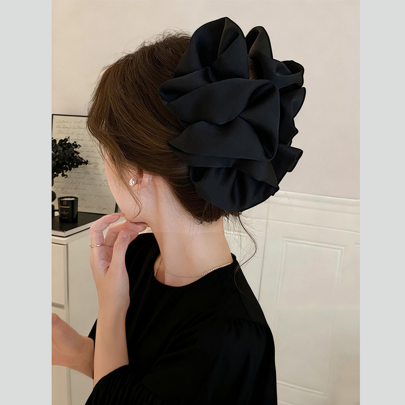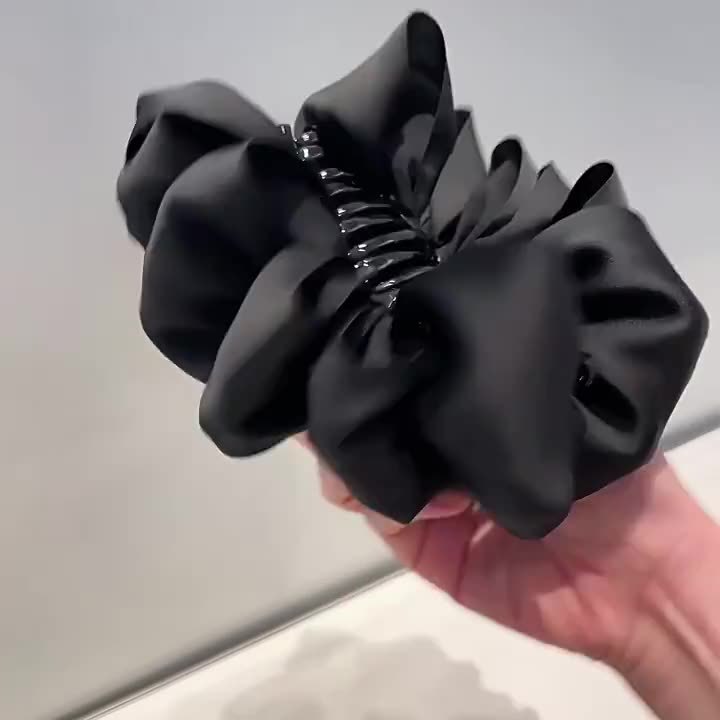 counter same style-original version 12cm fabric width ~ black diamond satin feather bubble grip hair clip 13cm bottom clip