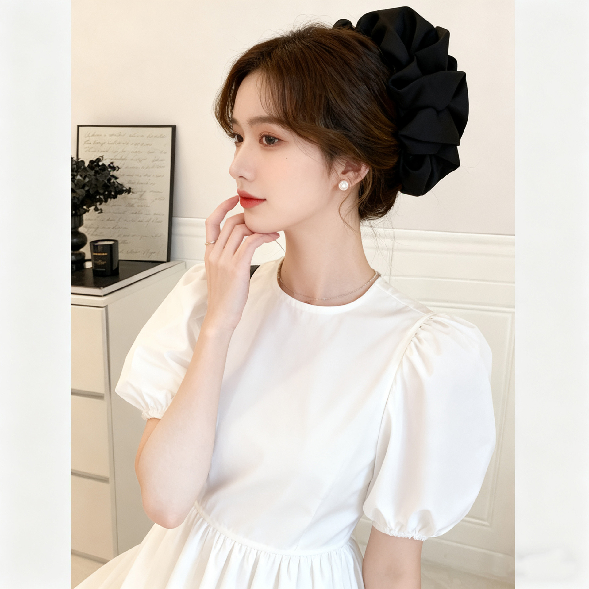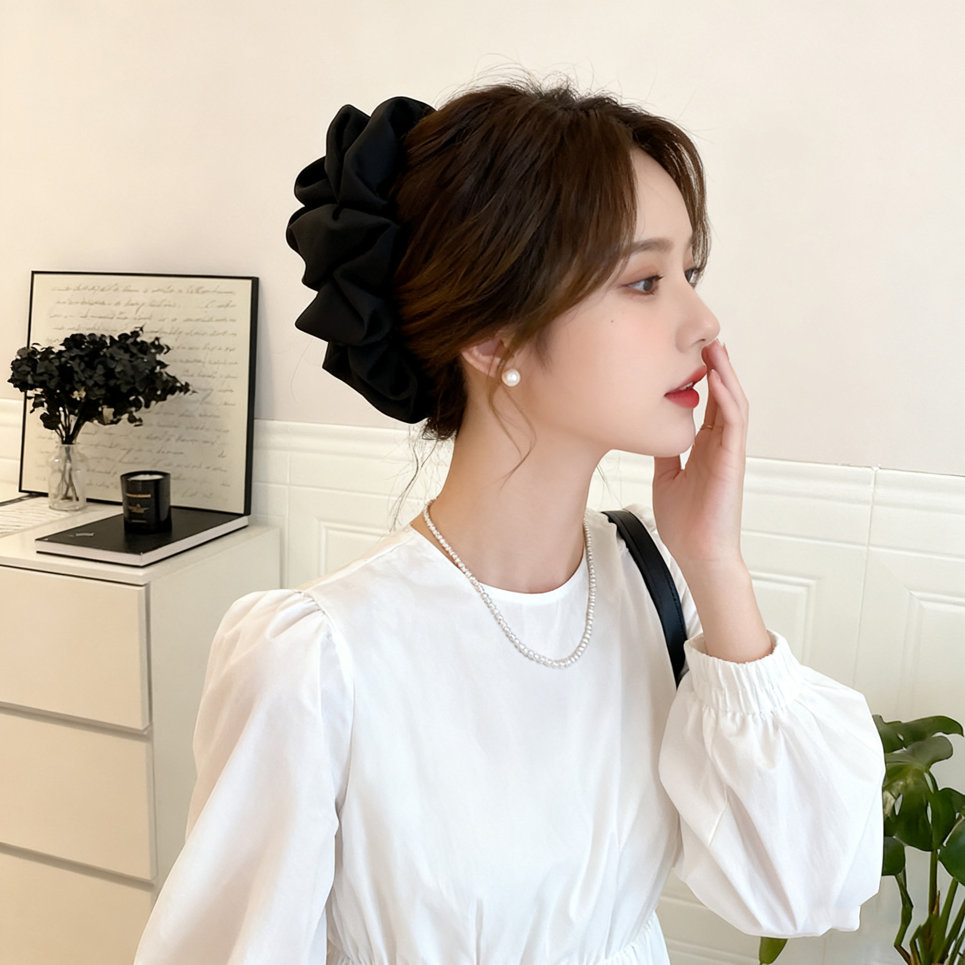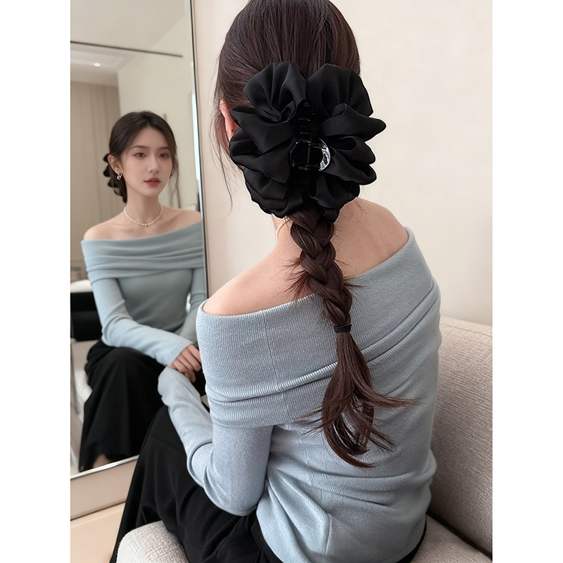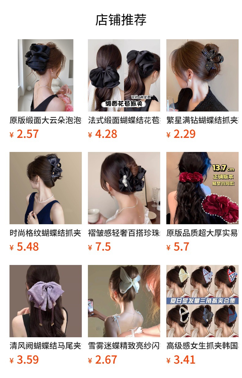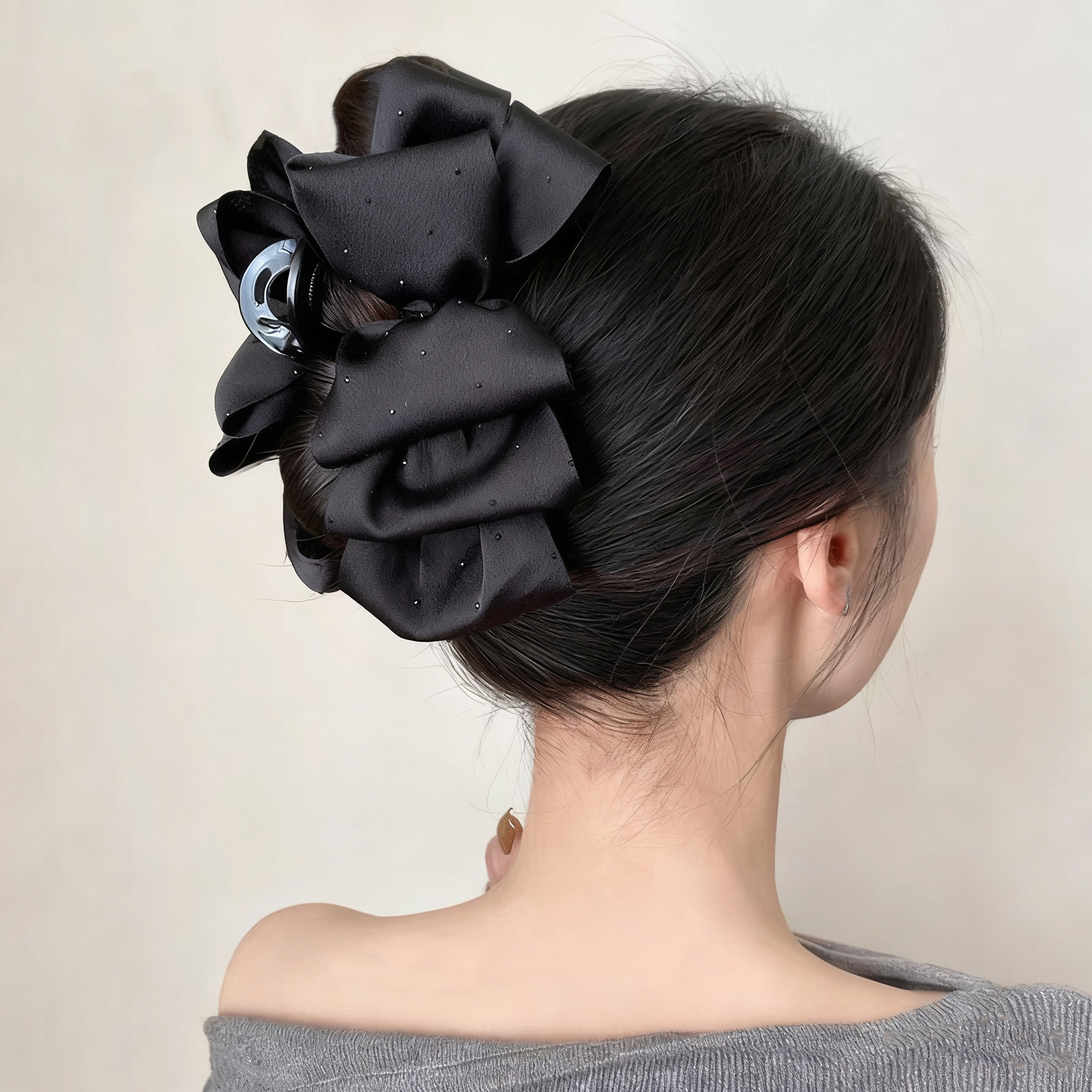 counter same style-original version 12cm fabric width ~ black diamond satin feather bubble grip hair clip 13cm bottom clip