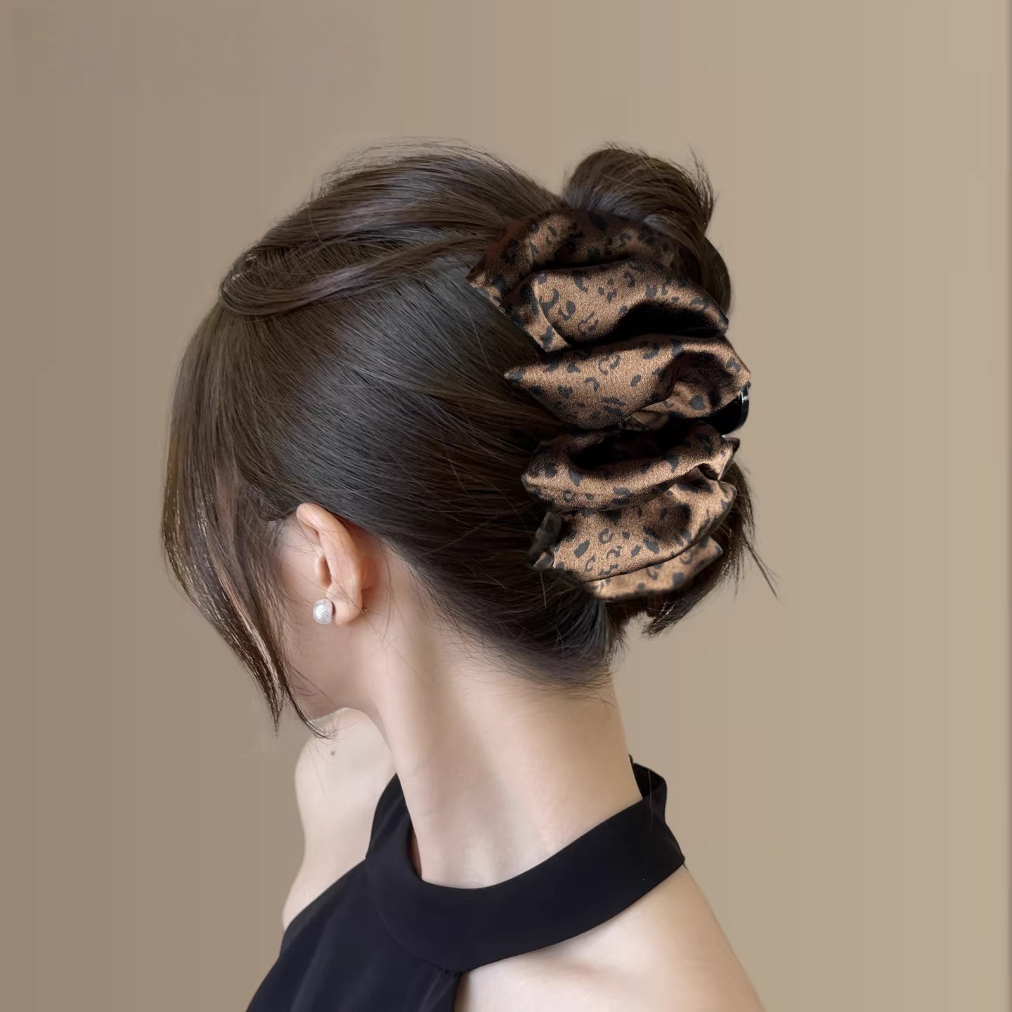 brown-satin leopard print grip