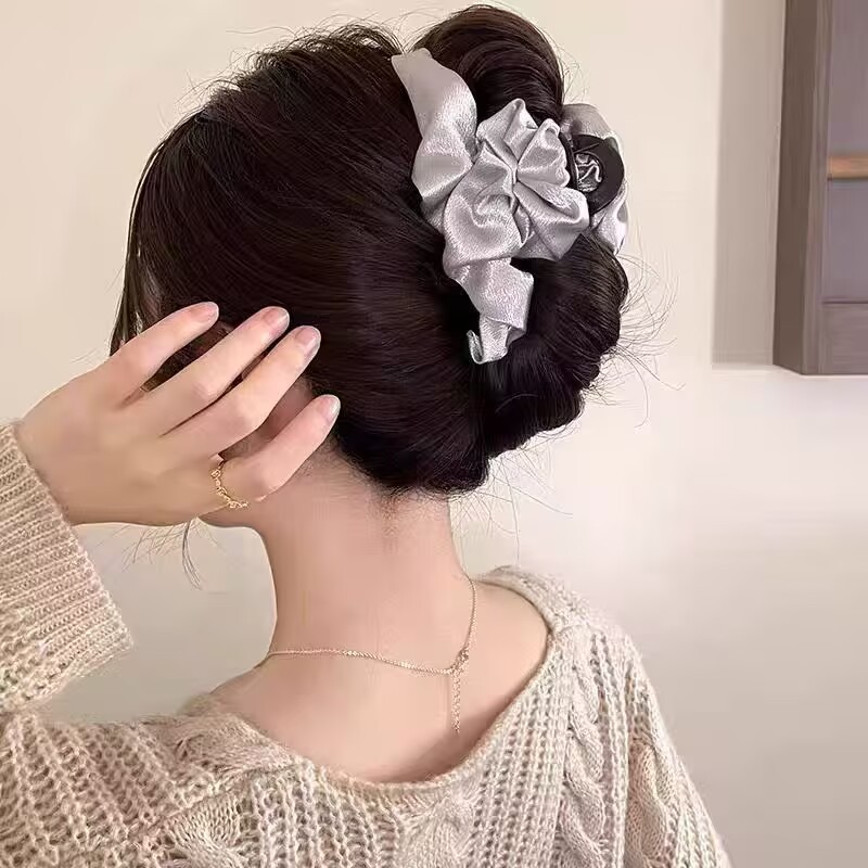 silver# pleated satin grip large (13cm)