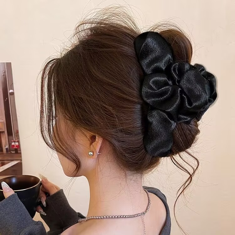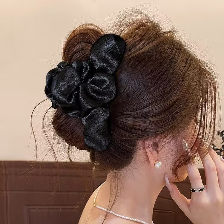 pleated satin grip large (13cm) black