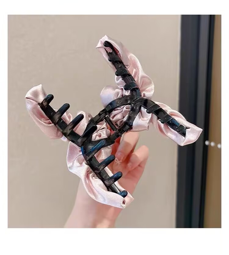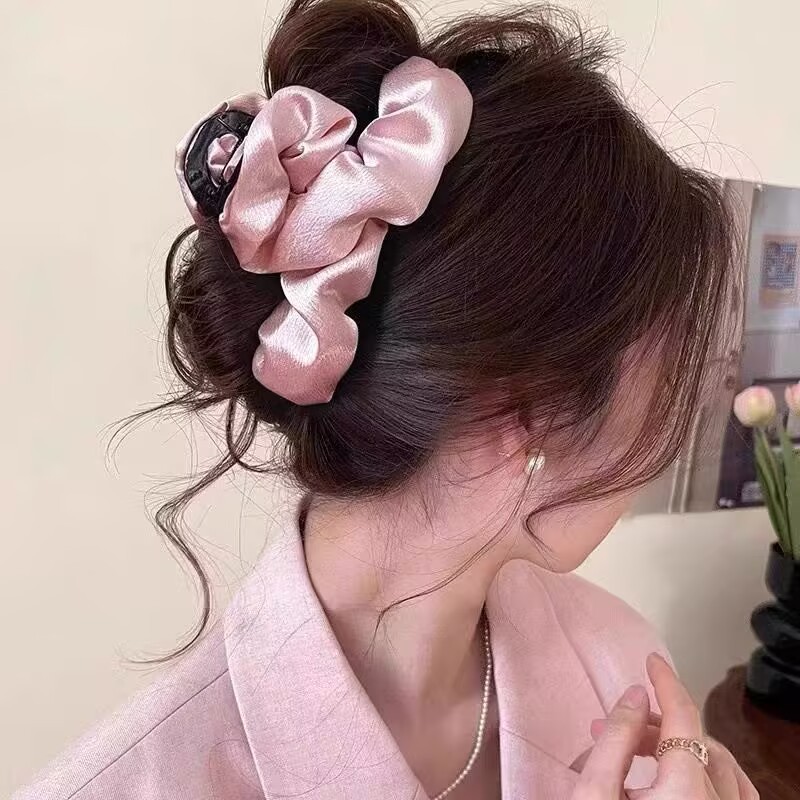 pink# pleated satin grip large (13cm)