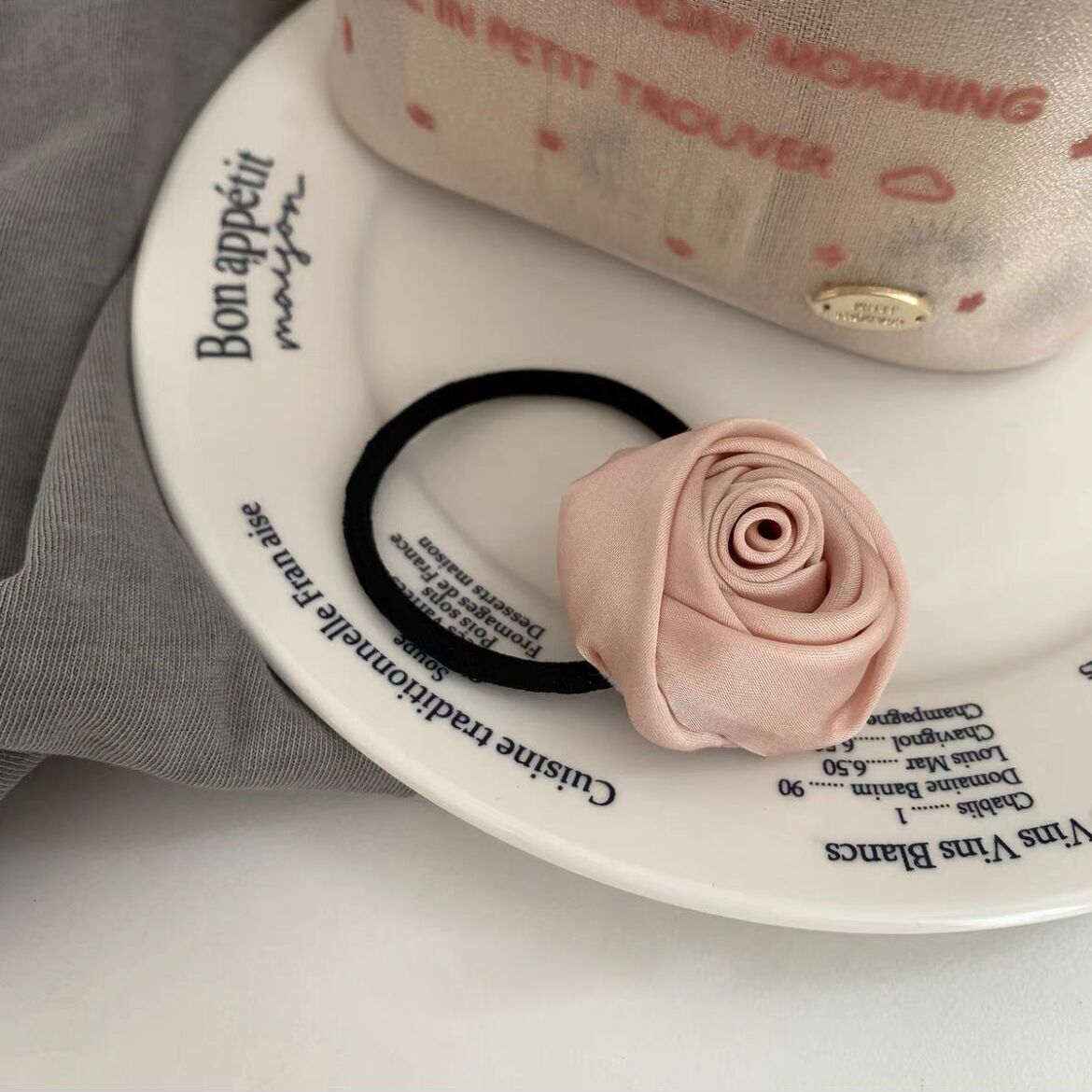 light pink rose hair tie