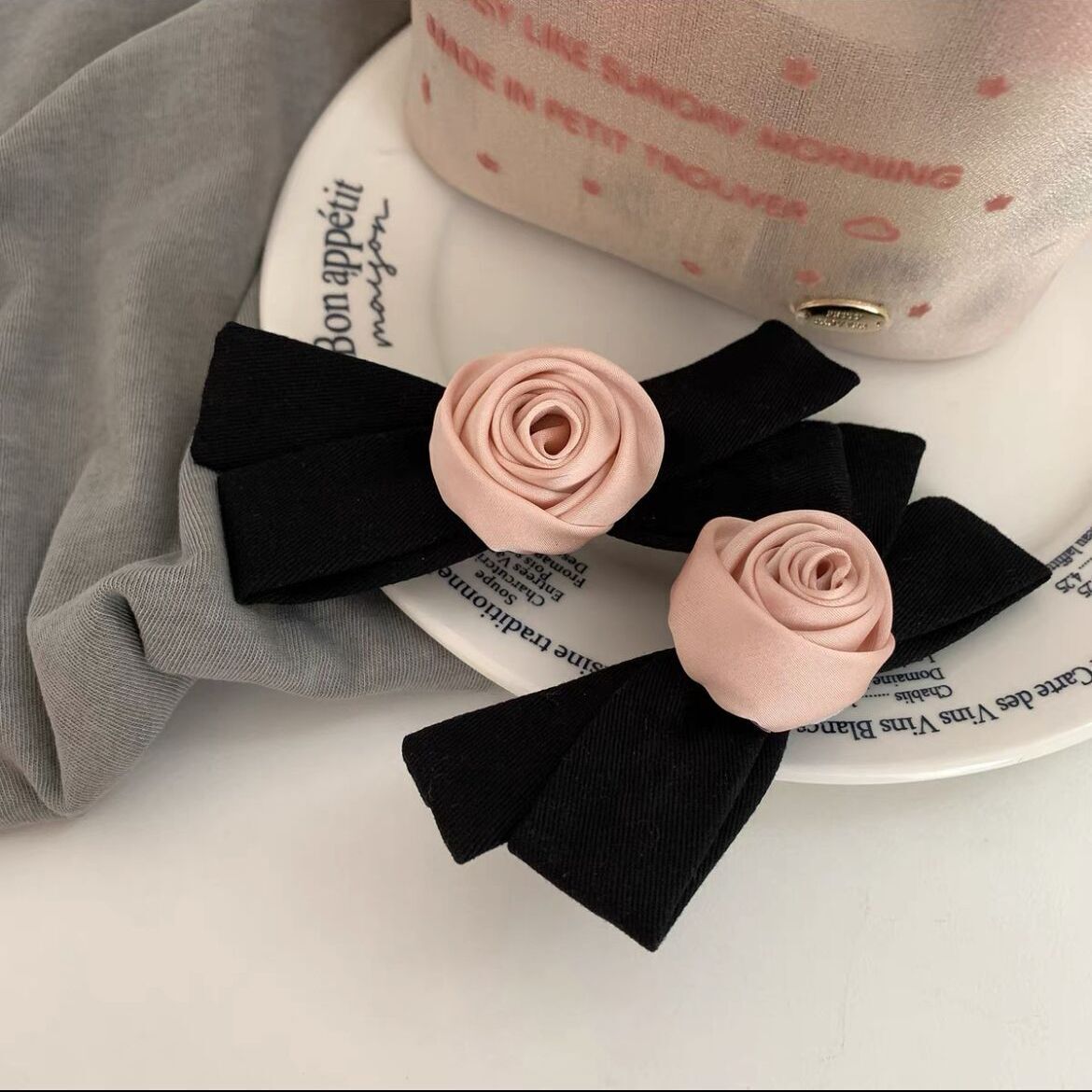 light pink rose hair clip