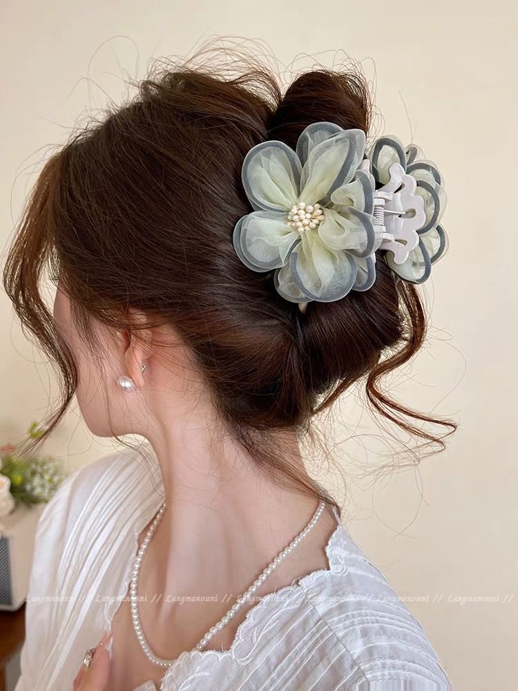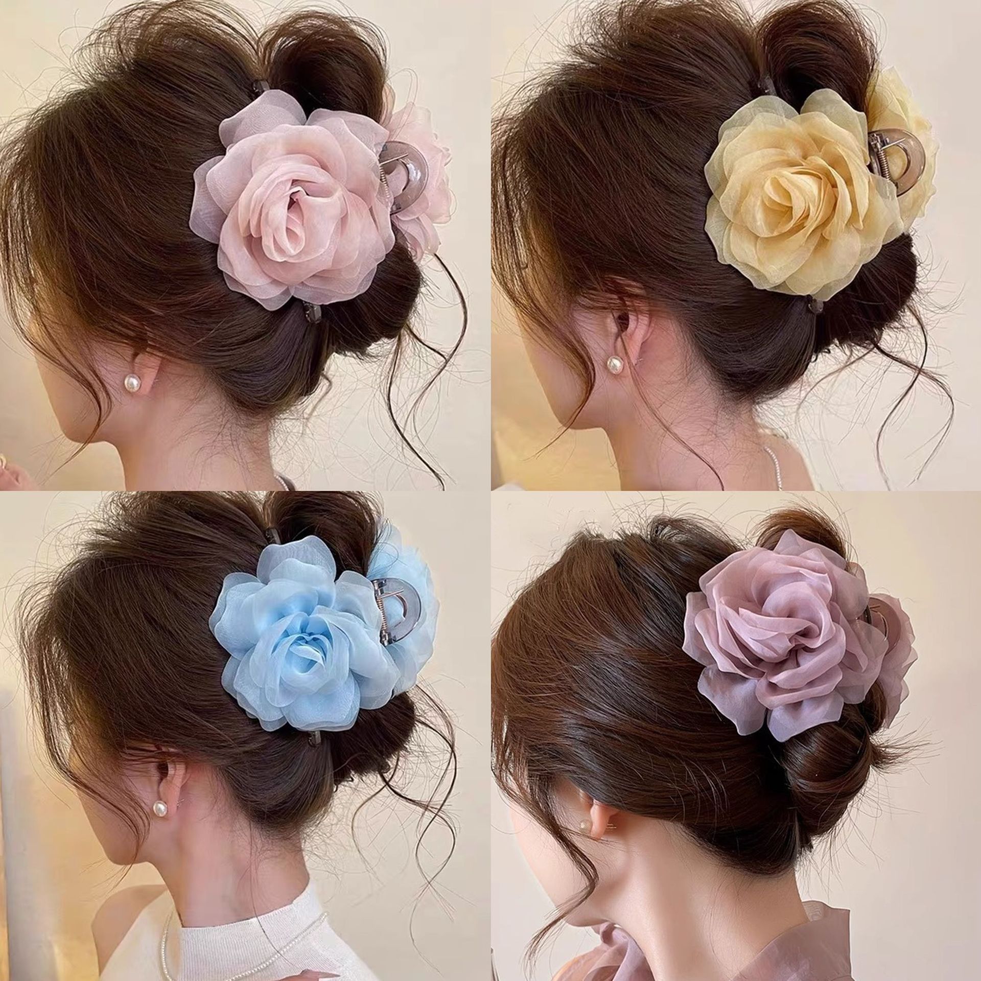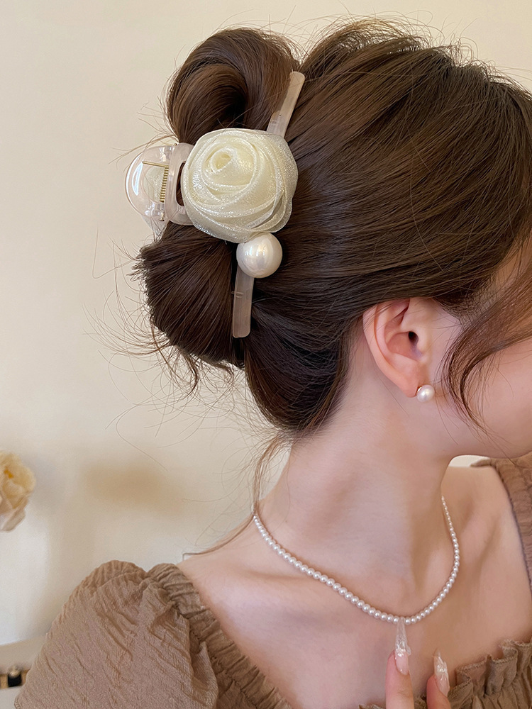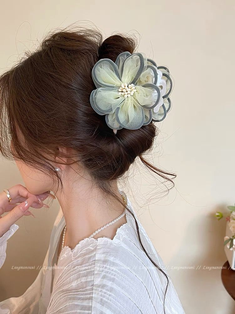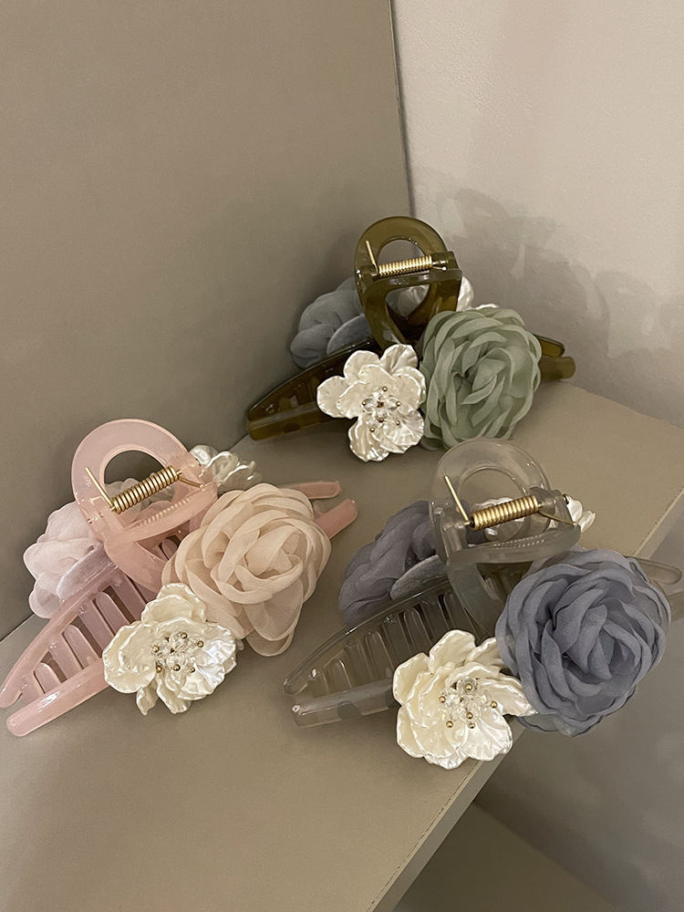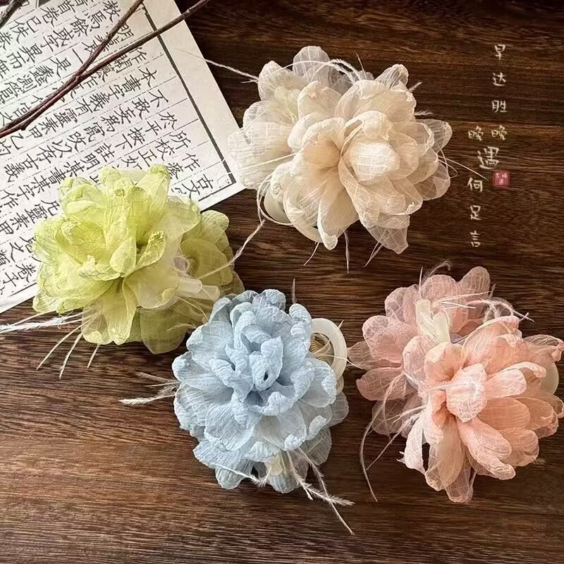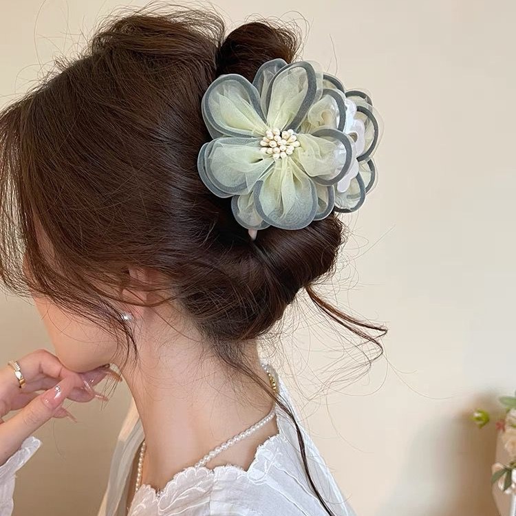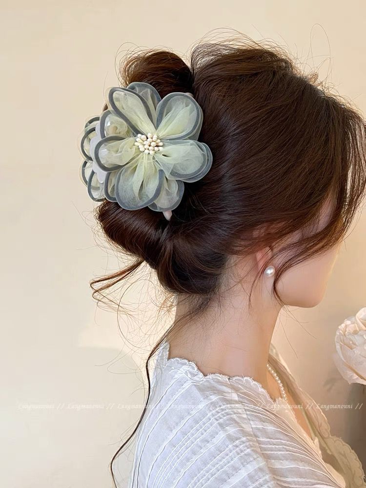 beige flower hair clip 8cm