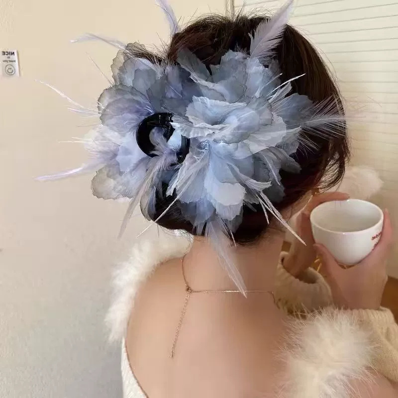 34# sky blue (feather) flower hair clip 8cm
