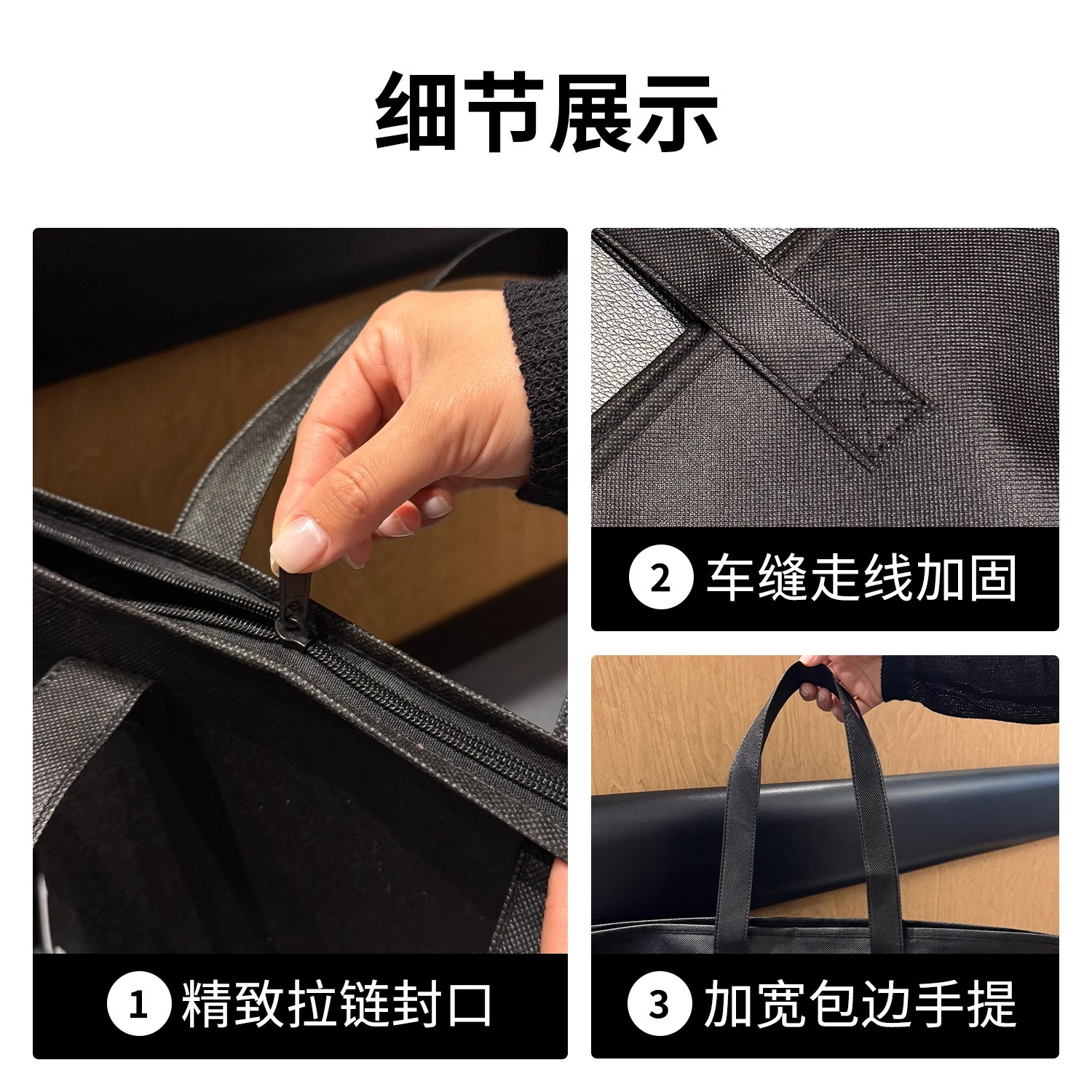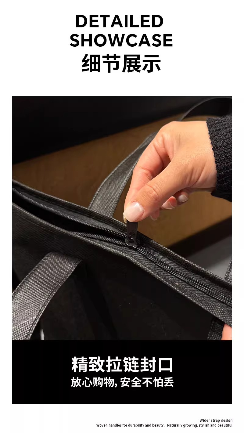 black blank zippered tote bag; extra-large size 60*45*14 cm; 1 piece