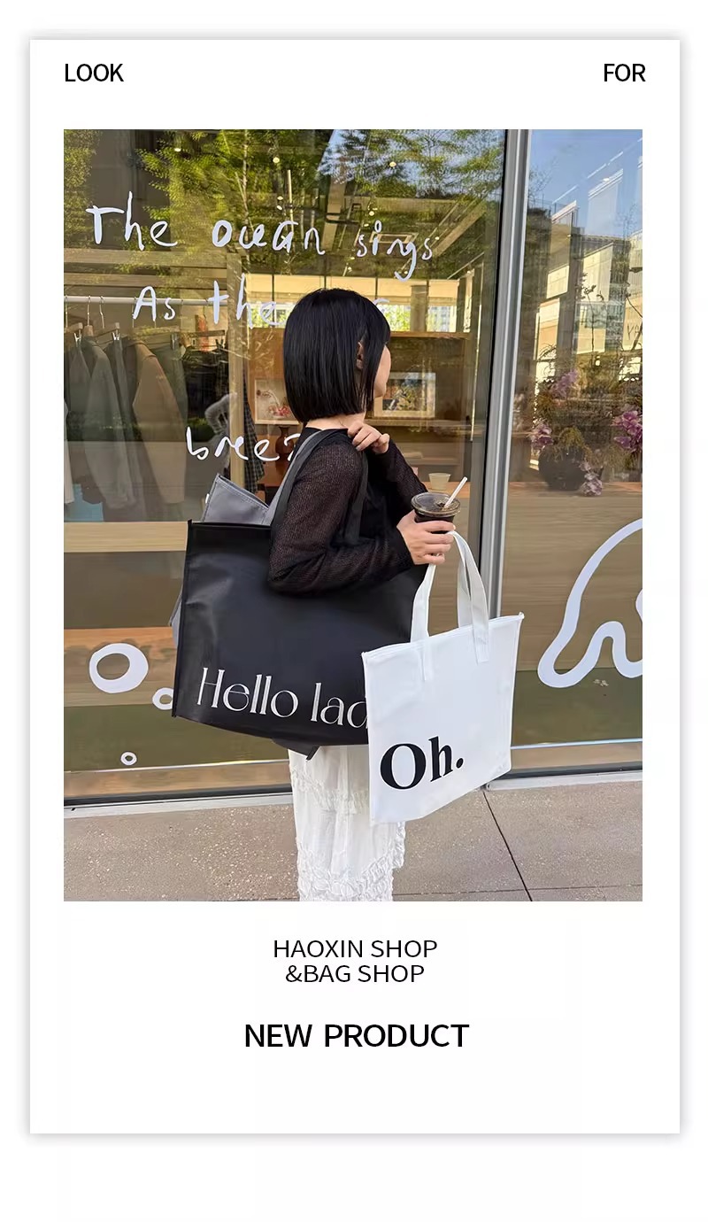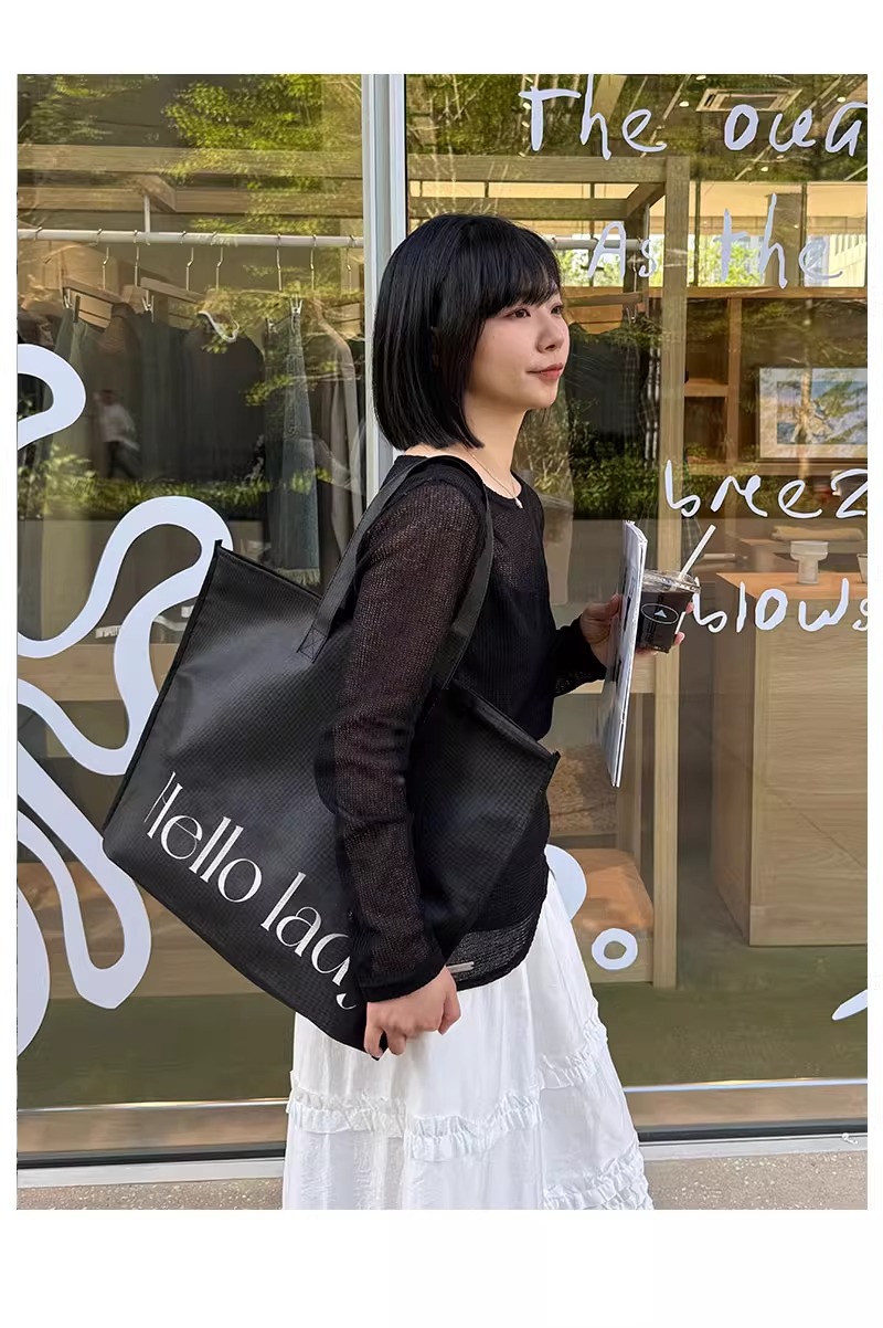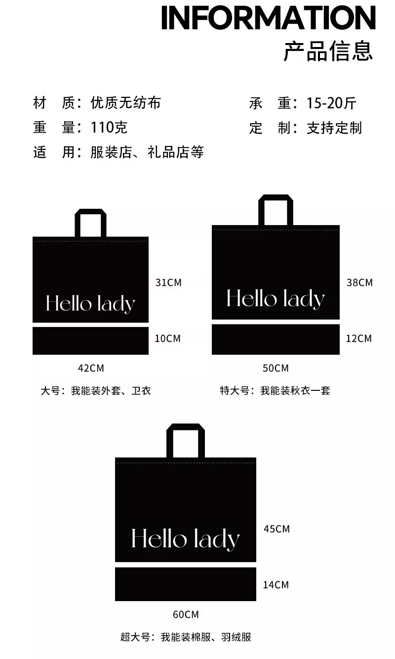 black hello zippered tote bag; extra-large size 60*45*14 cm; 1 piece