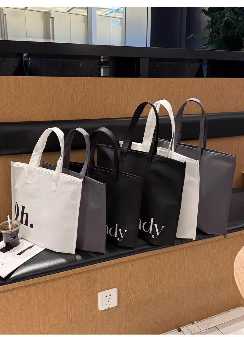 white oh zippered non-woven tote bag; large size 42*31*10 cm; 1 piece