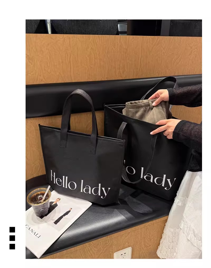 black hello zippered tote bag; large size 42*31*10 cm; 1 piece