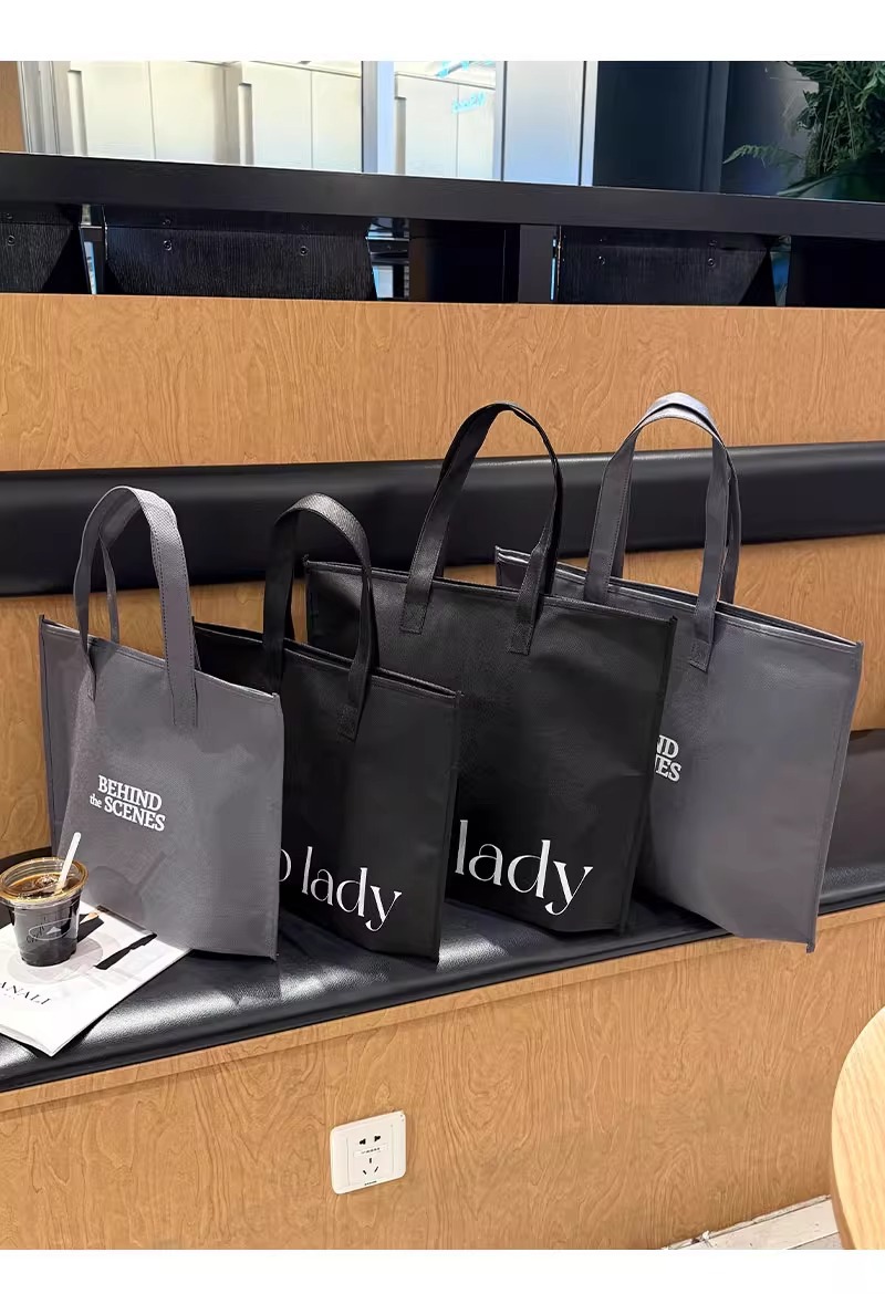 gray non-woven tote bag with a zipper; large size, 42 x 31 x 10 cm; 1 piece