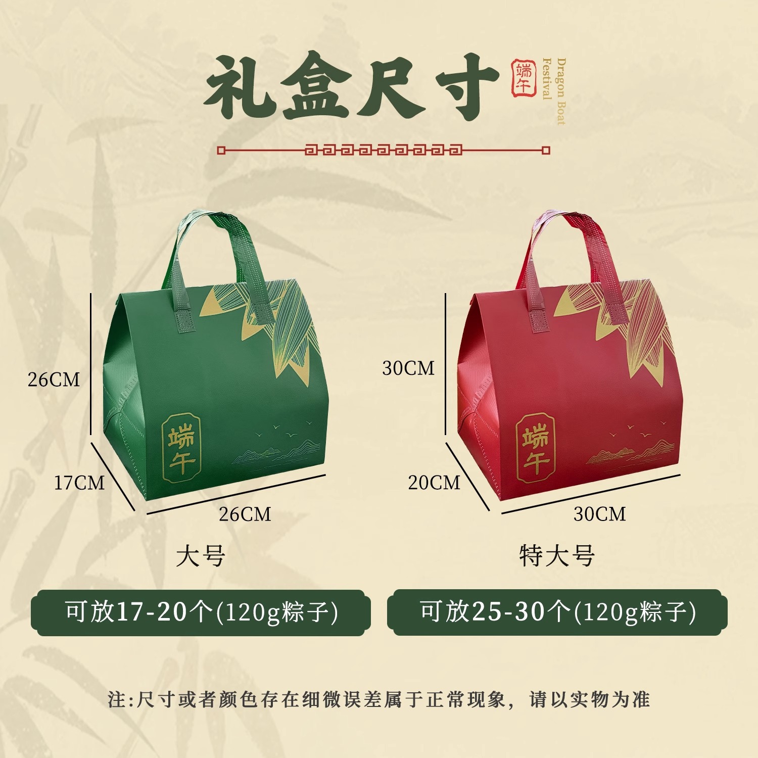 zongzi silvery (no inner box); extra large: length 30, height 30, width 20 cm; 1 piece