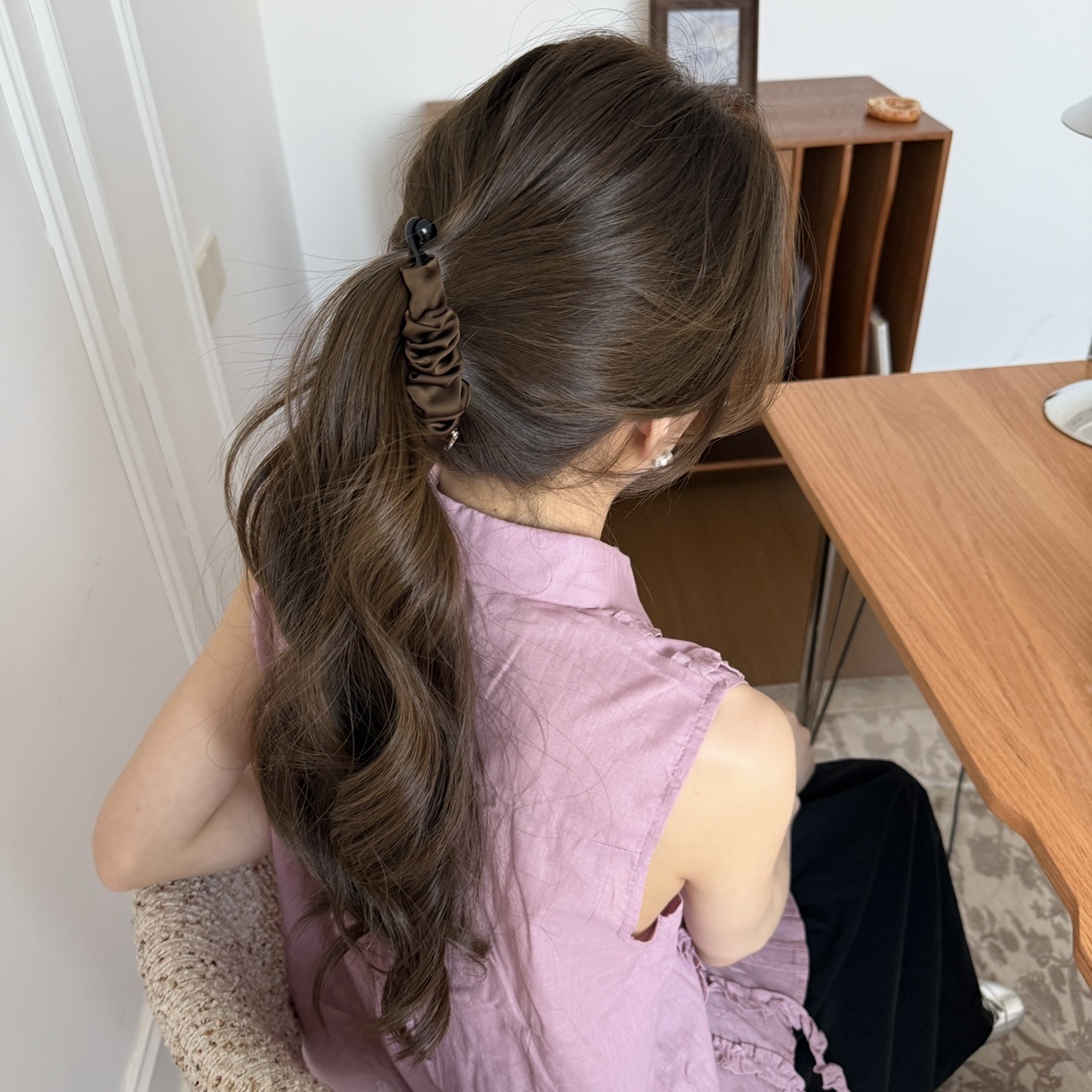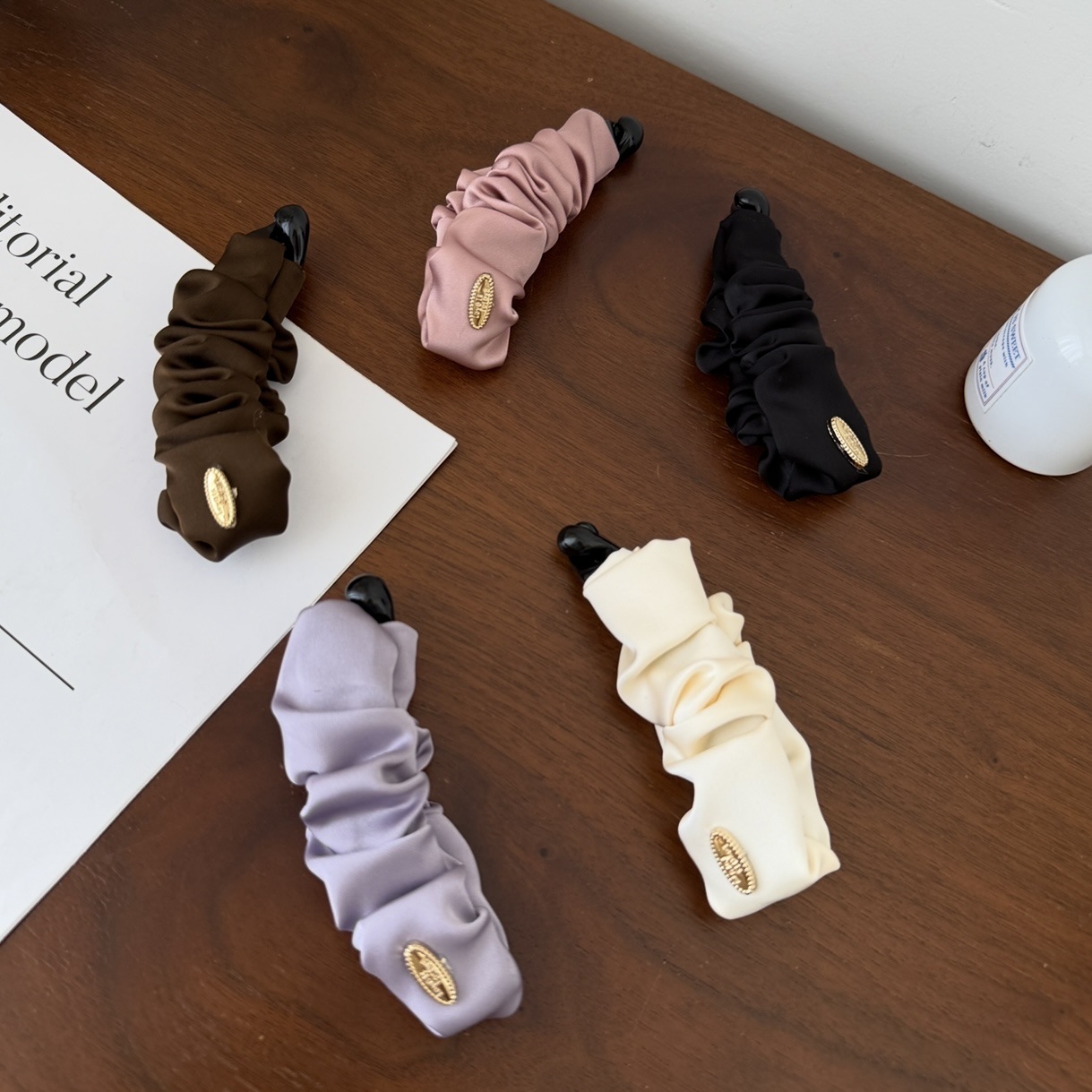 coffee-colored small gold-label pleated banana clip