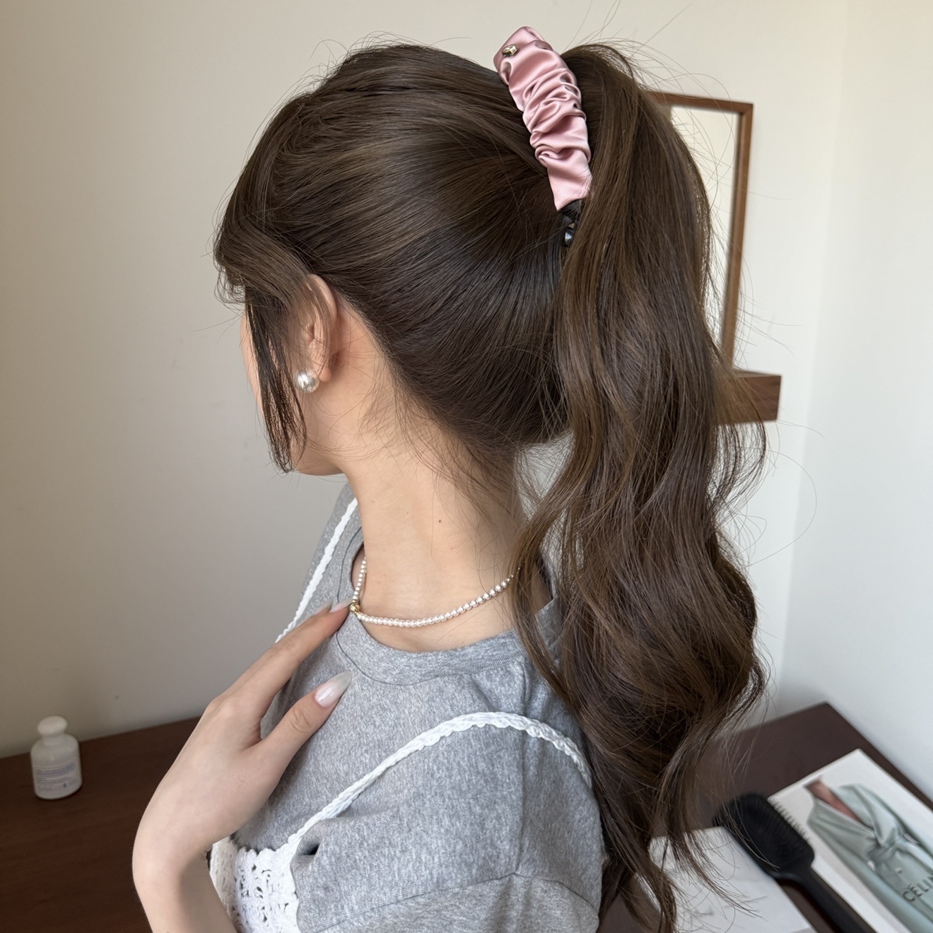 pink small gold label pleated banana clip