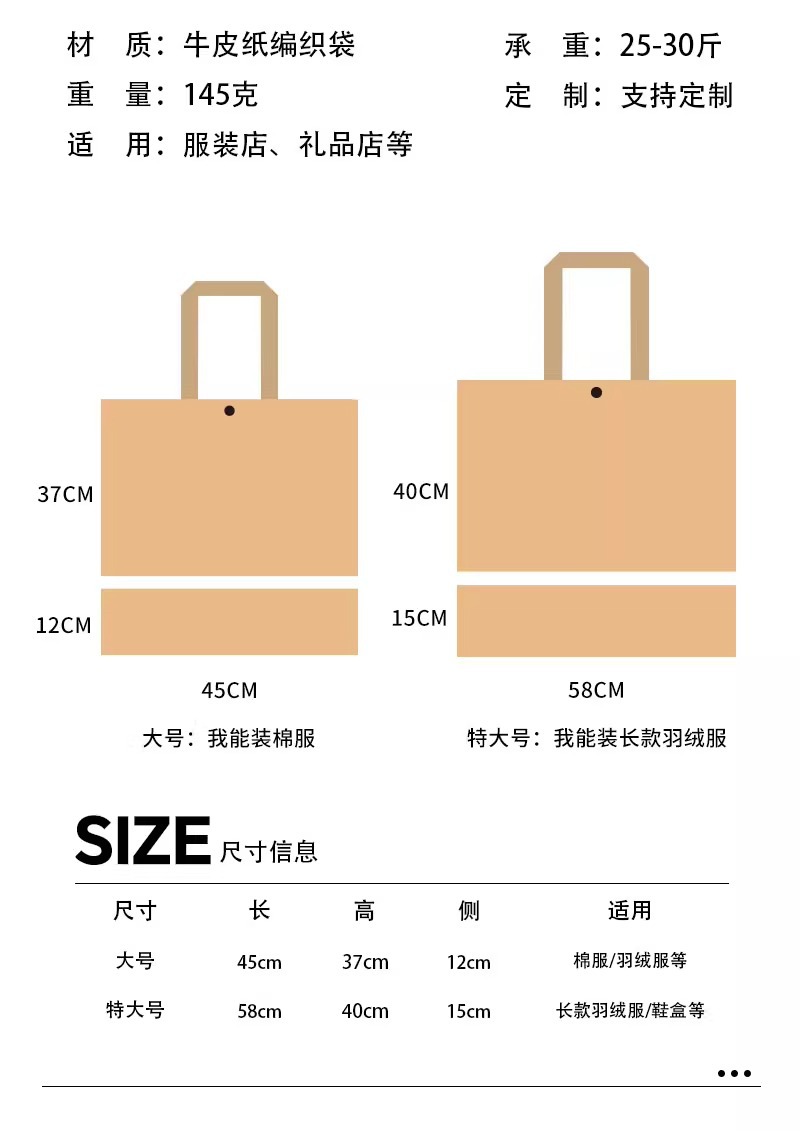 kraft paper woven bag; extra large: 58*40*15 cm; 1 piece